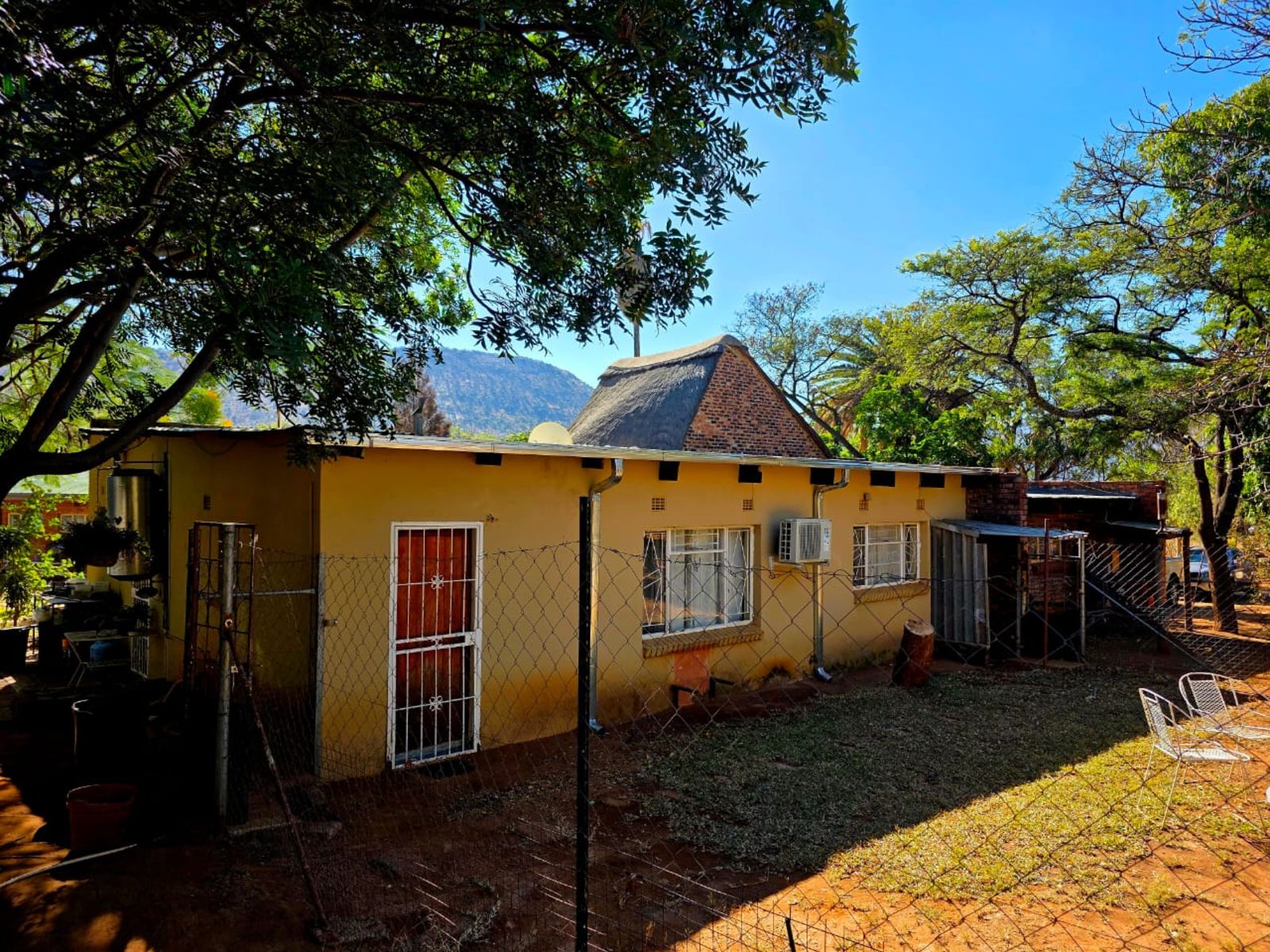 This high-income potential property comprises three title deeds, all game-fenced (1.8m) and sold together as a unit. Nowhere else will you find this much value – featuring 2 spacious houses and 3 well-appointed flats, perfect for extended family living or rental income.