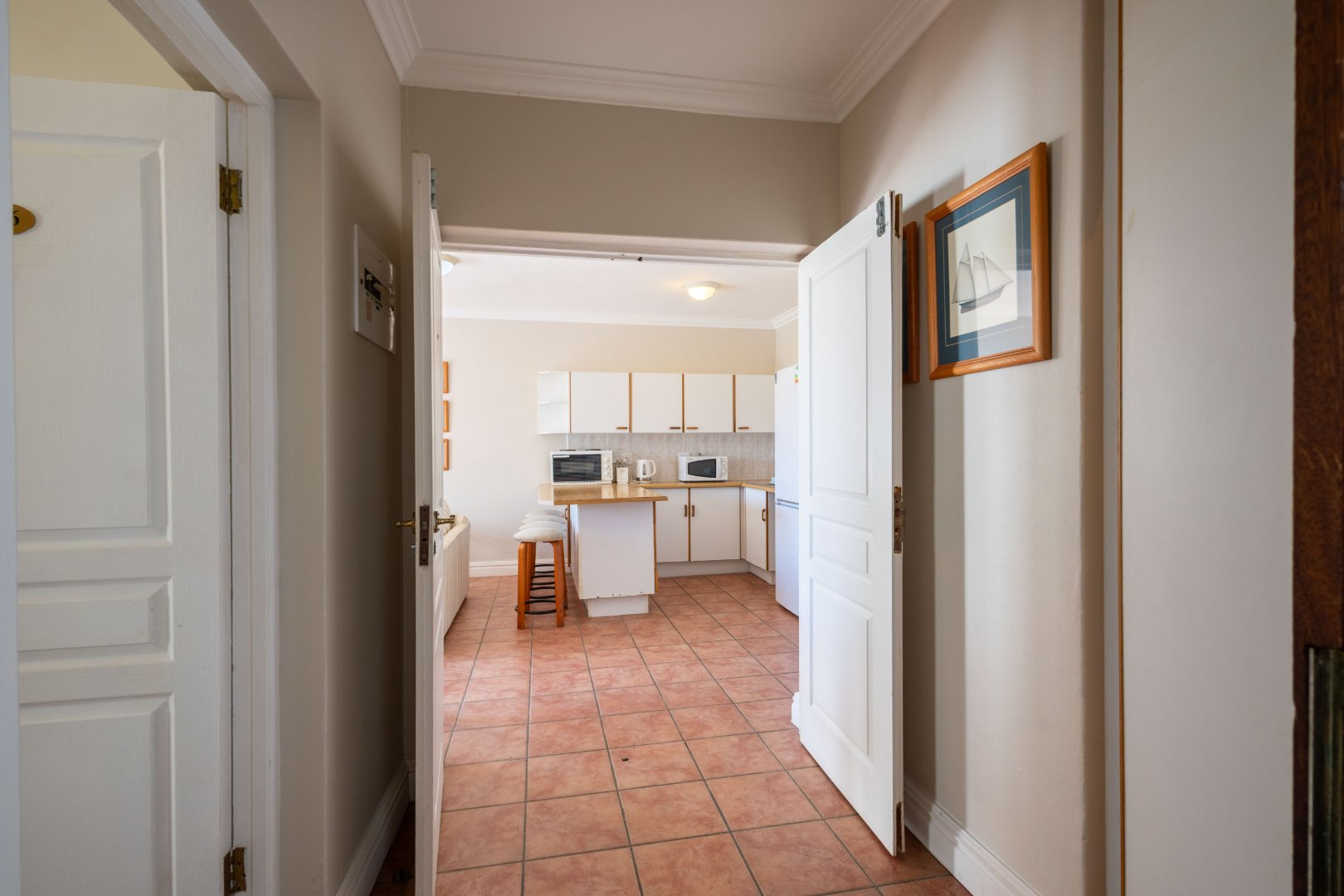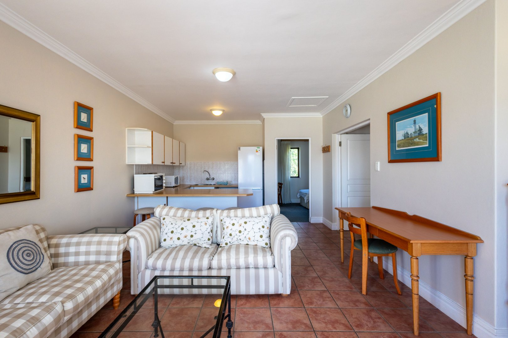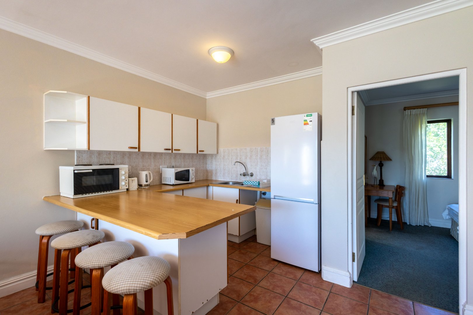This property is sold fully furnished, including a counter top stove, microwave, toaster, kettle and fridge. Basic cutlery, crockery and glassware as well as linen is also included in the sale.