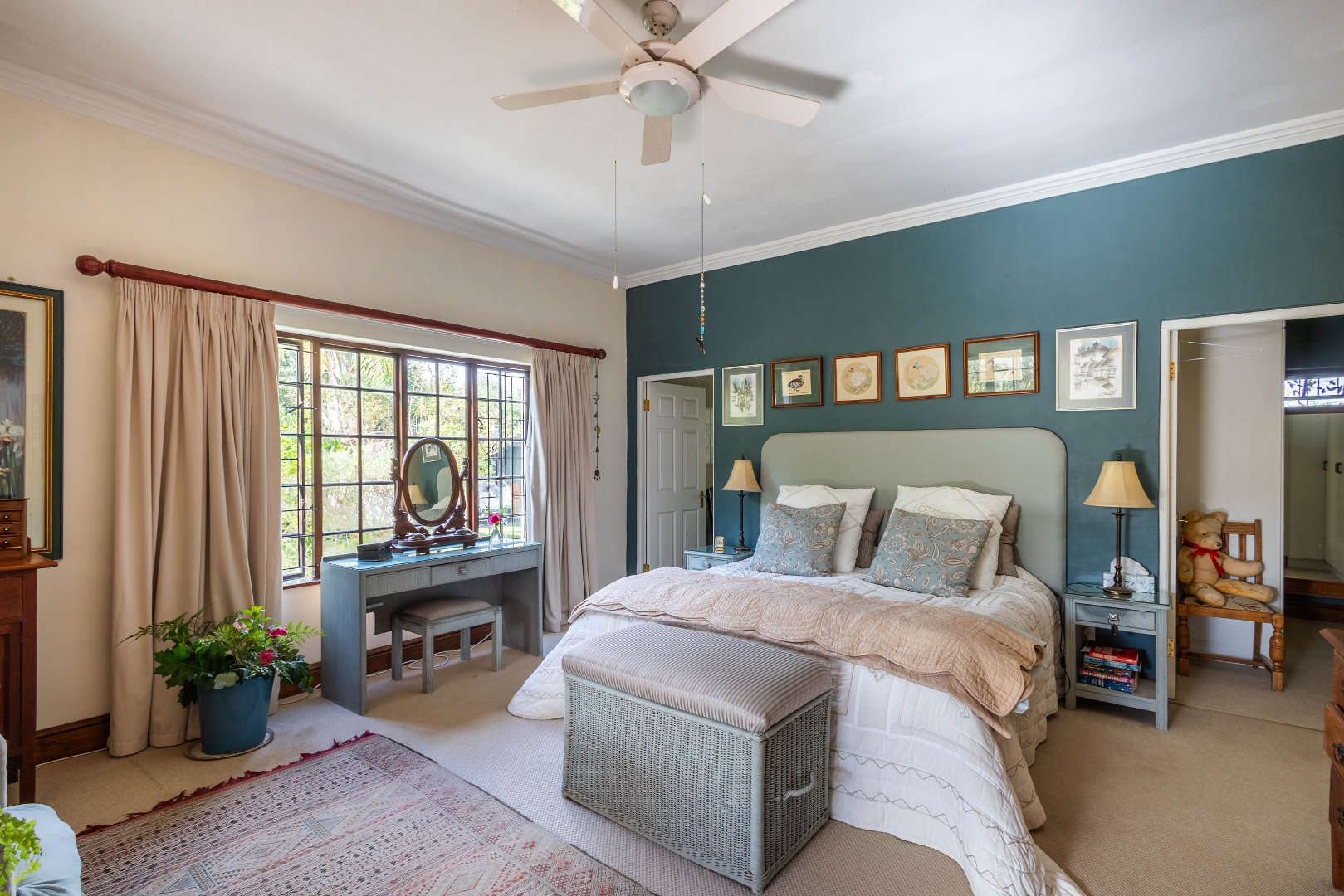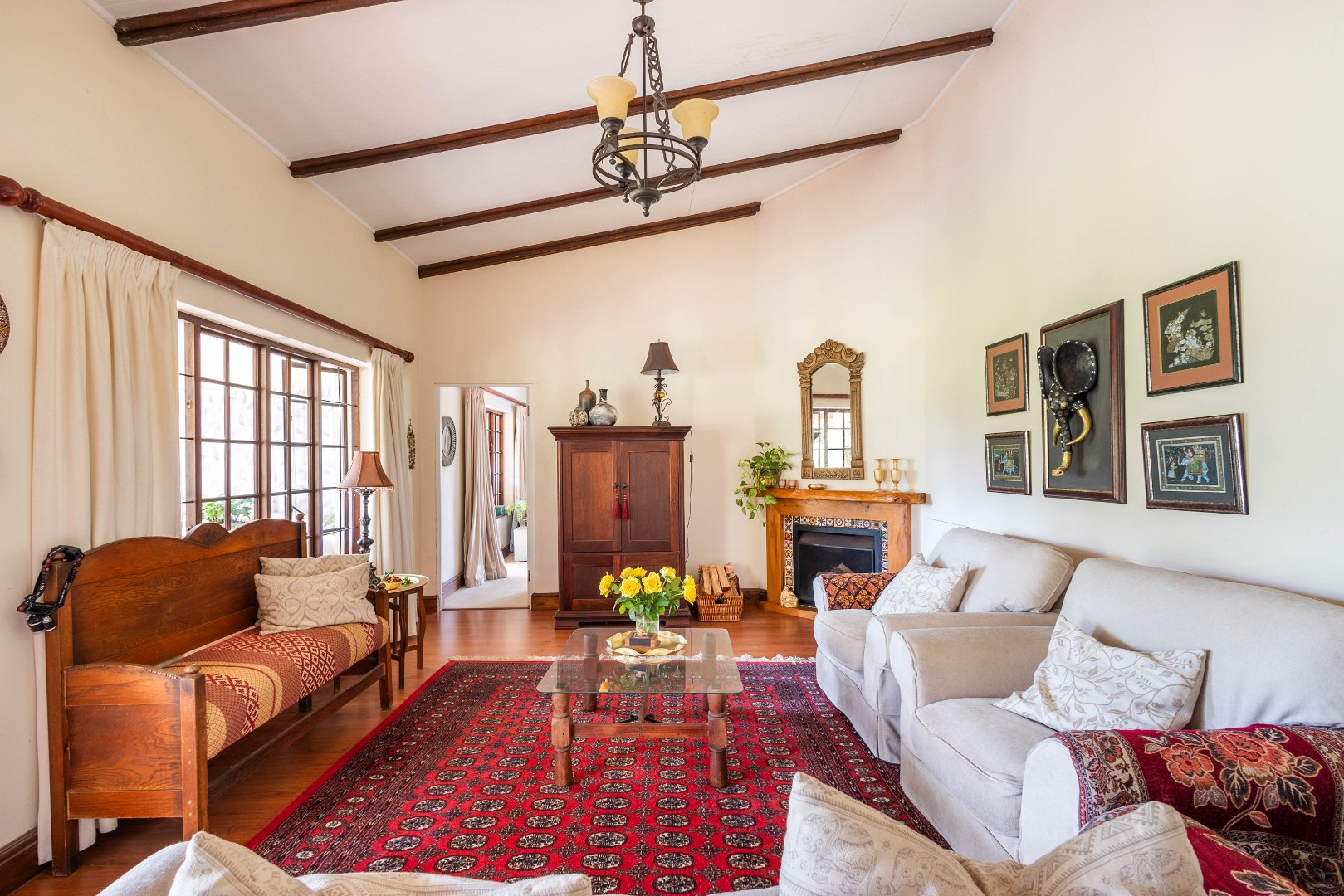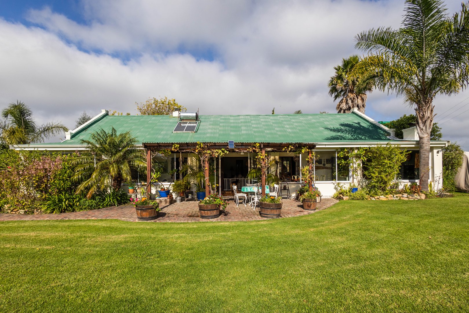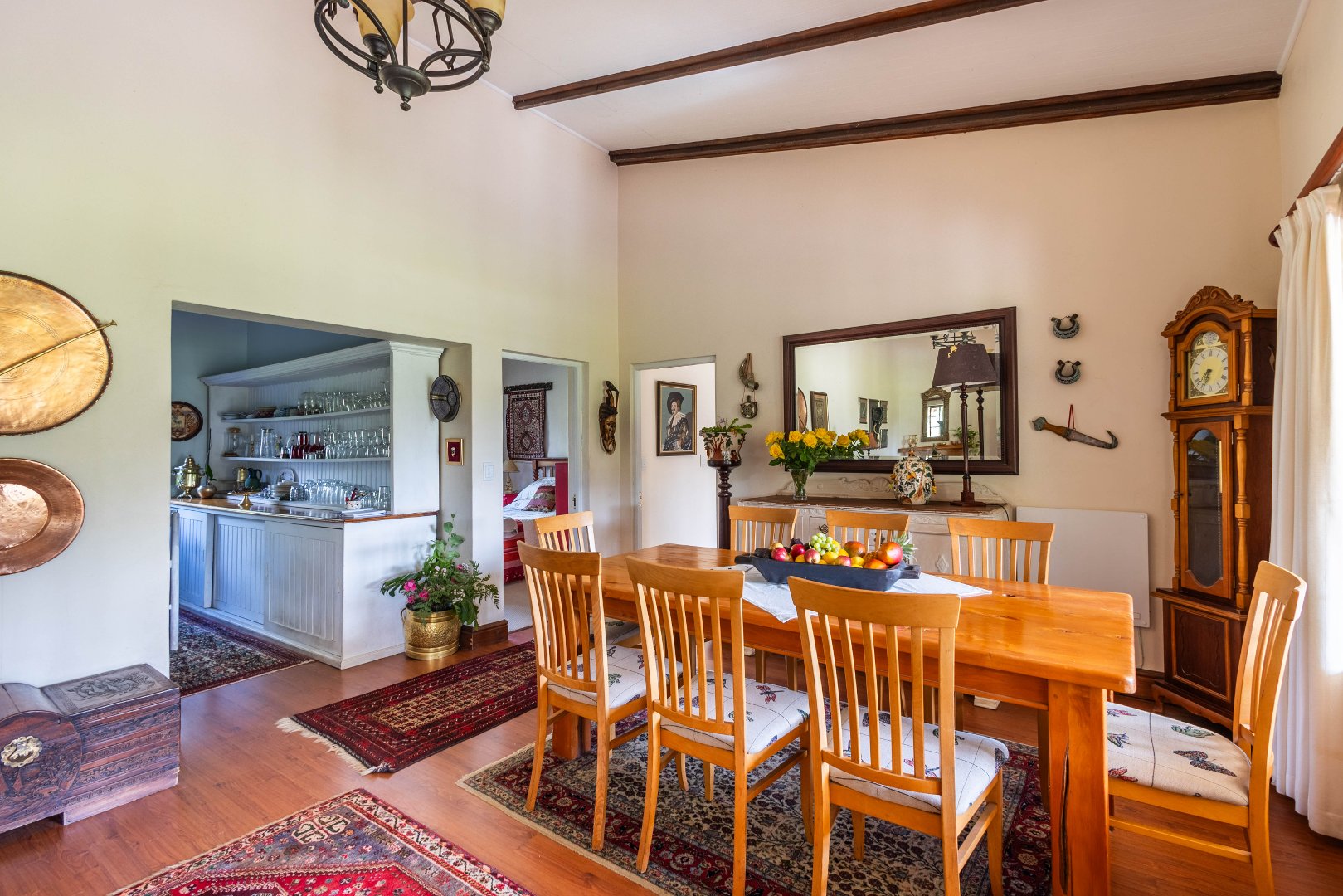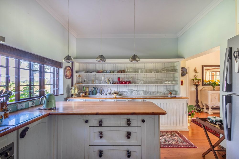 A charming home (approx 220 sqm) is inviting, warm, cheerful and classic in its farm-lifestyle design. Lovely contemporary farm kitchen and scullery - you can just smell the baked bread! High ceilings in the open plan dining room and lounge spaces.