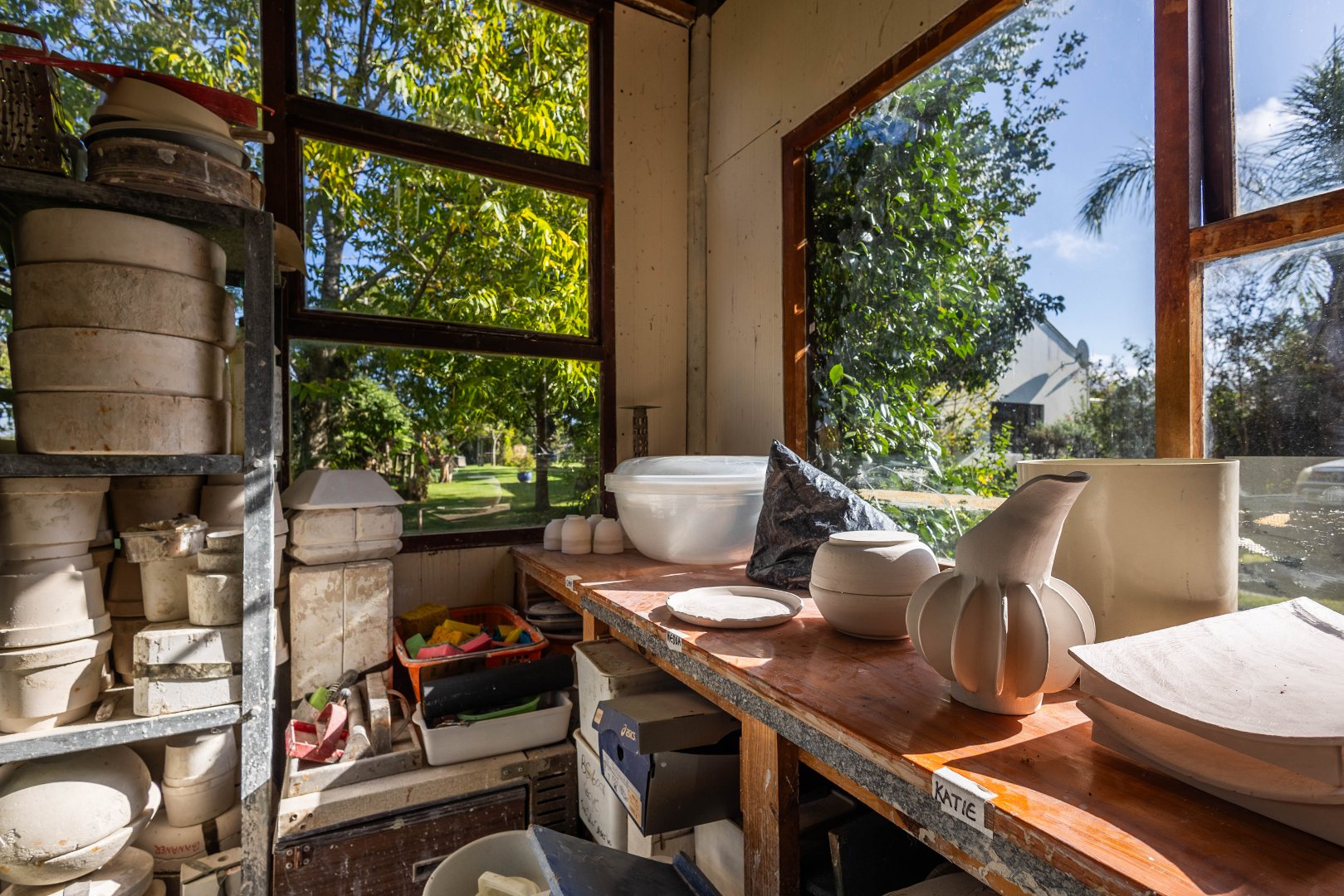 Workshop garage and current pottery studio-space (approx: 44sqm) is easily converted into an art or studio space, gym or extended garage/workshop.There is an existing paddock and area for stables or additional grazing area with shelter.