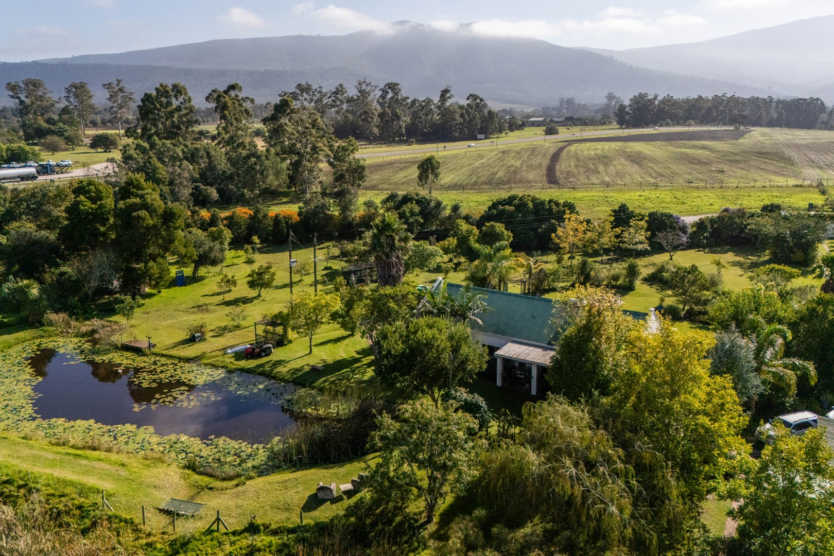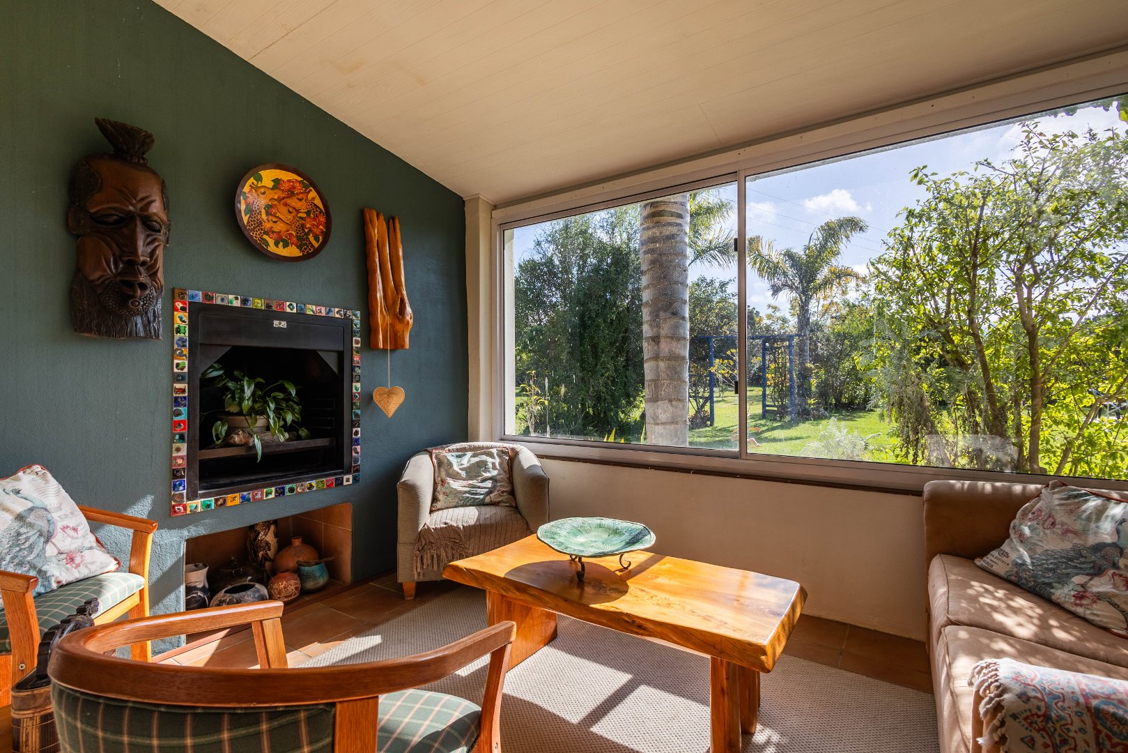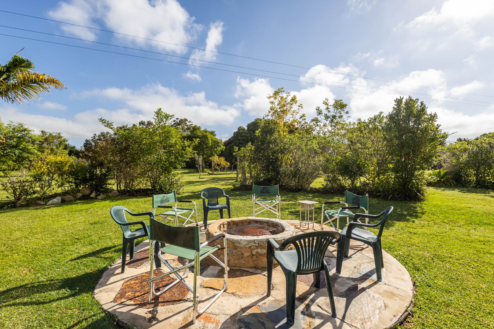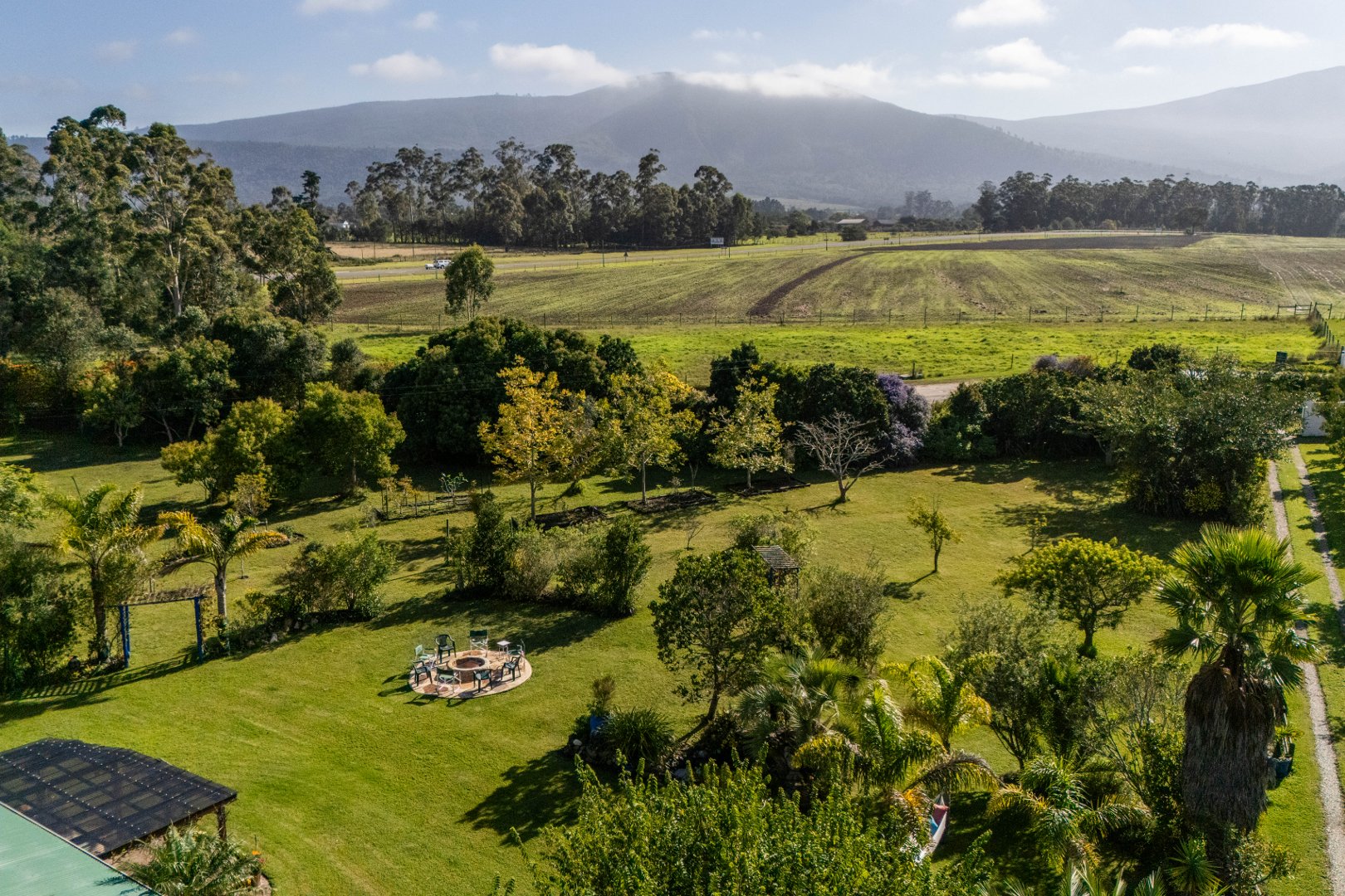 Beyond the homestead, across the garden is a fire-pit and braai space for starlit dinners as well as the normal farm structures, including a tree-house platform, vege garden and enclosed chicken house and run.