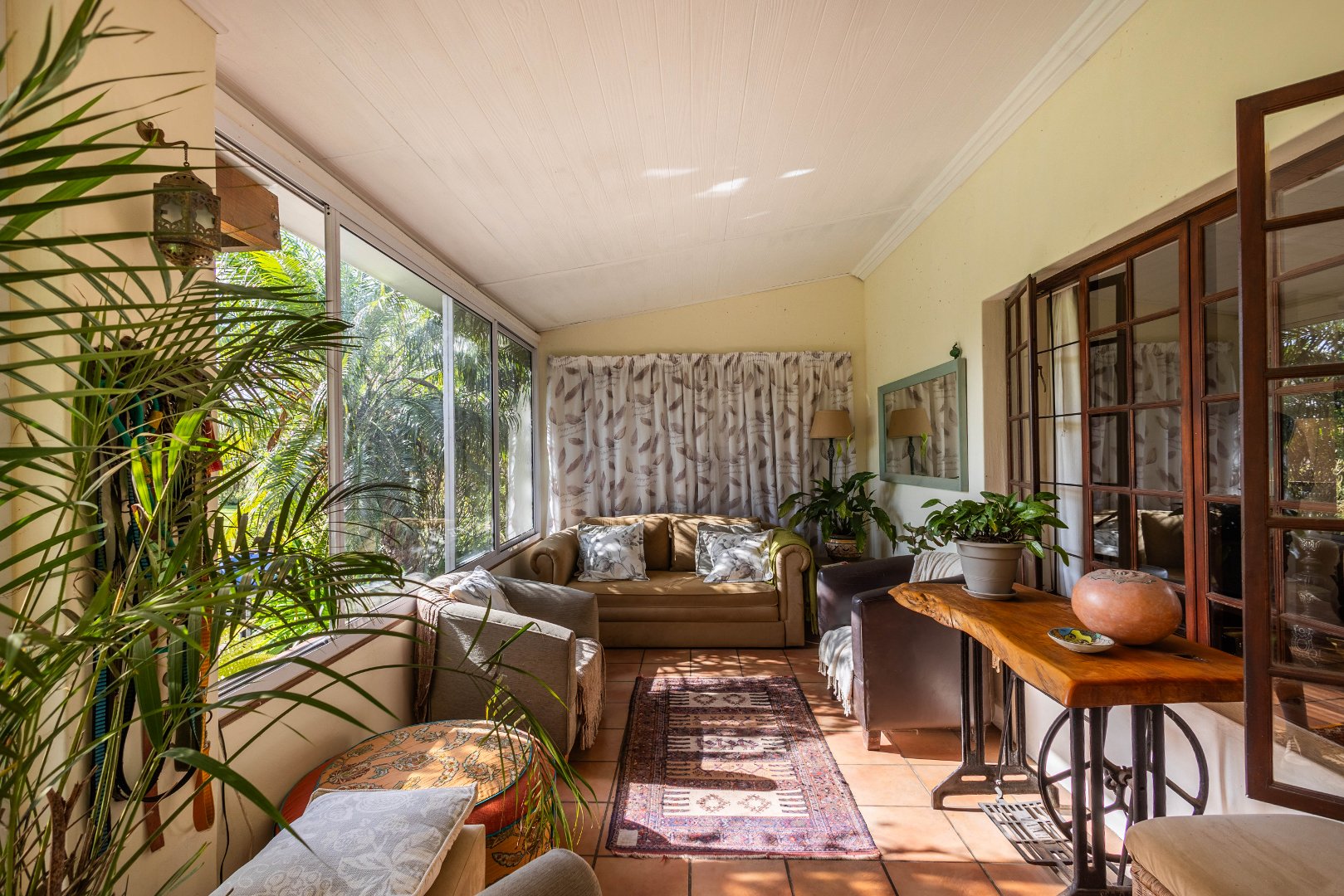 The glass enclosed veranda that runs the length of the house allows for additional all year round living space.