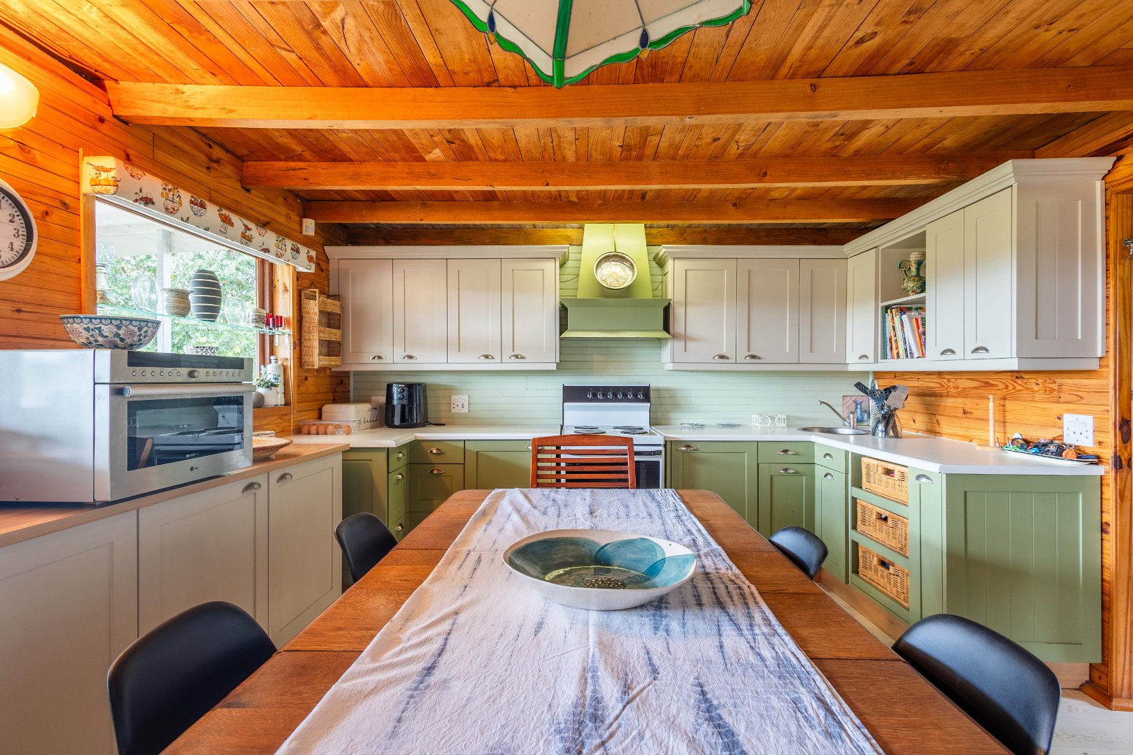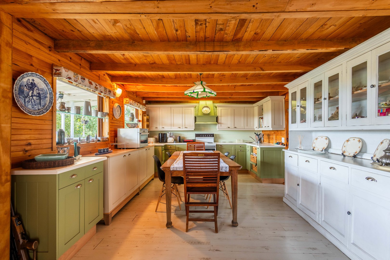 Kitchen: A large farm style Kitchen designed as open plan with the dining room incorporated into the space is perfect for entertaining friends on a chilly night. A separate scullery and laundry area makes cleanup a breeze.