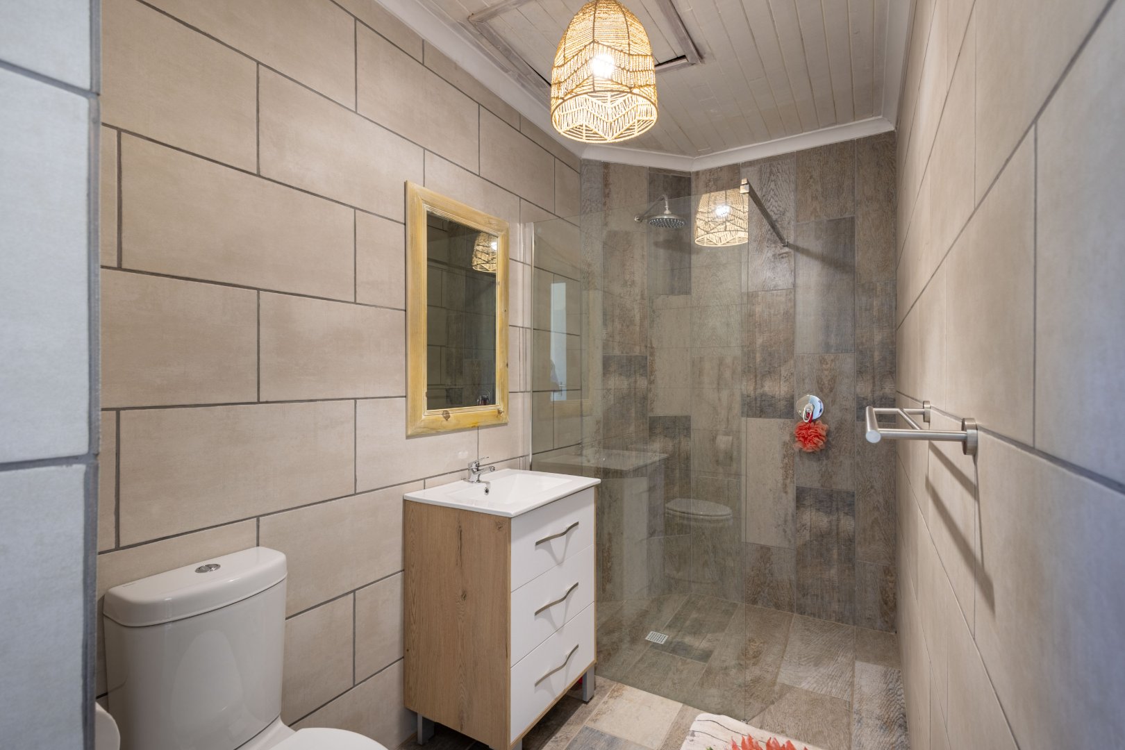 The Master bedroom ensuite with bath and shower and 4 additional bedrooms plus an office /study. Each of the bedrooms are ensuite with showers and contemporary finishes. There are a further 2 self-contained 1 bedroom flatlets, plus a double garage and dedicated laundry area.