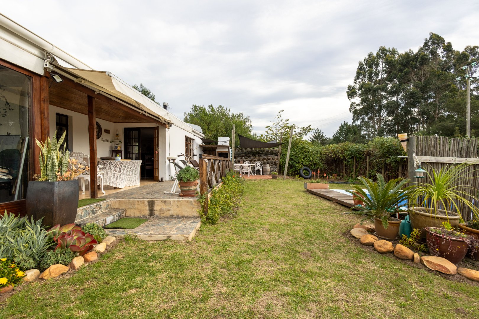 Covered & sheltered courtyard with braai area & small pool