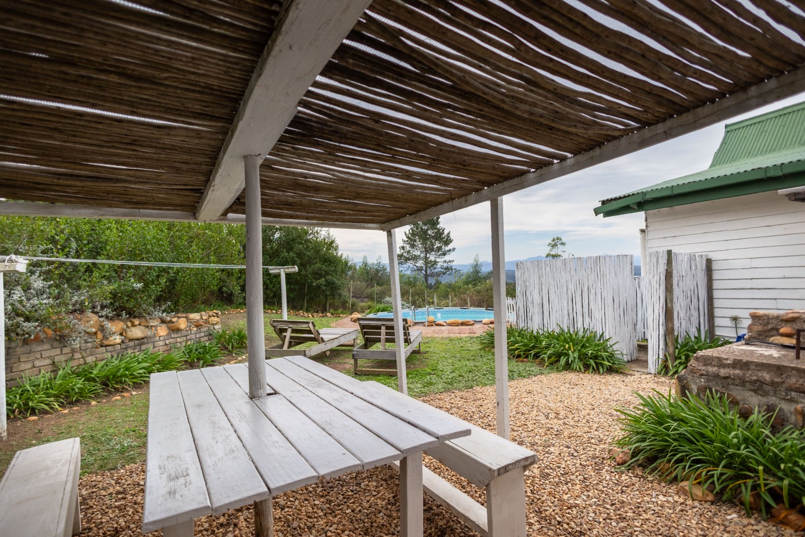 Braai lapa, swimming pool and deck with incredible views