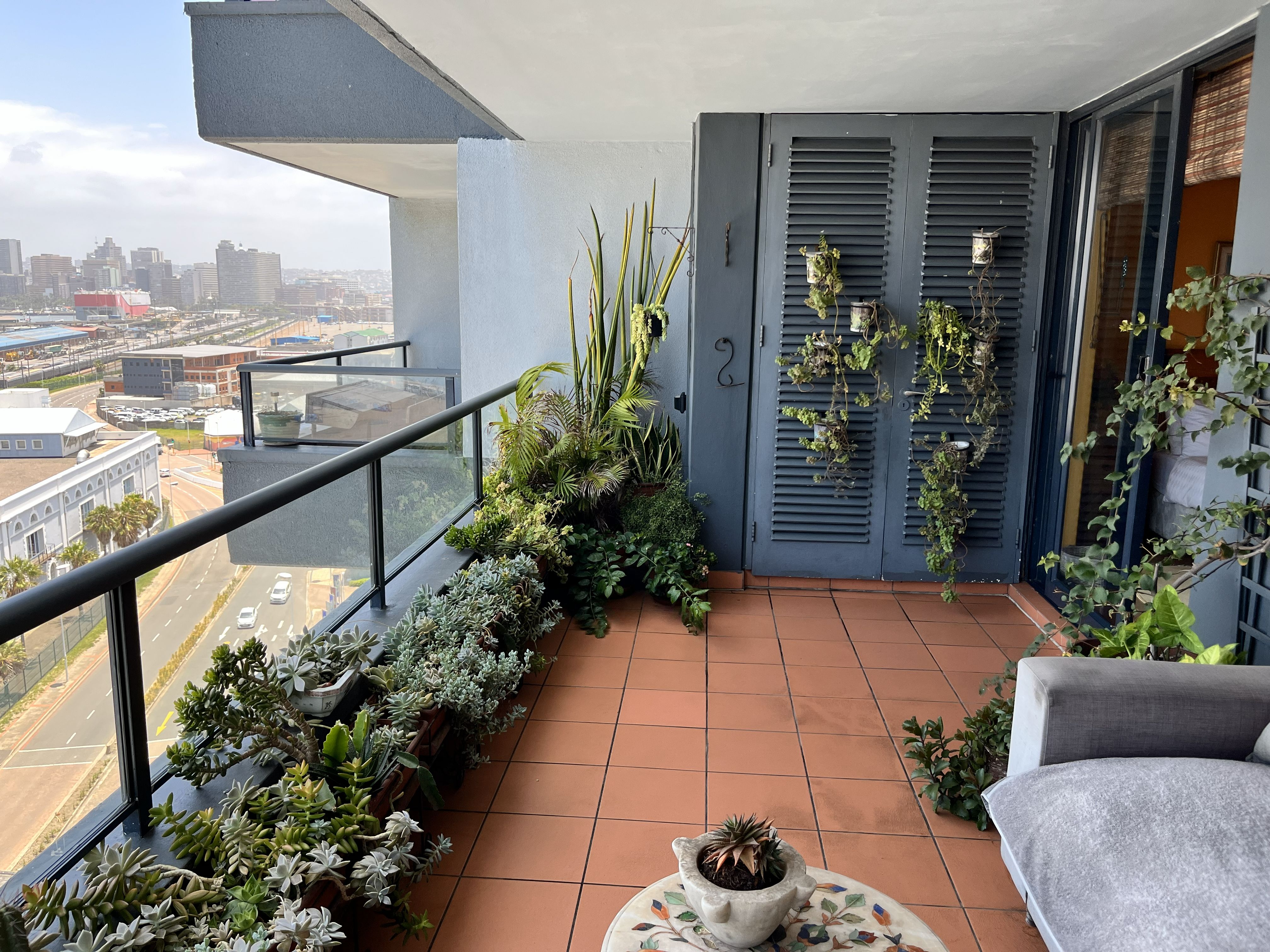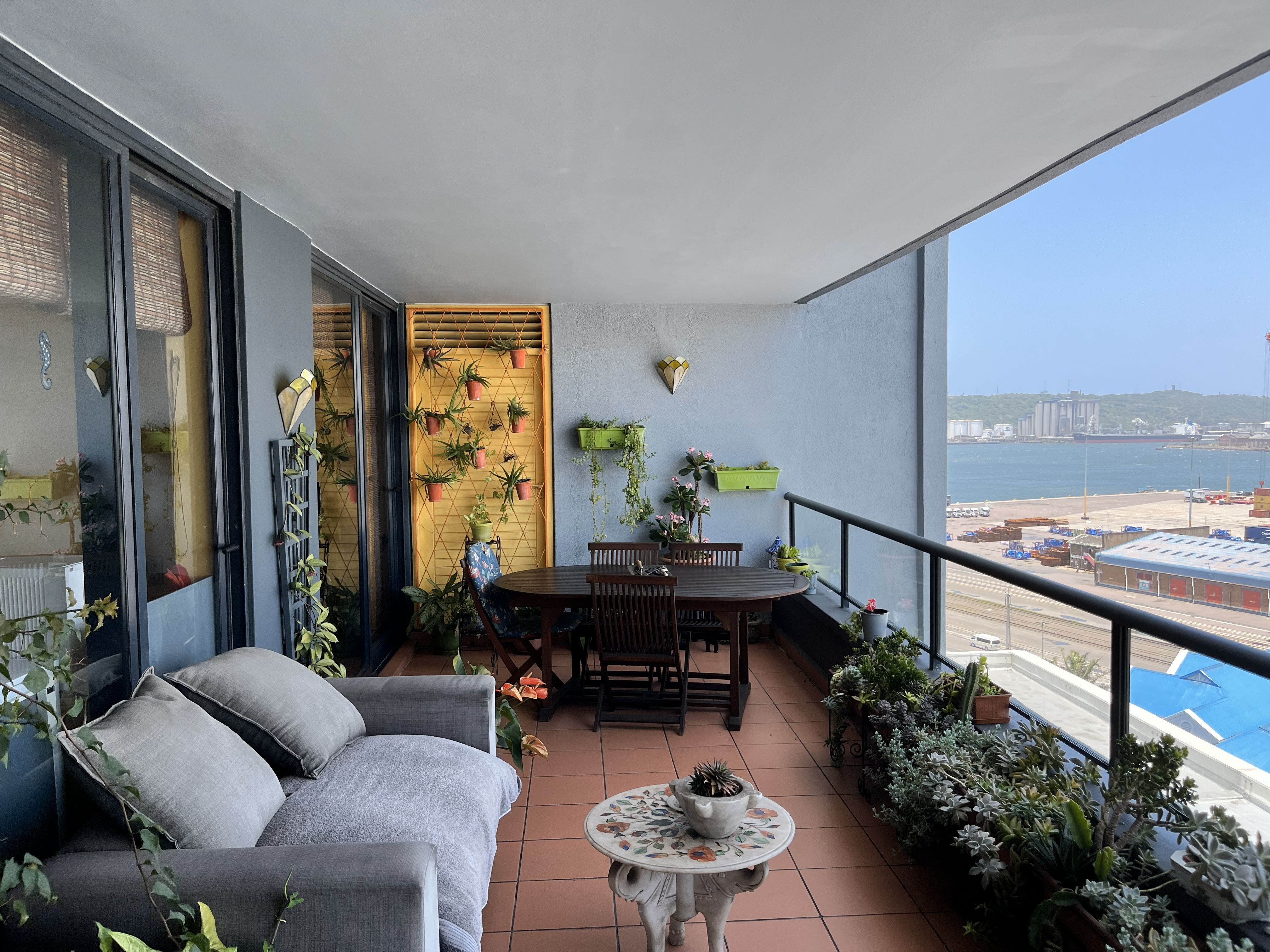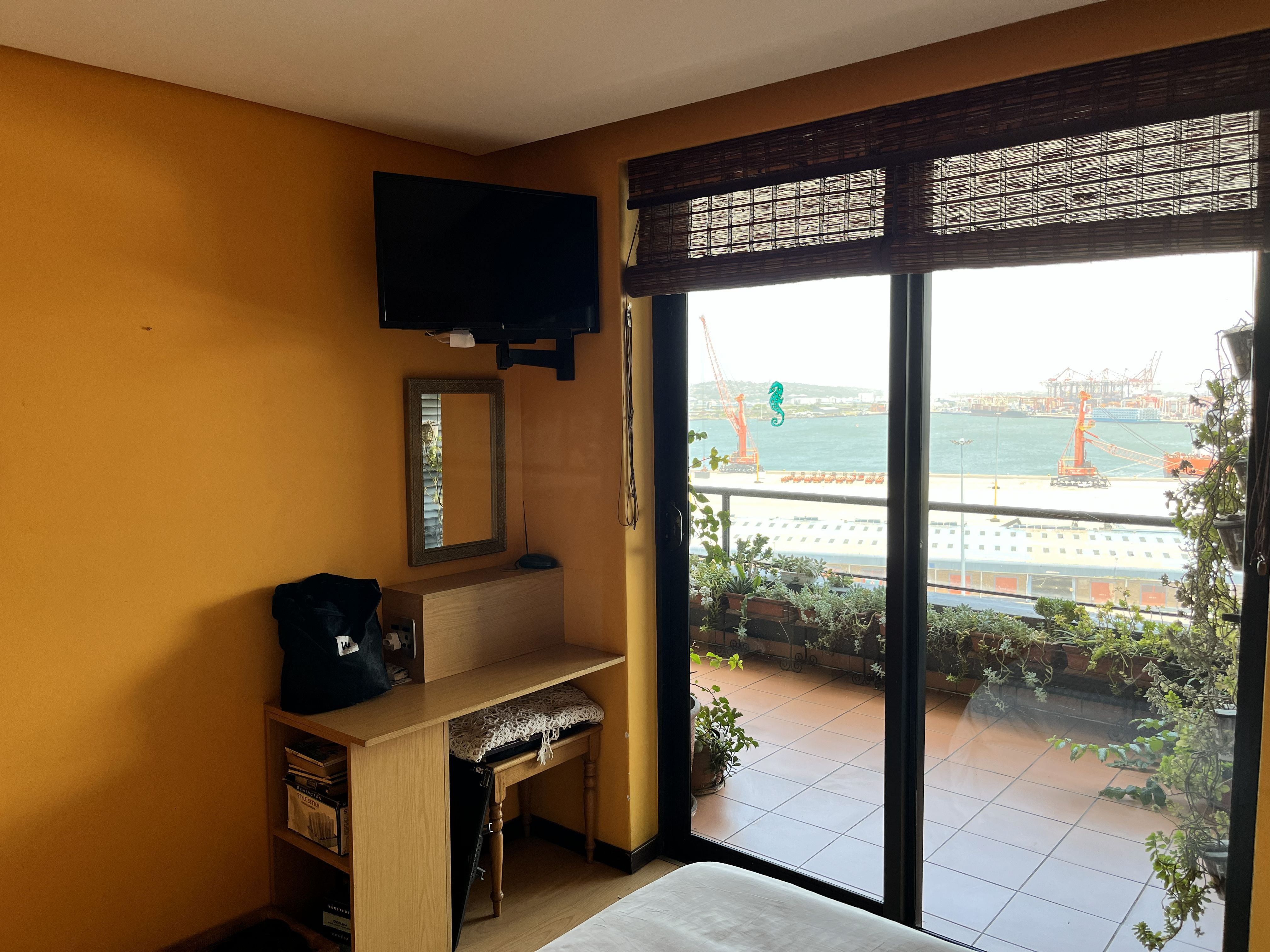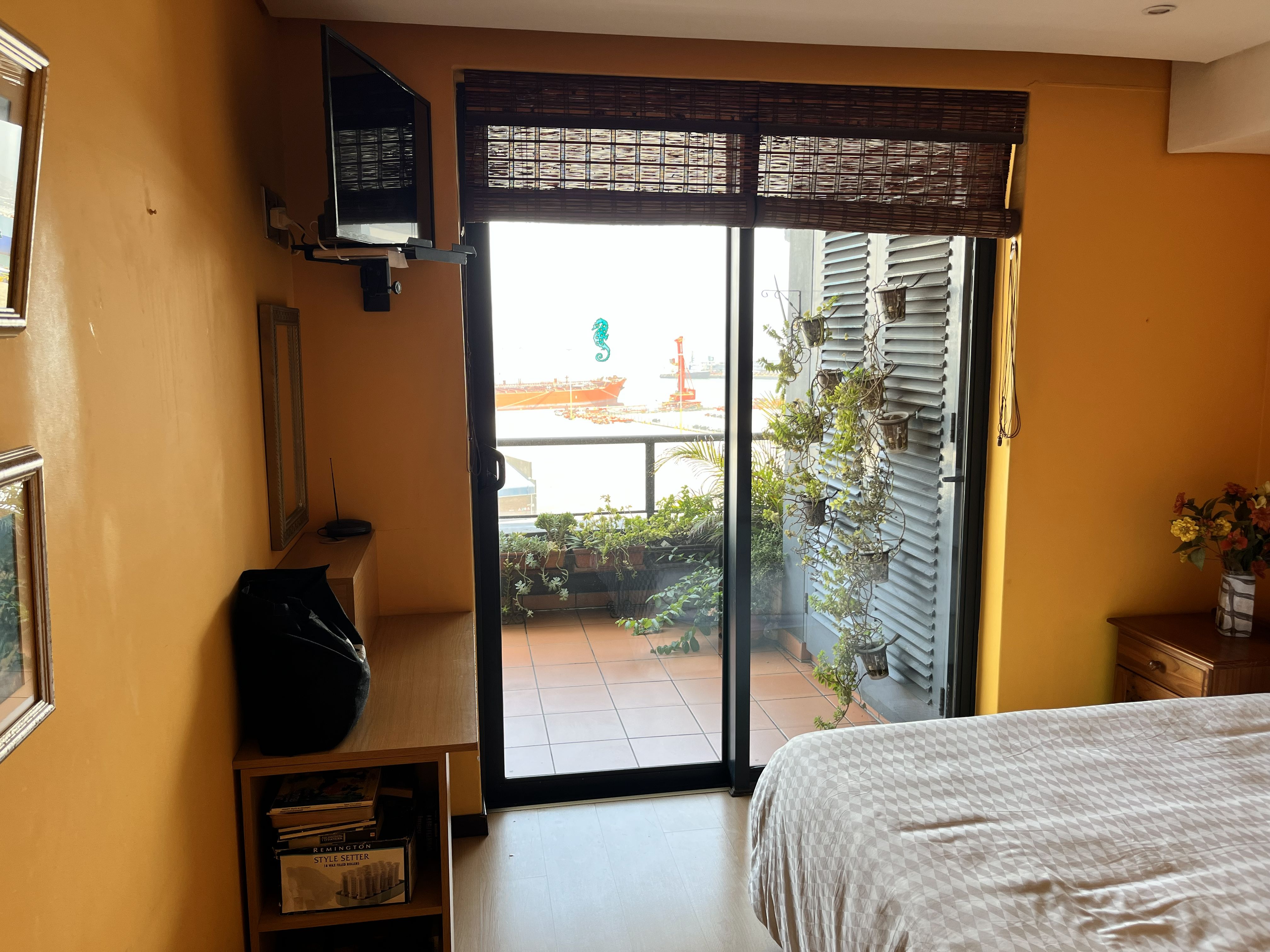 Rear balcony overlooking the harbour and cruise ship terminal