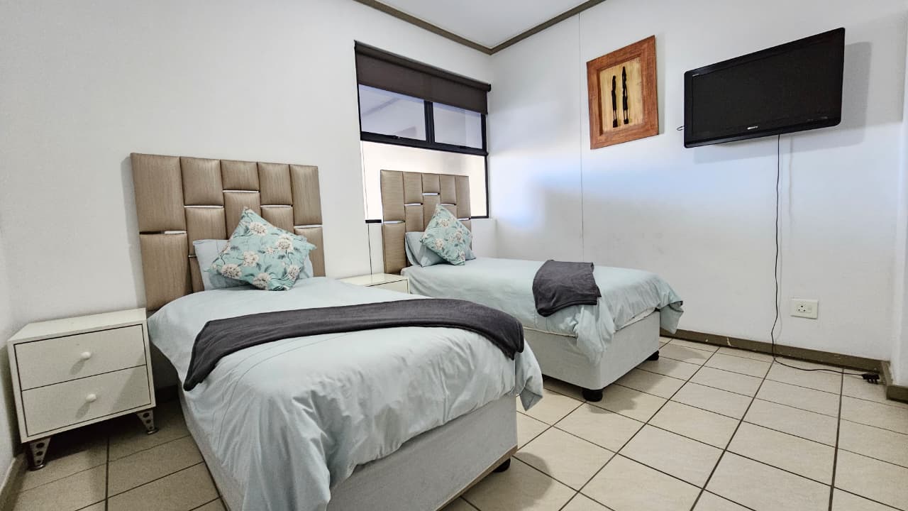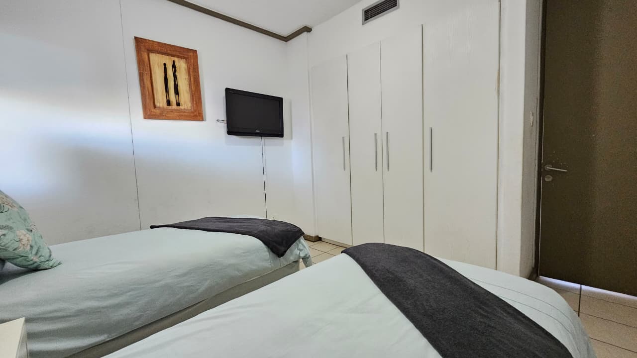Three beautifully furnished bedrooms with comfortable beds and built-in cupboards provide both comfort and functionality.