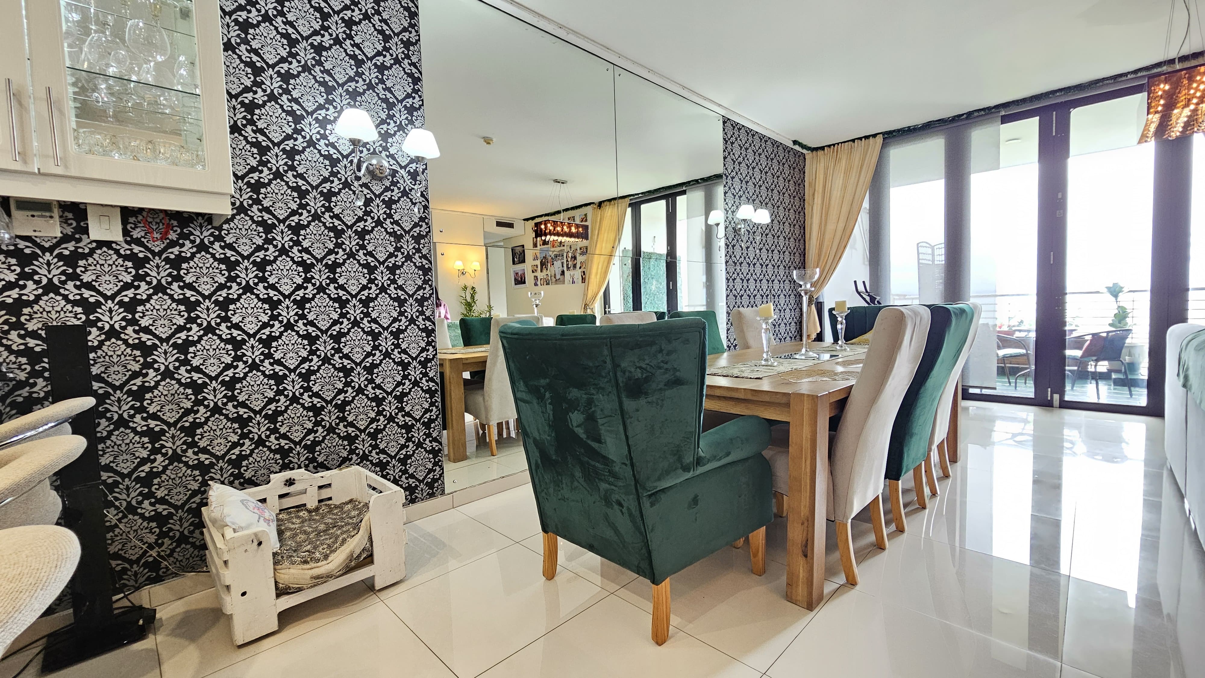 Large windows throughout the apartment allow natural light to flood the interior.