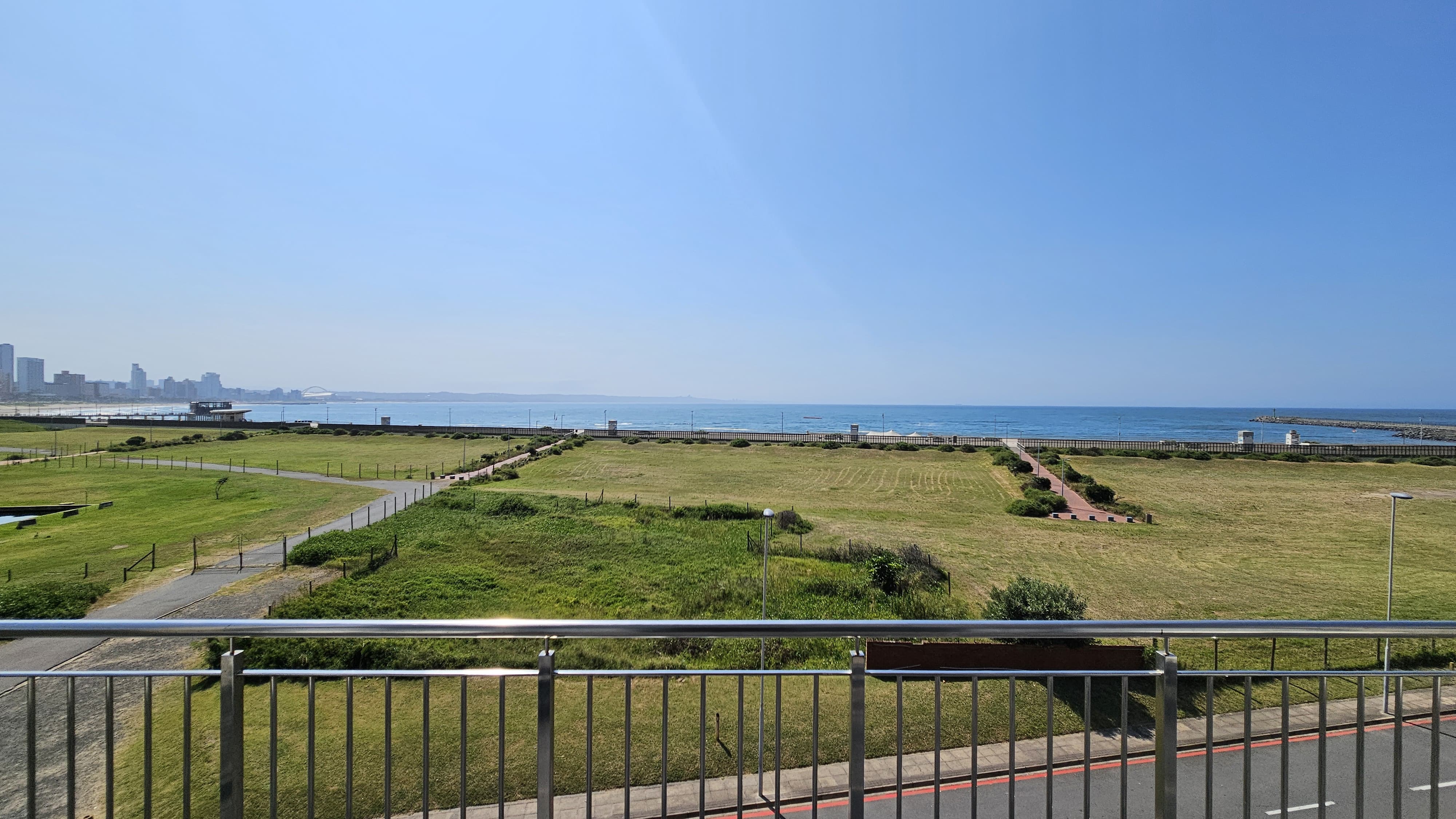 The apartment offers access to a balcony with stunning views over the waterfront and beyond.