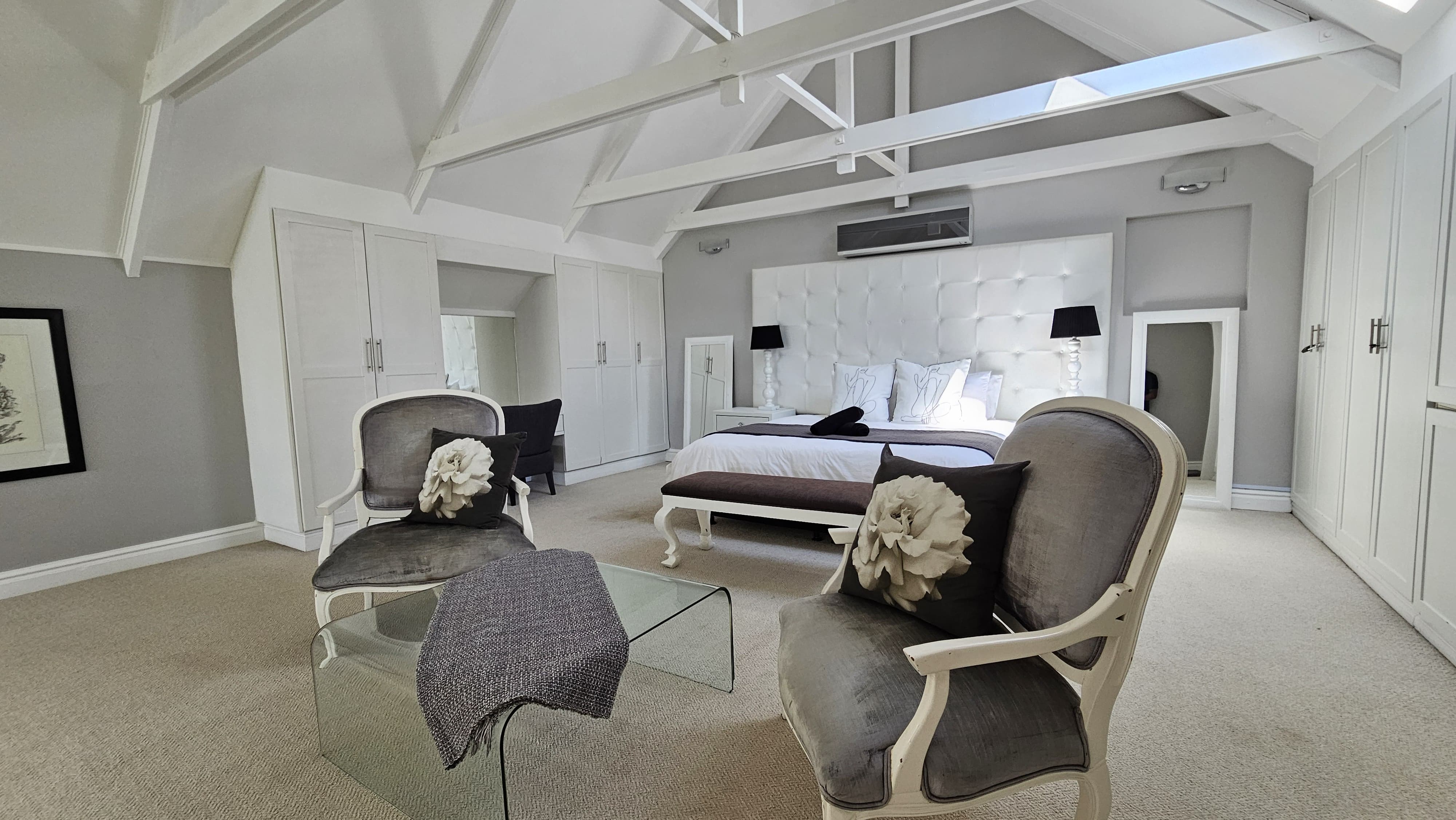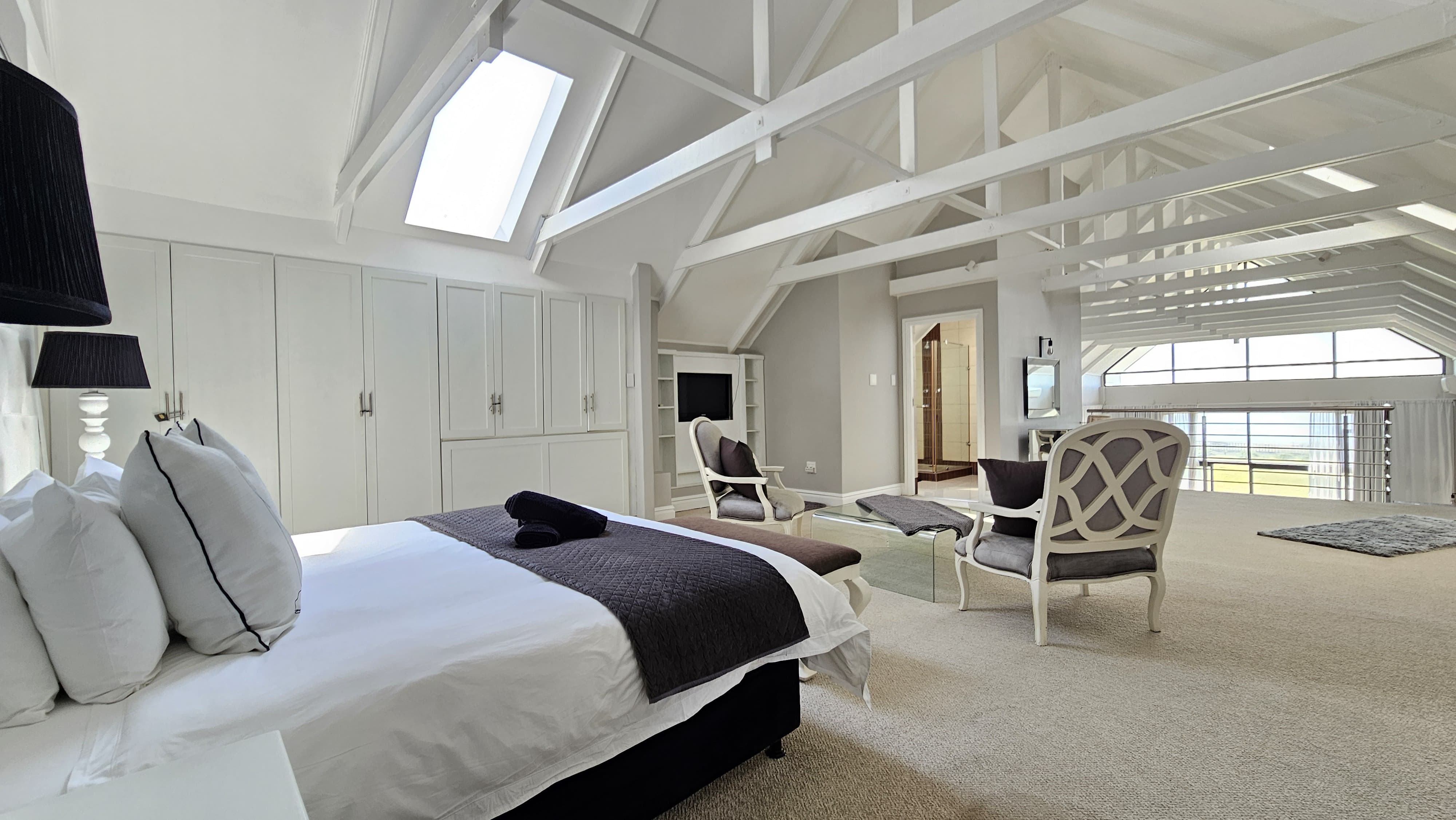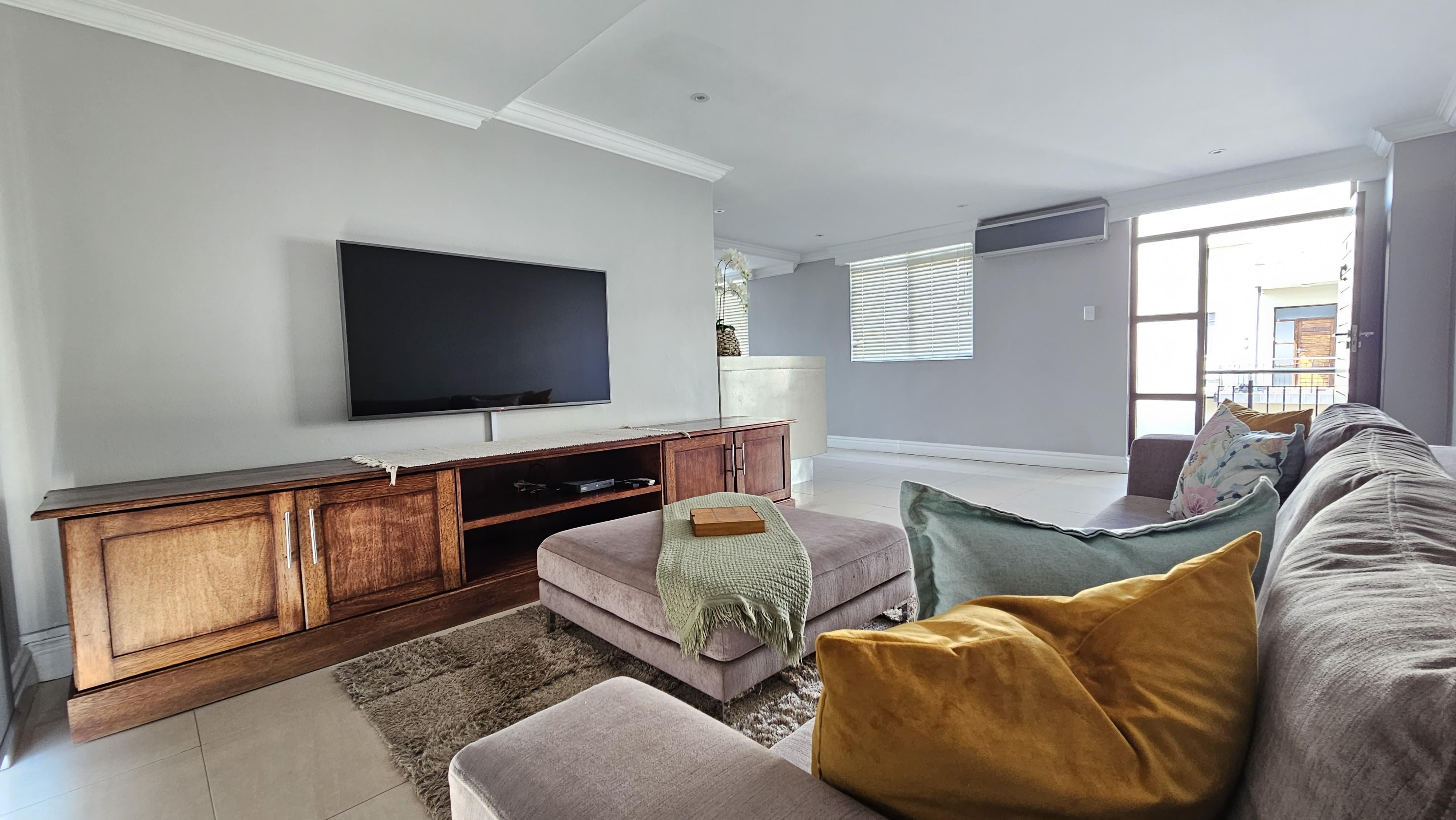 The space is thoughtfully furnished with a comfortable lounge area, perfect for relaxing or entertaining guests.