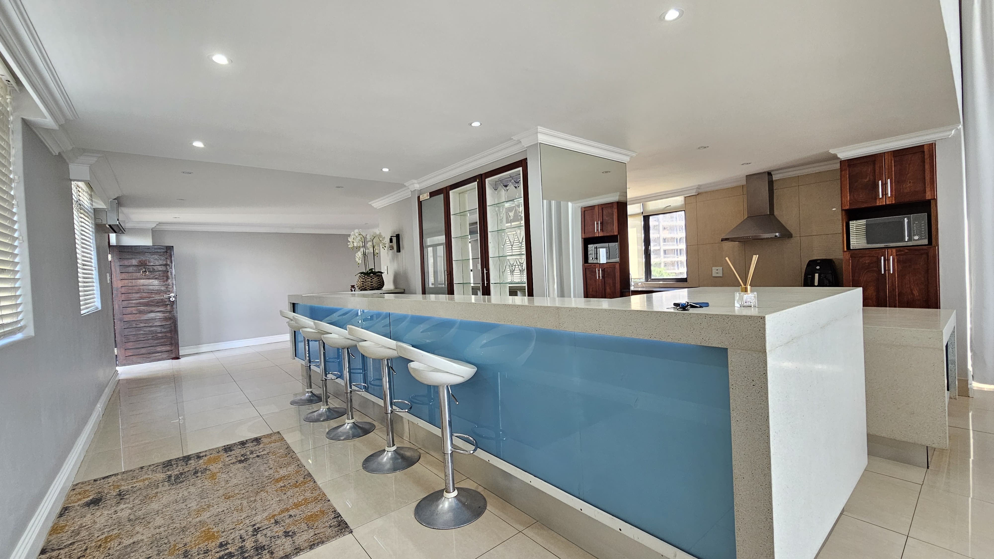 One of the best features of this apartment is the stylish bar area, perfect for hosting parties.