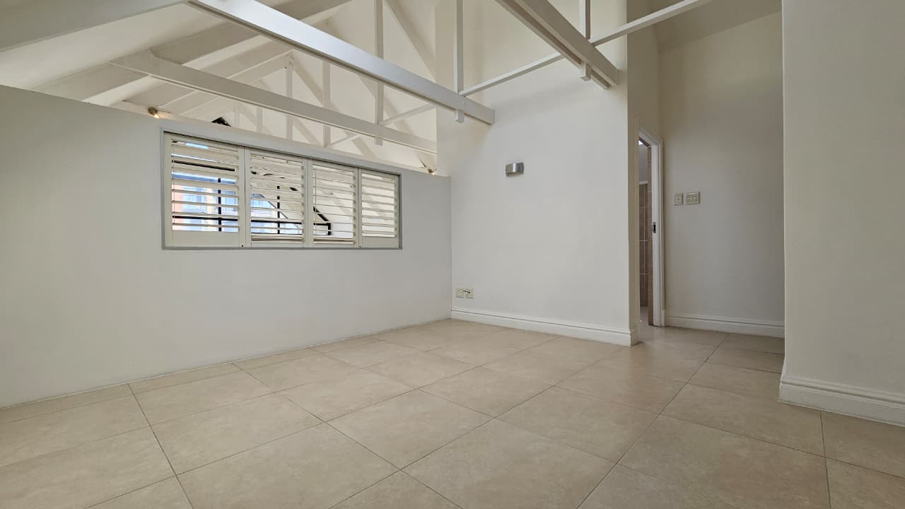 The kitchen seamlessly flows into the expansive open-plan lounge and dining area, enhanced by double-volume ceilings with exposed beams and large sliding doors that invite natural light and ocean breezes.