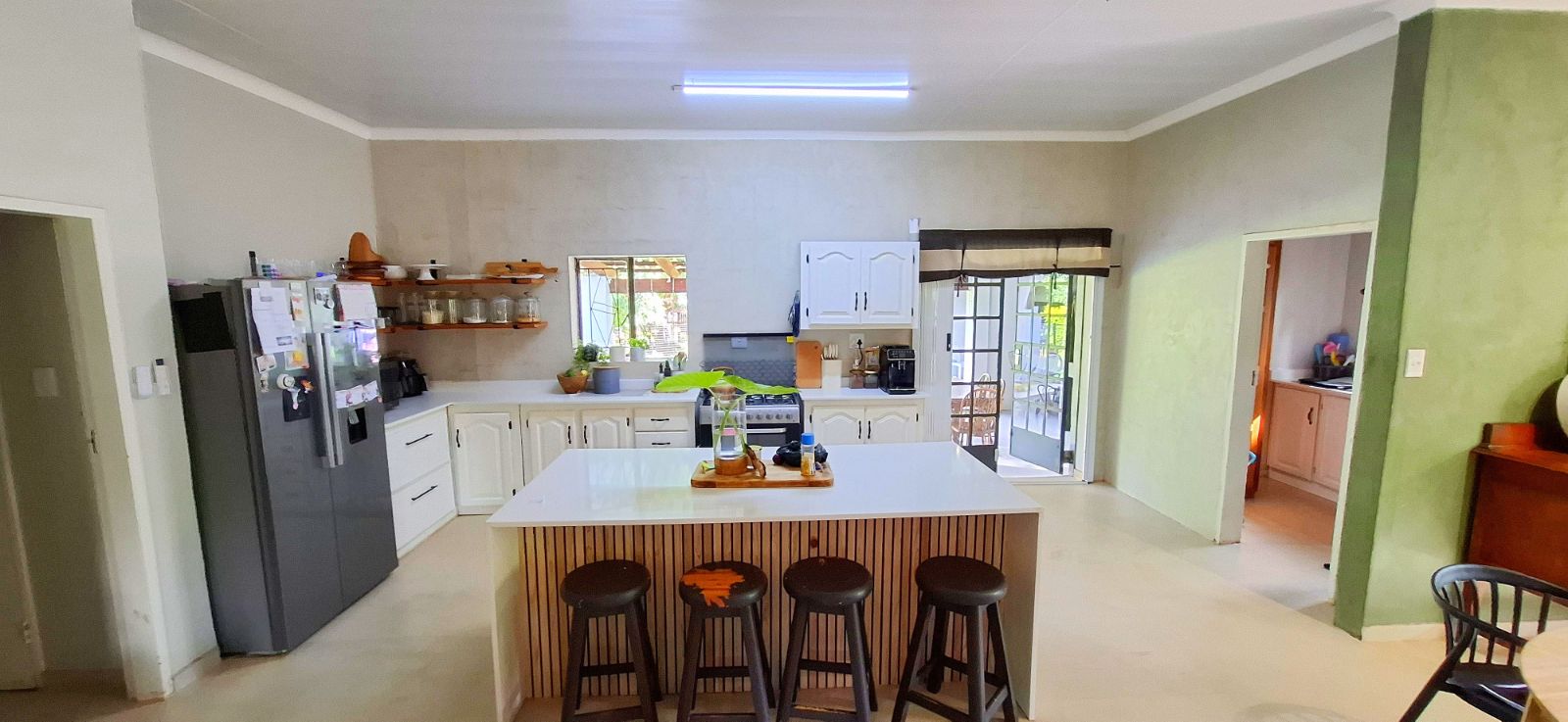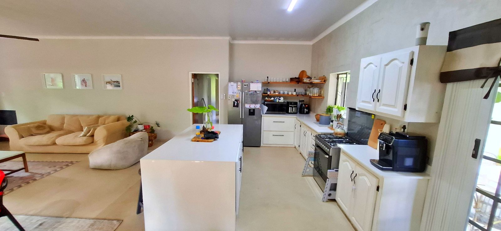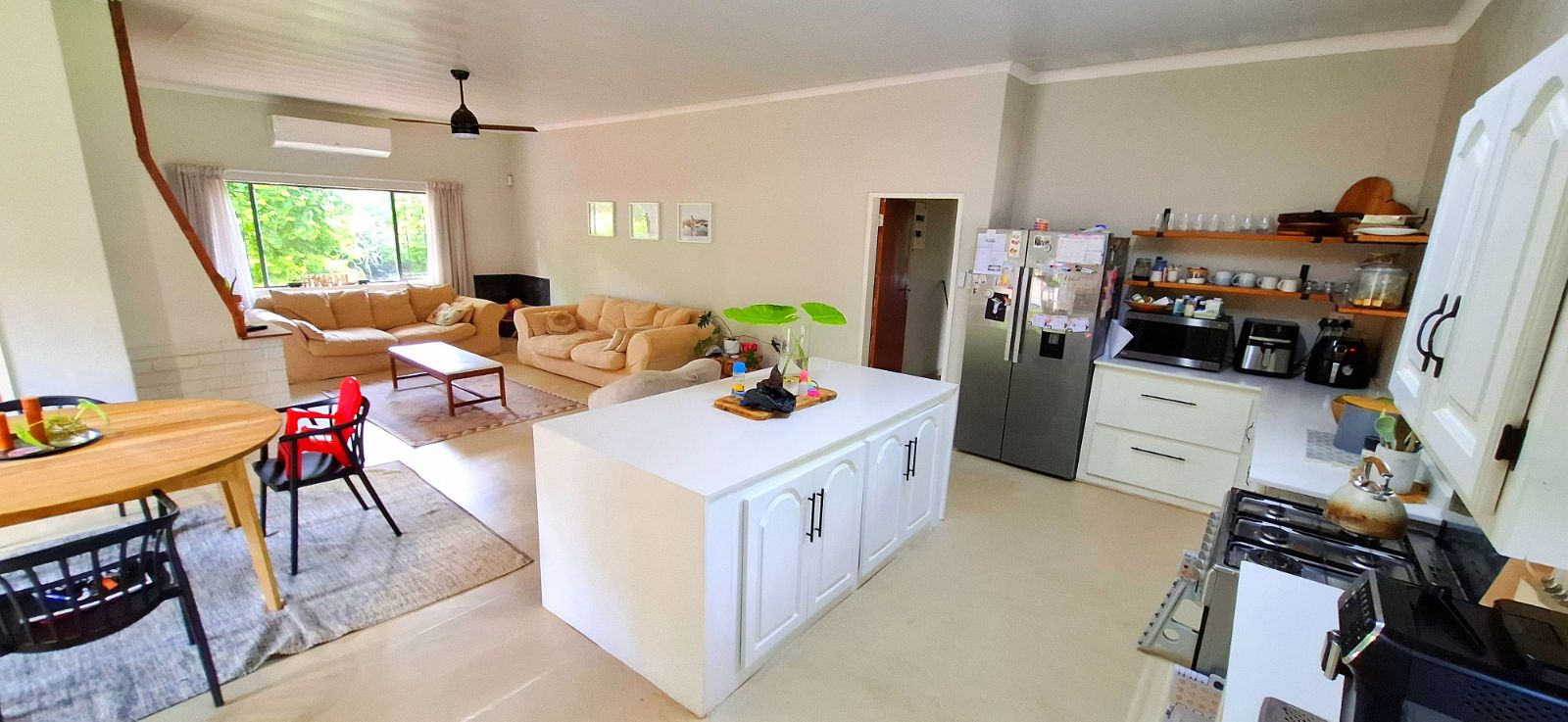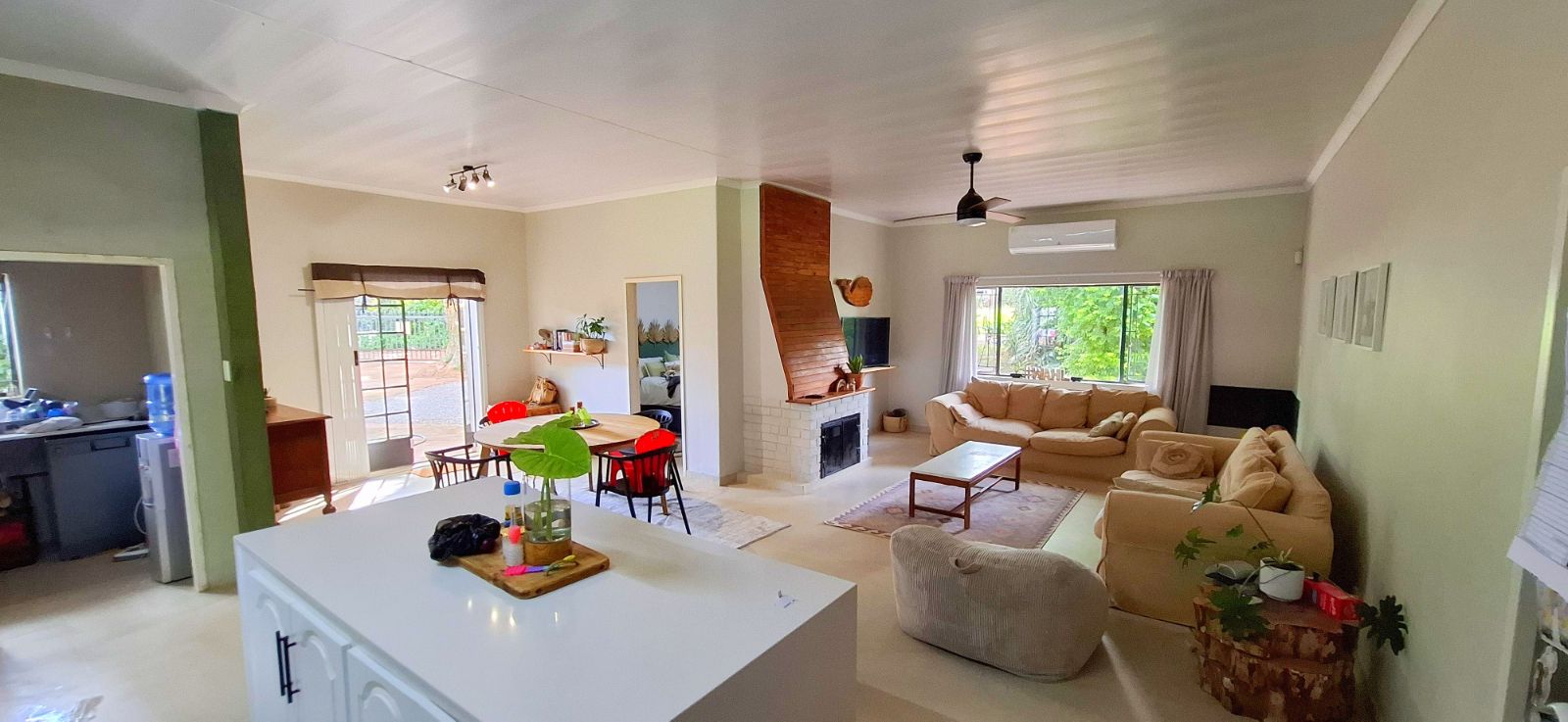 Open-Plan Living – Spacious living, dining, and kitchen areas designed for seamless entertaining and family gatherings with original fireplace