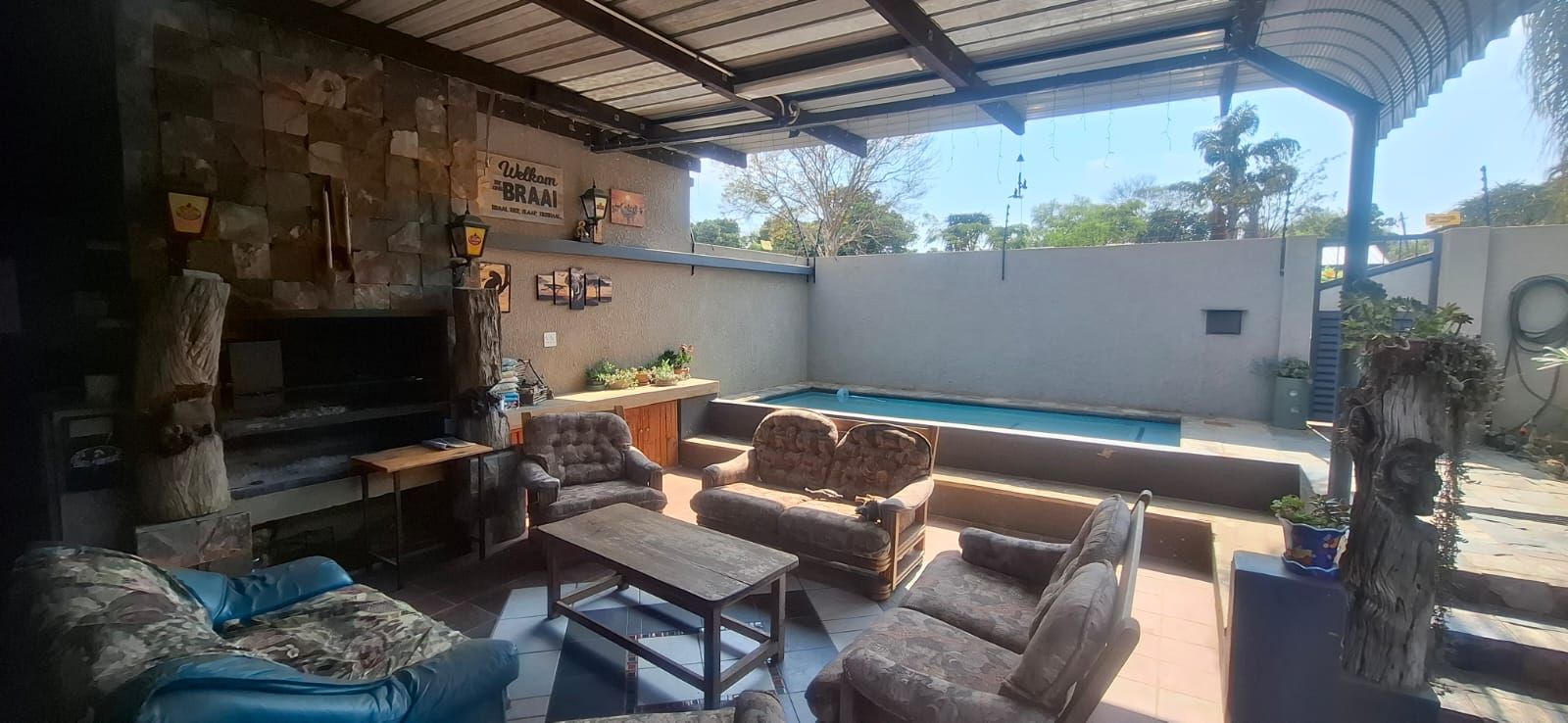 A separate study provides the ideal workspace, while the undercover entertainment area with a built-in braai and splash pool is perfect for relaxed family gatherings. The property also includes two one-bedroom flats, ideal for extended family, office use, or rental income.
