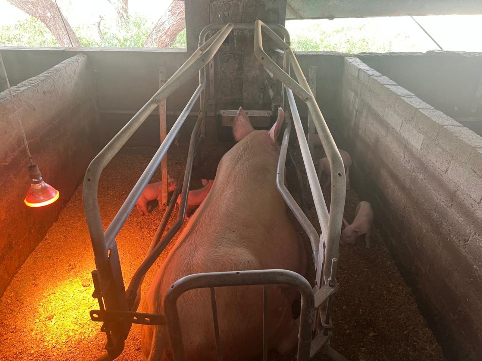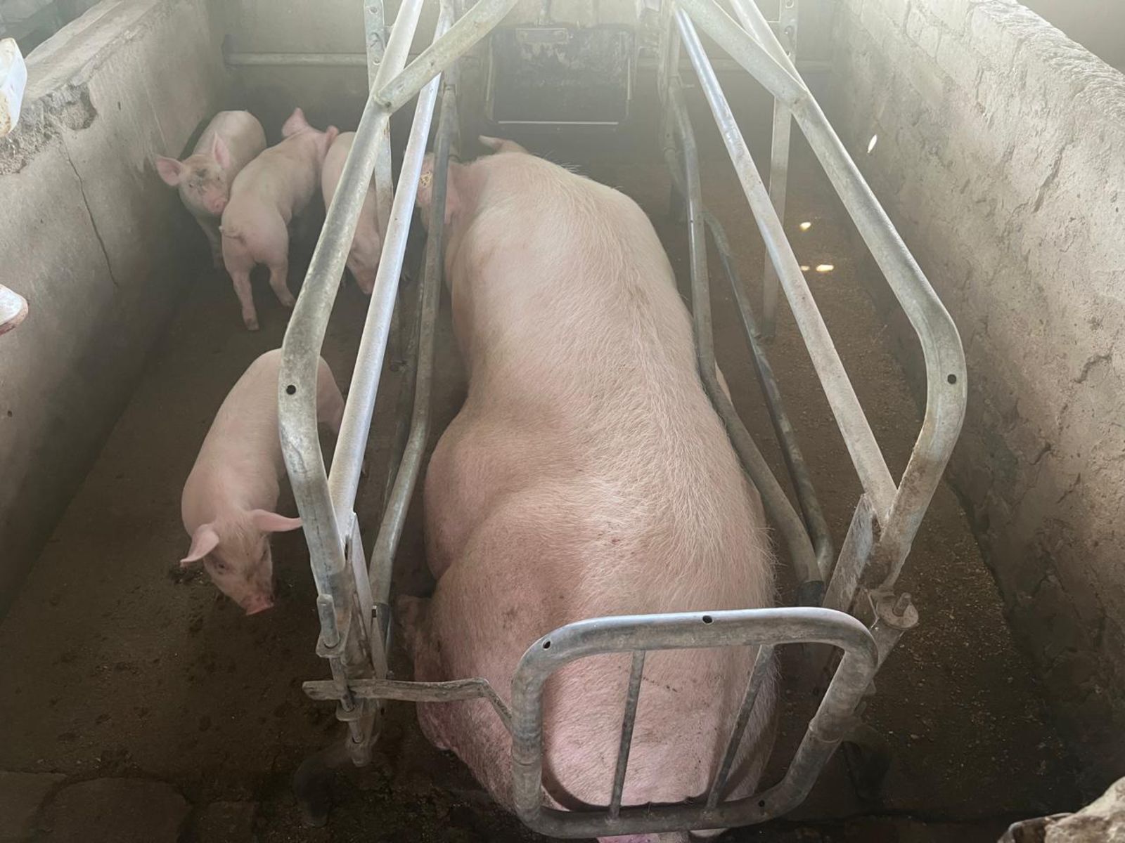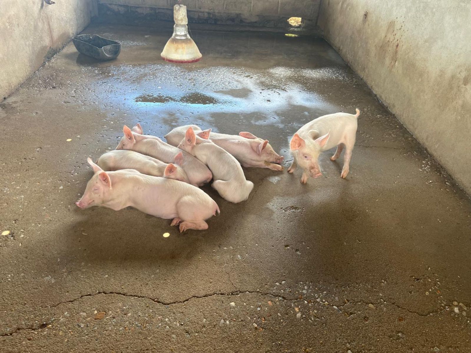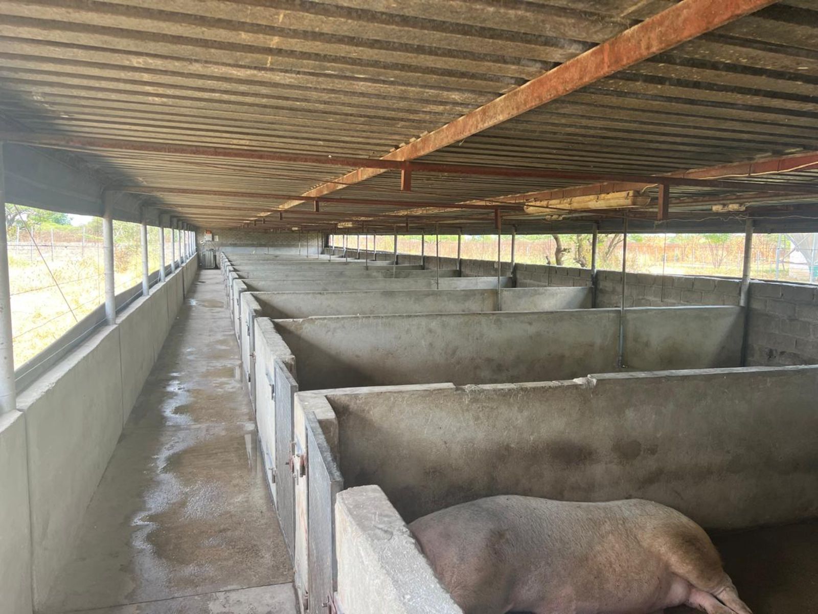 Pig farming facilities, including 2 pig sties, supporting 12 breeding sows, 2 boars, and 60 weanlings.