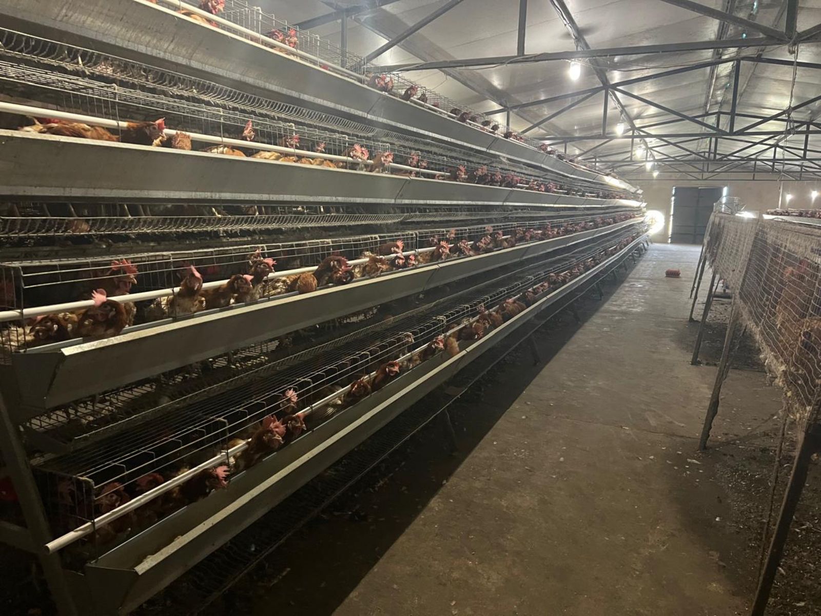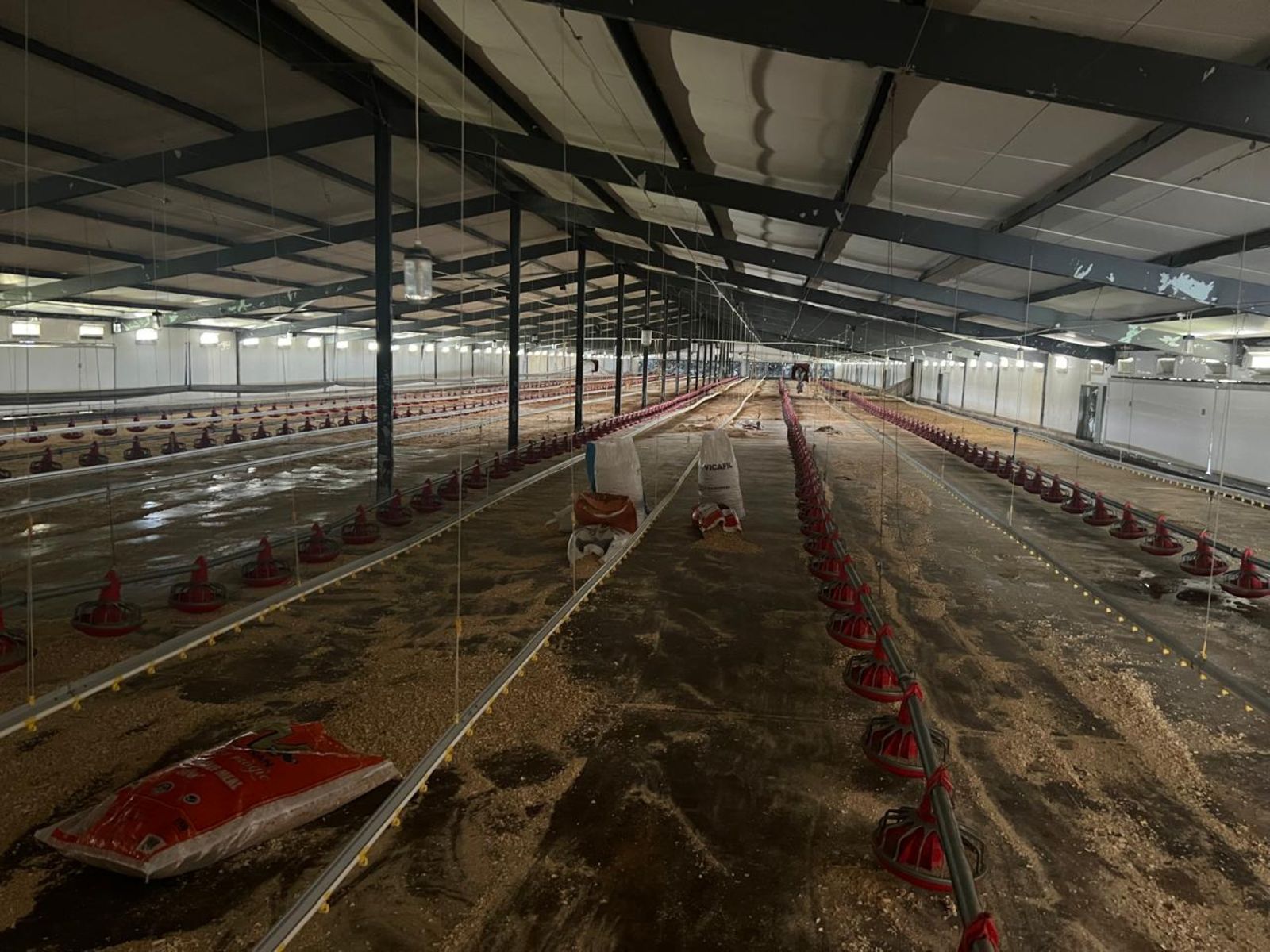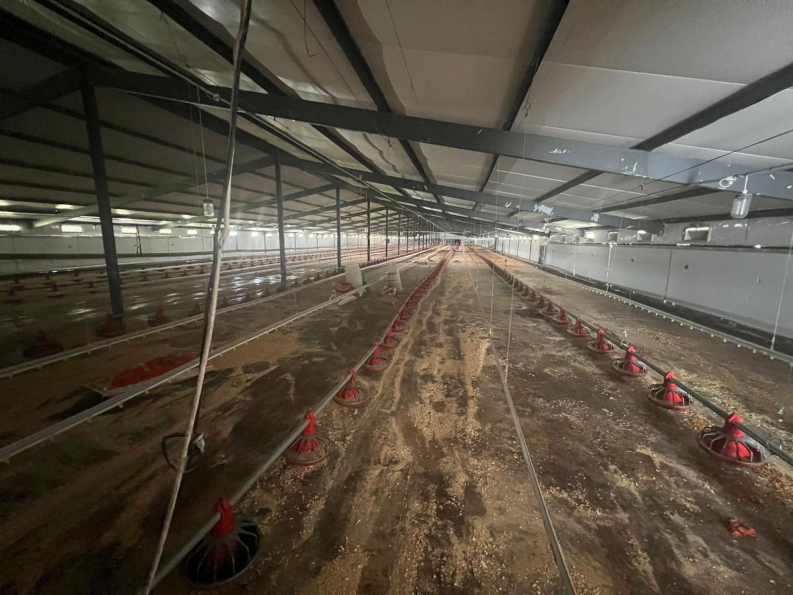 2 mega modern chicken pens, each accommodating 40,000 chickens (100,000 total).