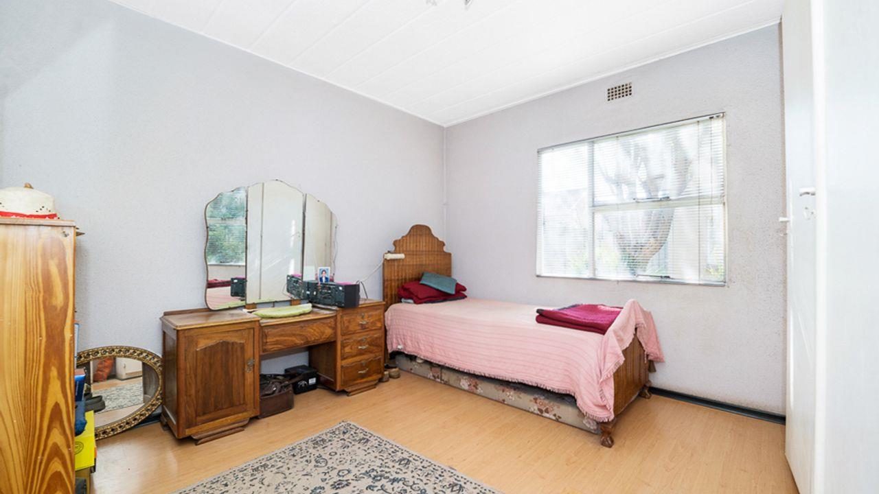 Two generously sized bedrooms come with blinds, ceiling fans, and wooden floors. The modern steel windows provide durability and security. The stylish full bathroom includes a bath, shower, toilet, and vanity unit.