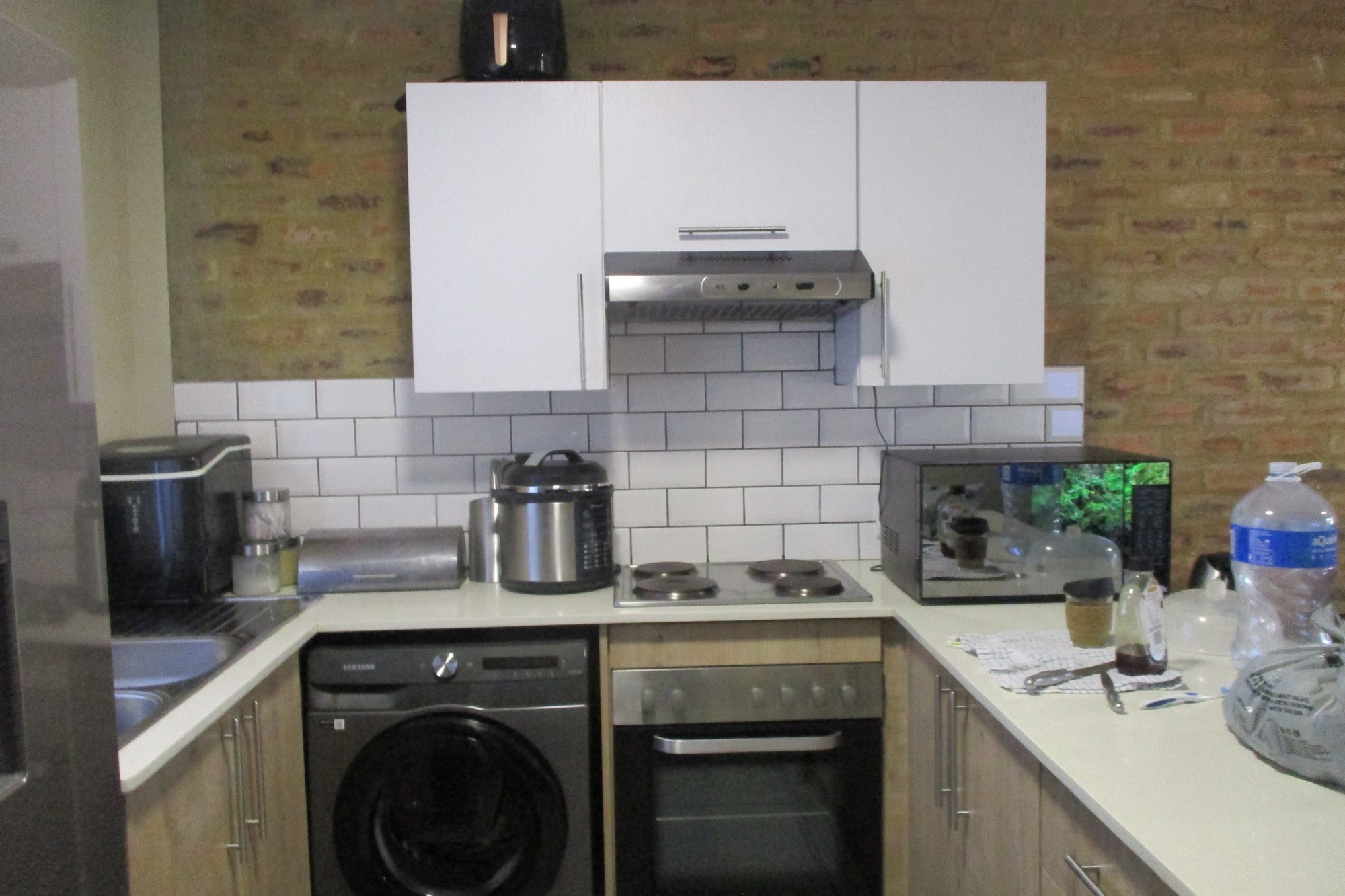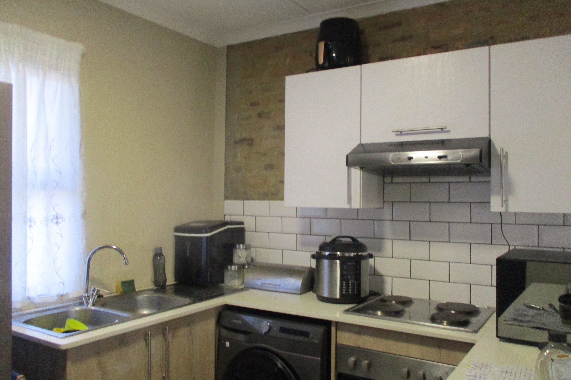 Kitchen & Living: Open-plan kitchen and living area with a built-in stove and ample cupboard space, flowing seamlessly into the lounge.