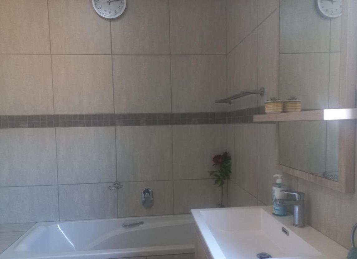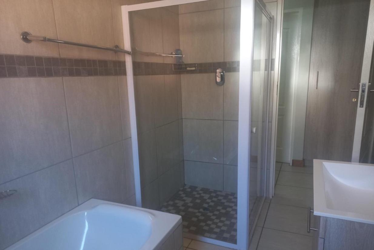 This modern, immaculate house offers 3 bedrooms, all bedrooms are tiled. The master bedroom is spacious, with adequate cupboards, an en-suite shower, and a bathtub.