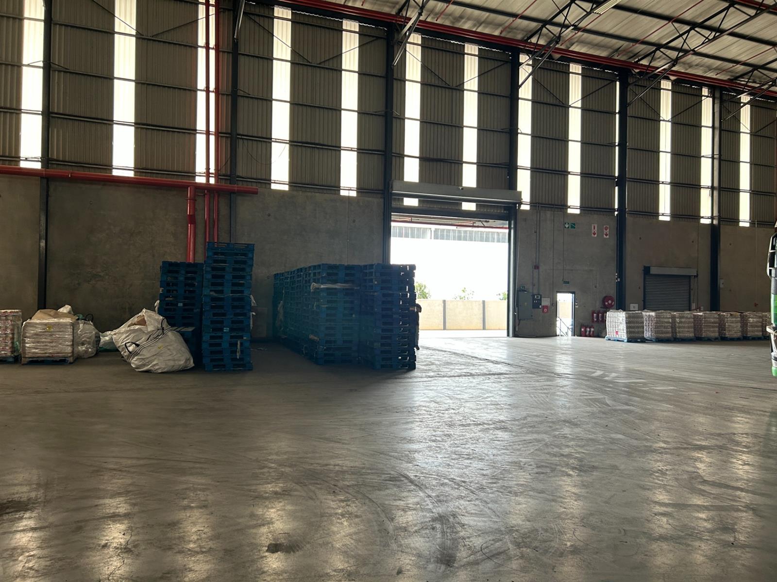 Large manufacturing or logistics facility to let in Pomona, Kempton Park. This 10,723 sqm warehouse offers excellent height with approximately 15m floor-to-eave clearance and seamless flooring designed for a 10-ton point load. The property is fully sprinklered with a J1 rating and provides 800 amps of 3-phase power, making it suitable for high-demand industrial operations.