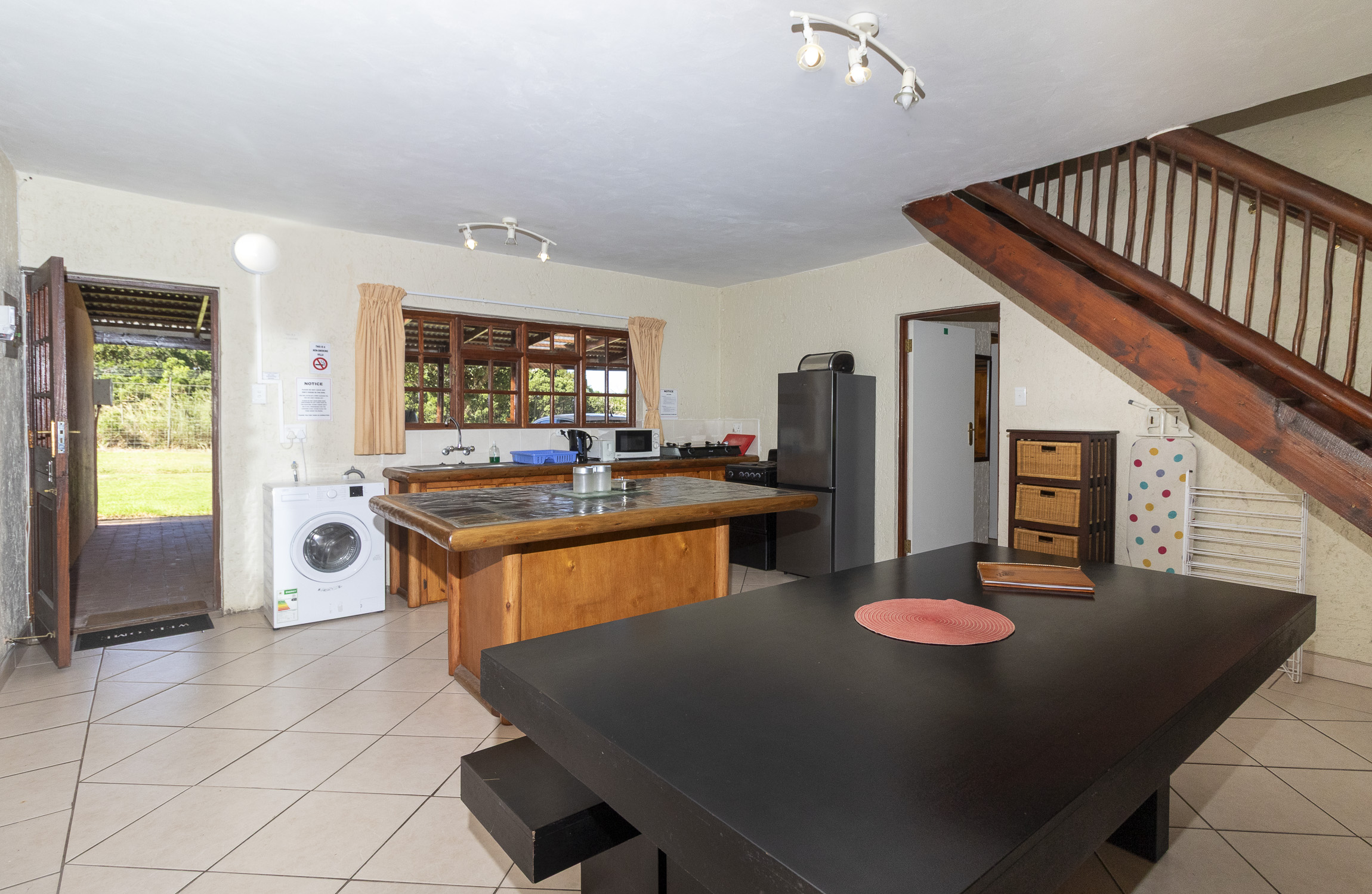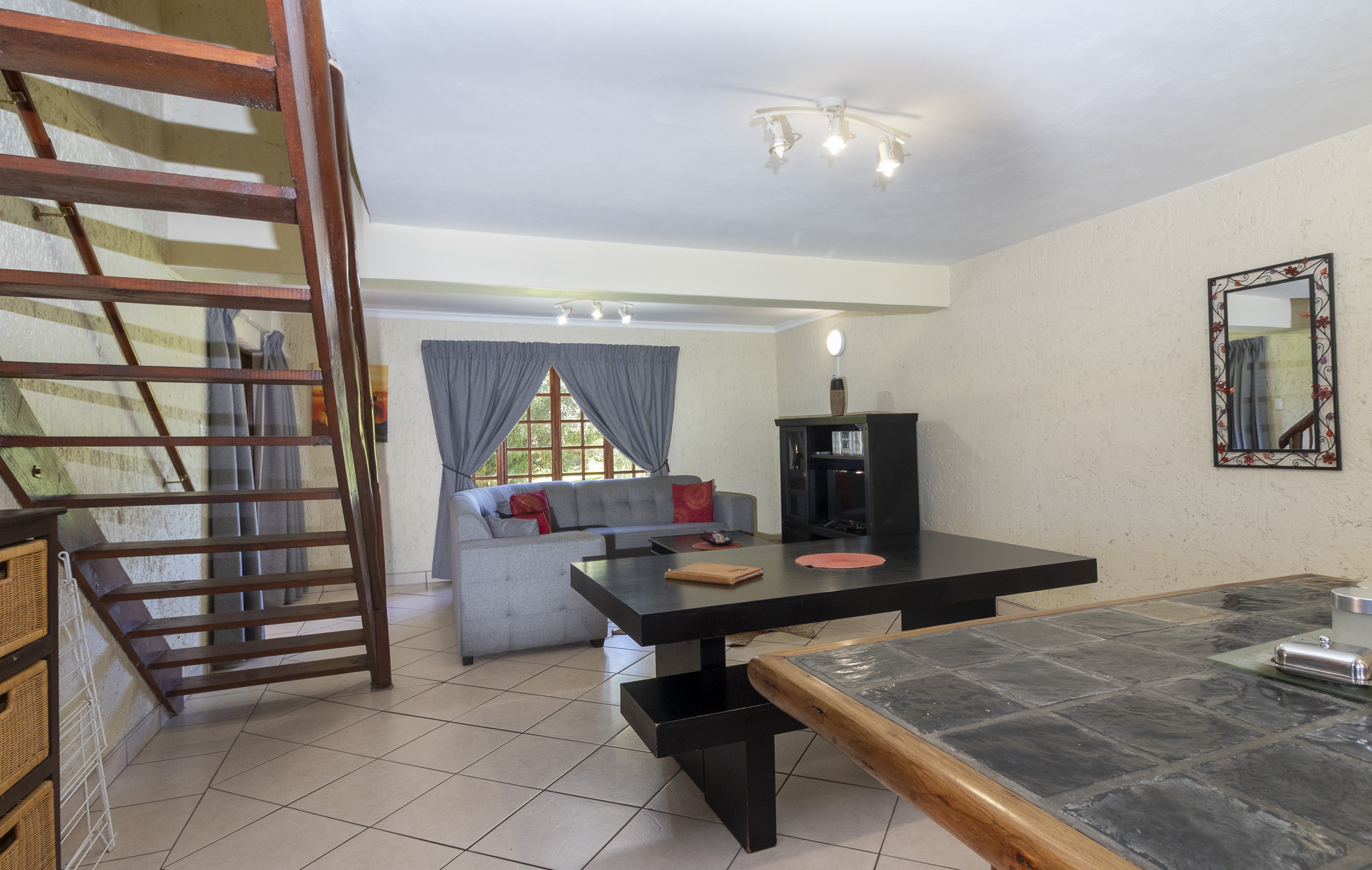 Nestled within the tranquil and picturesque Greenfountain Farm complex, this delightful three bedroom townhouse offers an inviting escape from the hustle and bustle of urban life. Ideally situated just a short drive from the heart of Port Alfred, it perfectly balances the serenity of country living with convenient access to essential amenities. Step inside to discover a warm and welcoming interior, where rustic charm meets modern comfort. The open plan living area seamlessly integrates with the kitchen, creating a functional and inviting space. The ground floor also features a spacious en-suite bedroom and a full bathroom, while two additional bedrooms are situated upstairs. The living area extends onto an enclosed patio, complete with a built-in braai, where sliding doors open to expansive lawns and a scenic dam. Mature trees enhance the natural beauty of the grounds, providing a peaceful outdoor setting for relaxation, entertaining, or simply enjoying a quiet moment with a book. The patio is ideal for al fresco dining, allowing you to make the most of Port Alfred’s pleasant climate. Additionally, the property benefits from a reliable water supply sourced from a communal borehole, ensuring uninterrupted access to water regardless of municipal supply challenges. Offering a unique blend of charm, comfort, and convenience, this townhouse presents an excellent opportunity for those seeking a serene lifestyle in a secure and picturesque setting.