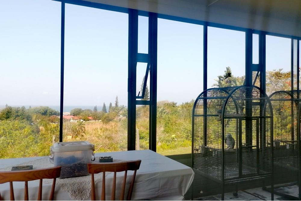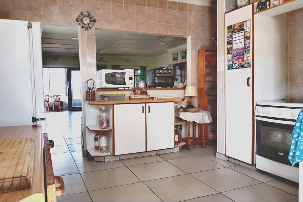 Kitchen has ample cupboard space flowing into the open and light dining and living area leading onto a enclosed sun room with 180o sea view.