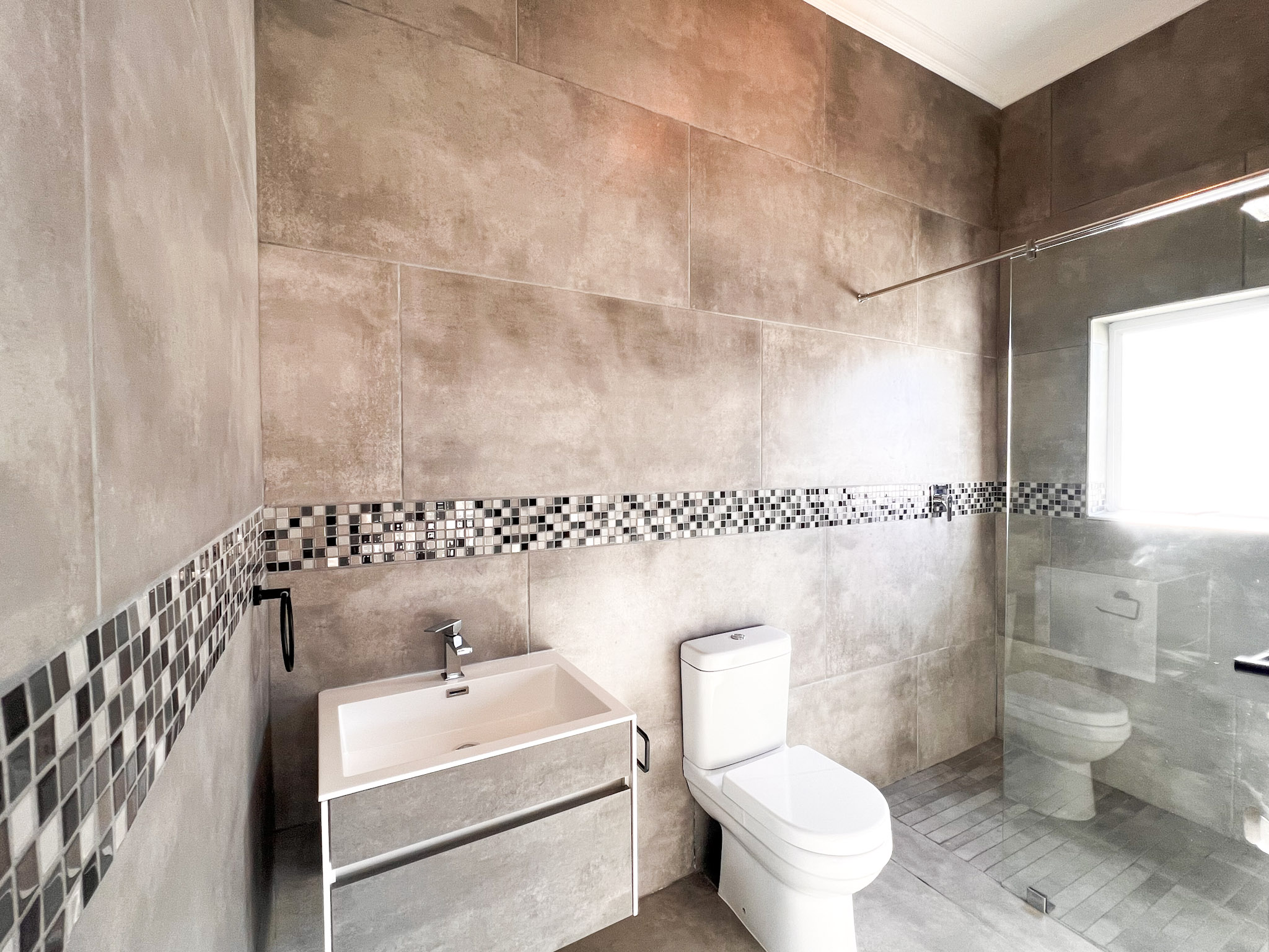 3 Bedrooms, each with its own en-suite bathroom with shower