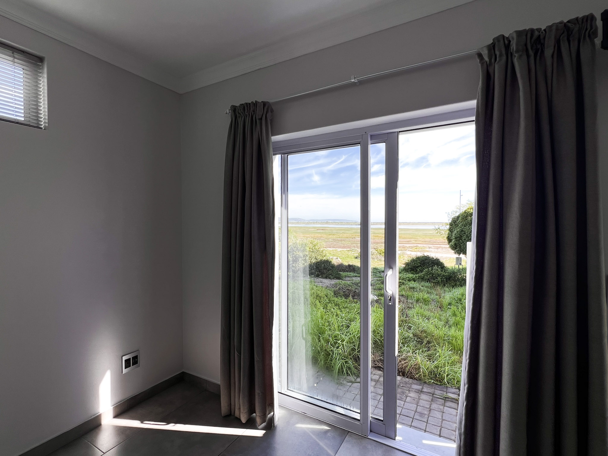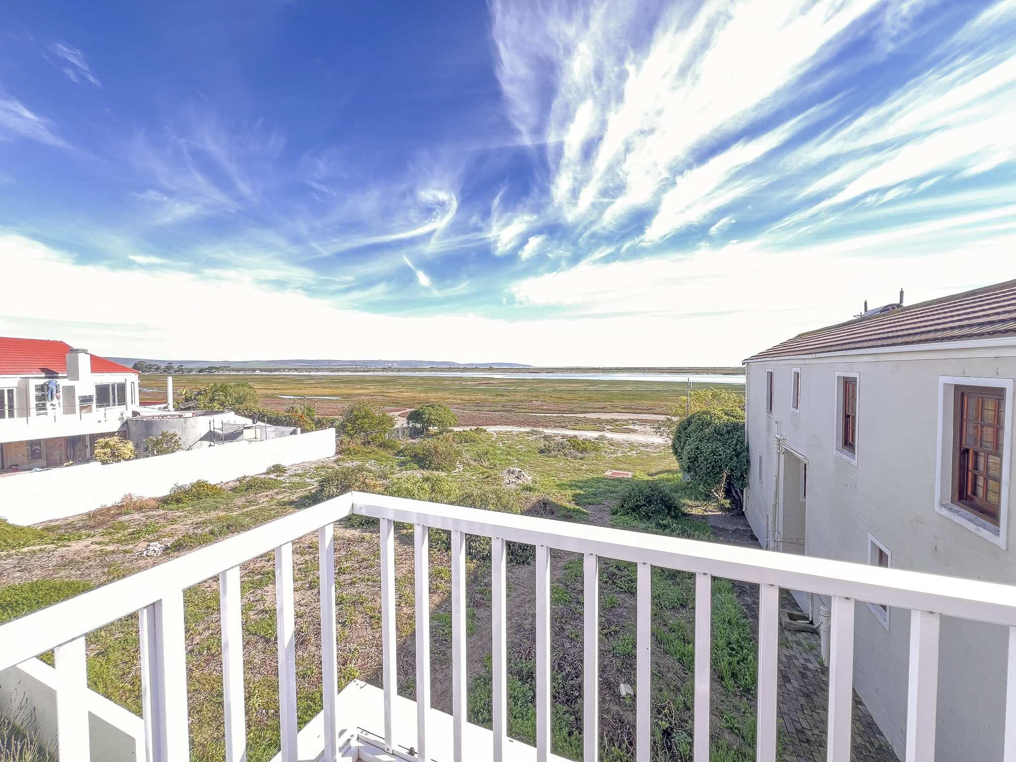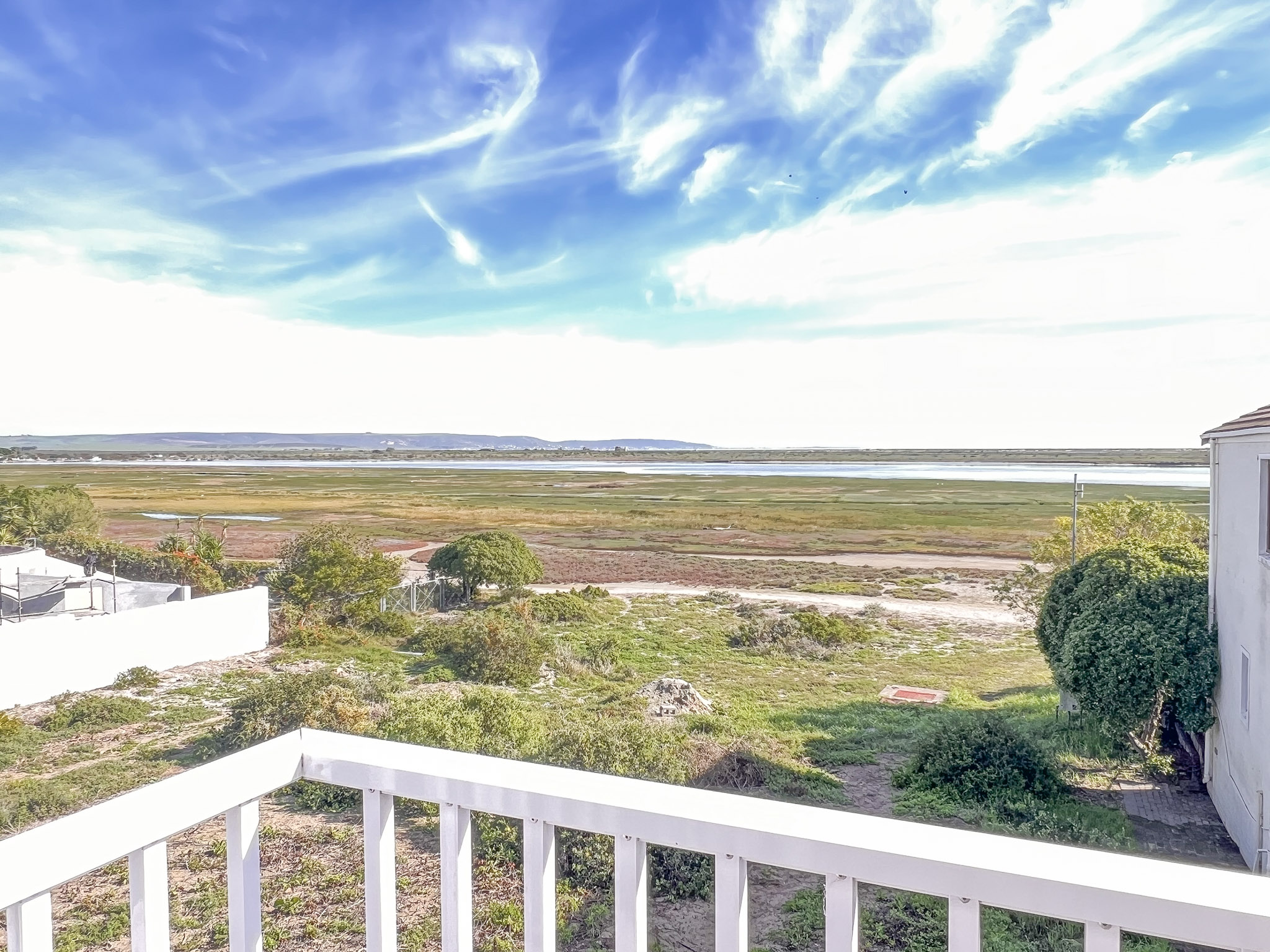 Spacious balcony with spectacular views over the lake and stretching towards St Helena Bay