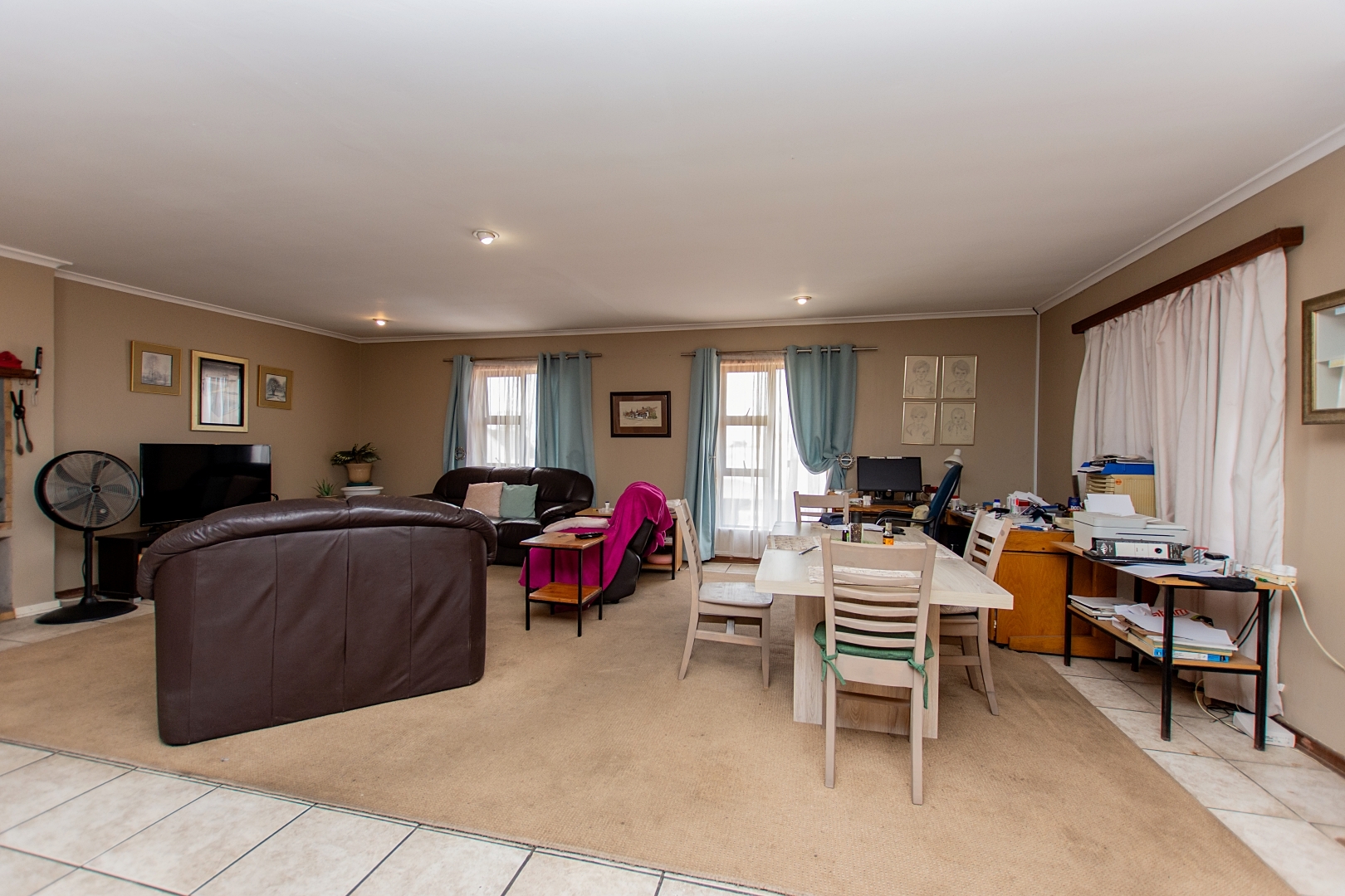Spacious Family Room: Large enough to accommodate family activities, with room for pool tables or similar activities.