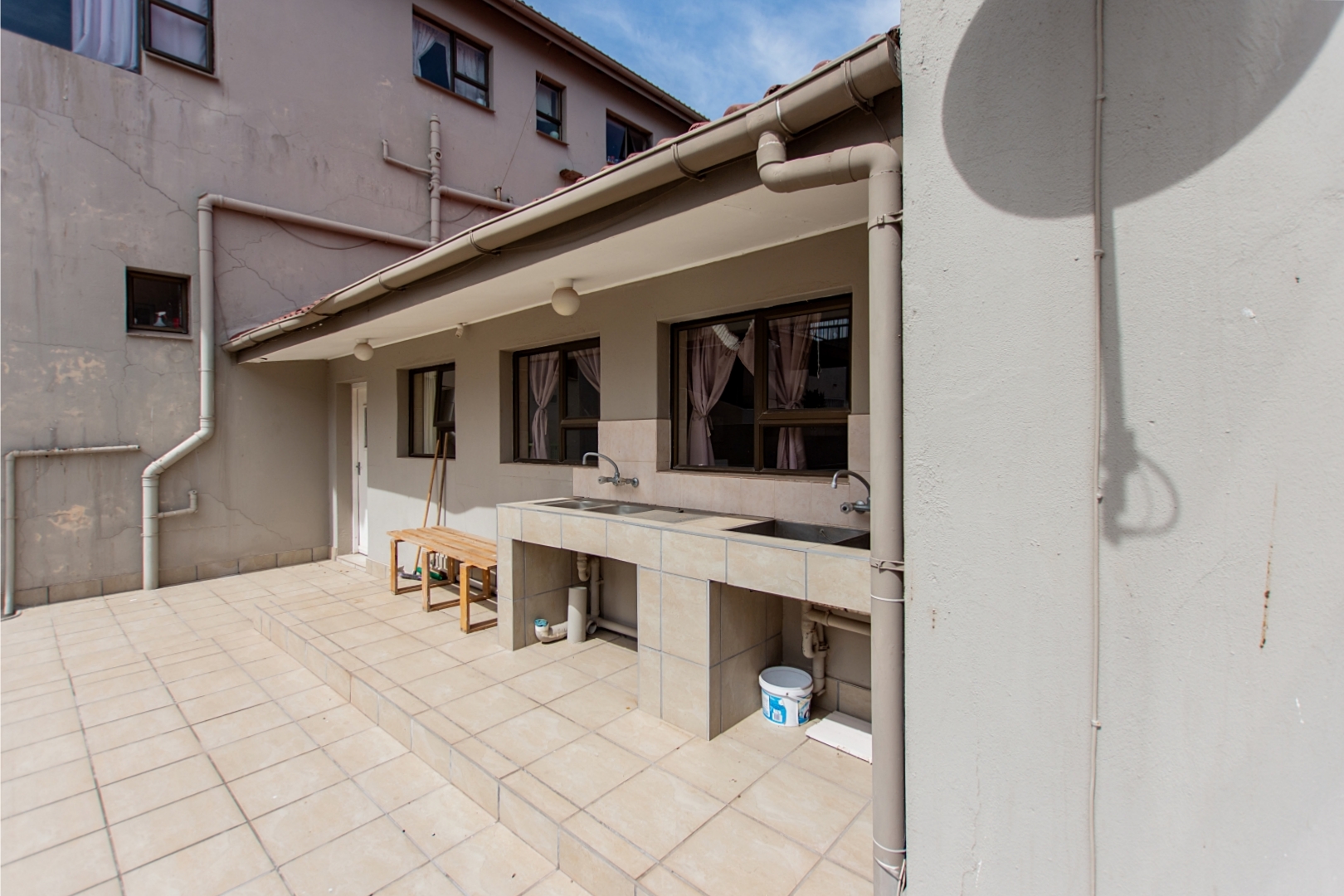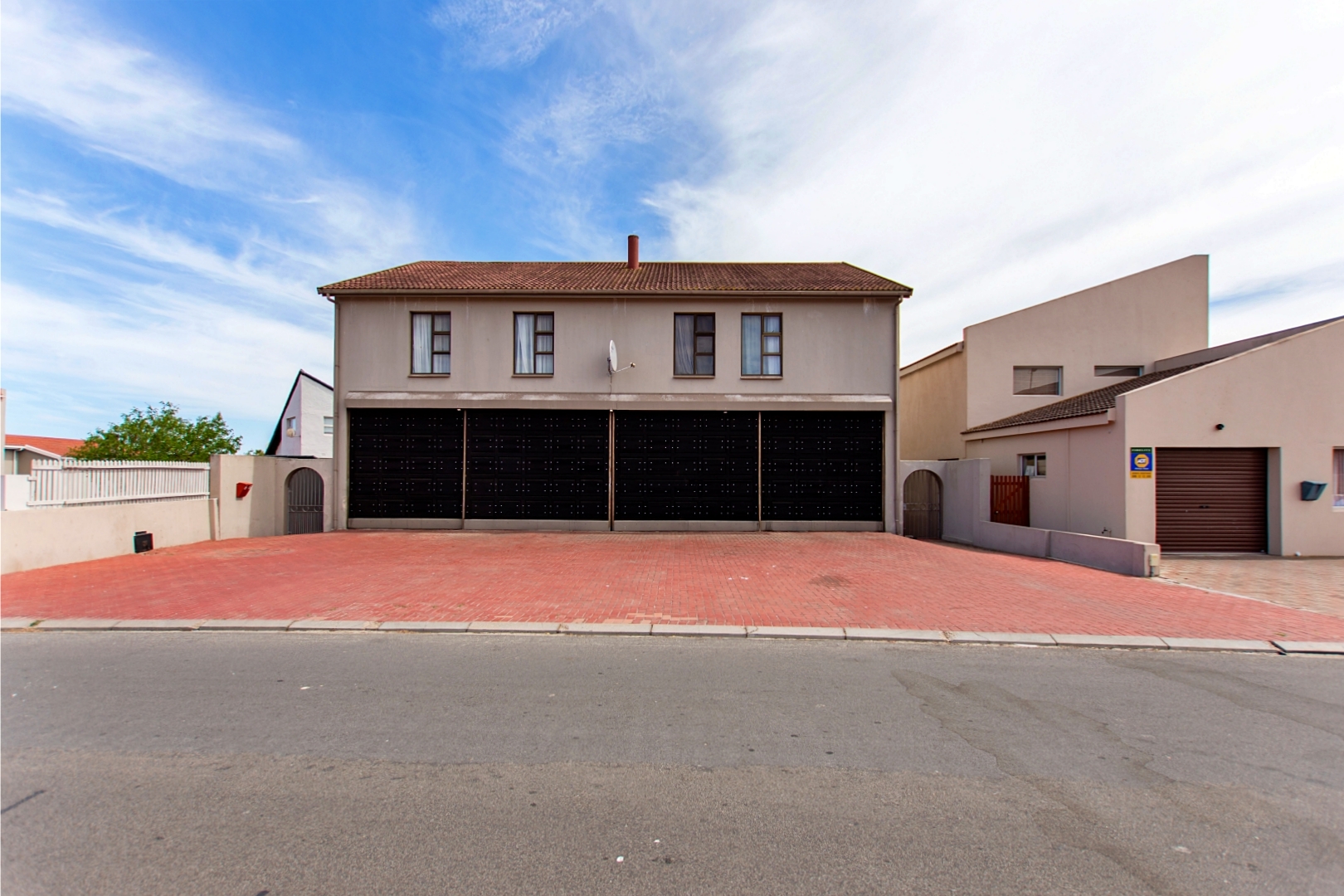 Separate Exit to Four Double Garages: Ensuring easy access for vehicles with ample parking space. This follows to another flat, this contains three bedrooms, all with on suites, and includes an open-plan kitchen, dining, lounge, and a braai area, as well as a separate guest toilet.