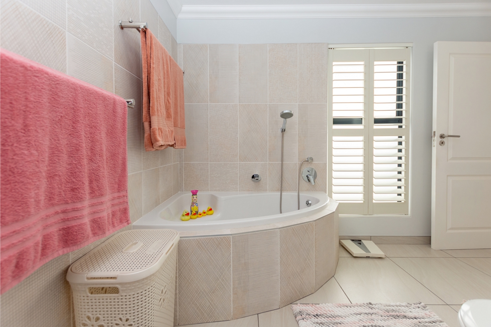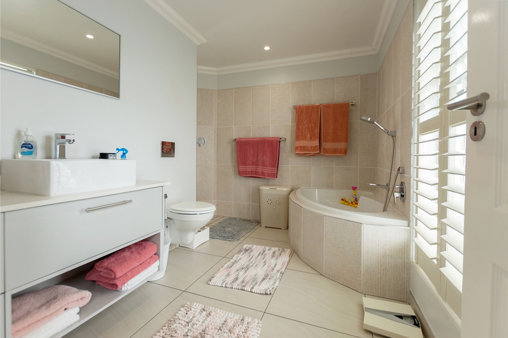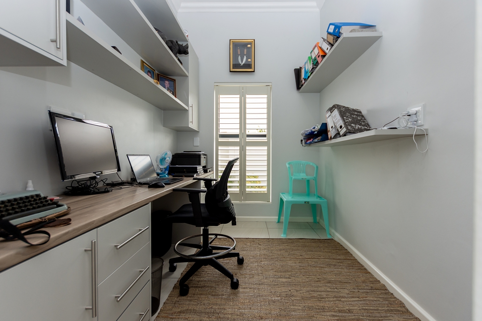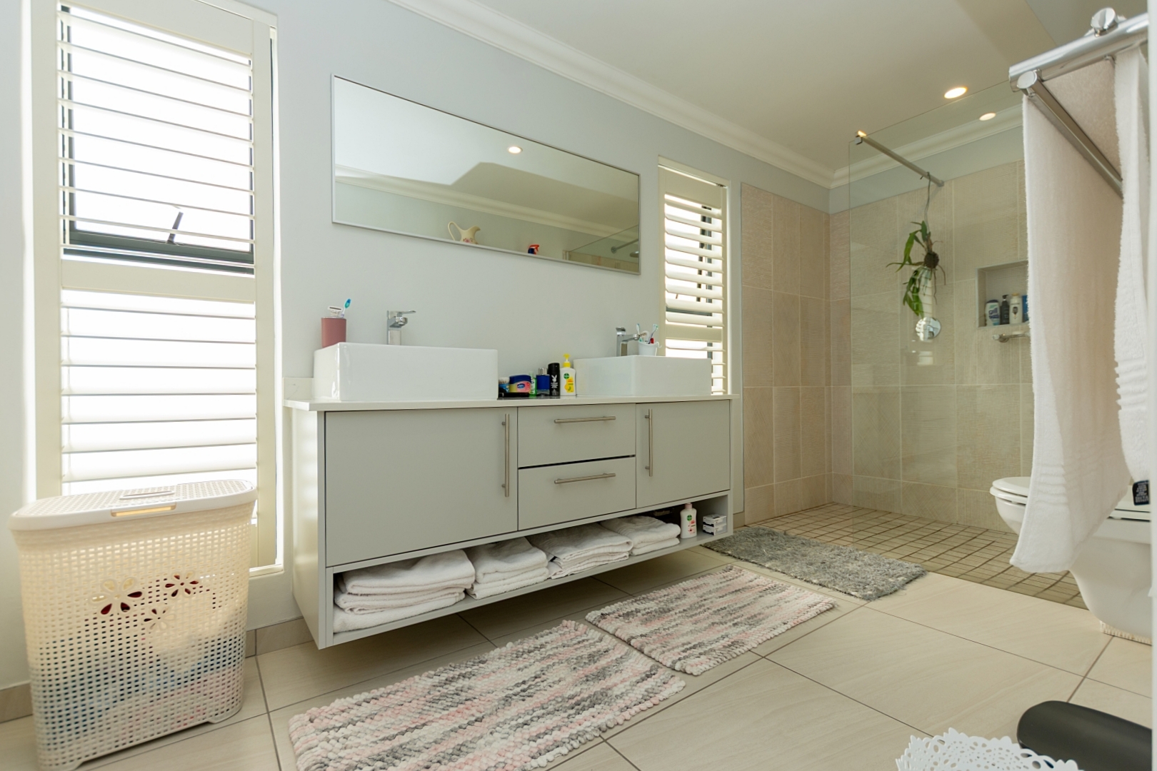 The property features three spacious bedrooms, with one currently used as a home office. The two main bedrooms each include luxurious en-suite bathrooms, while a separate guest toilet ensures convenience for visitors. Each bedroom comes with its own walk-in closet, providing ample storage and a touch of luxury