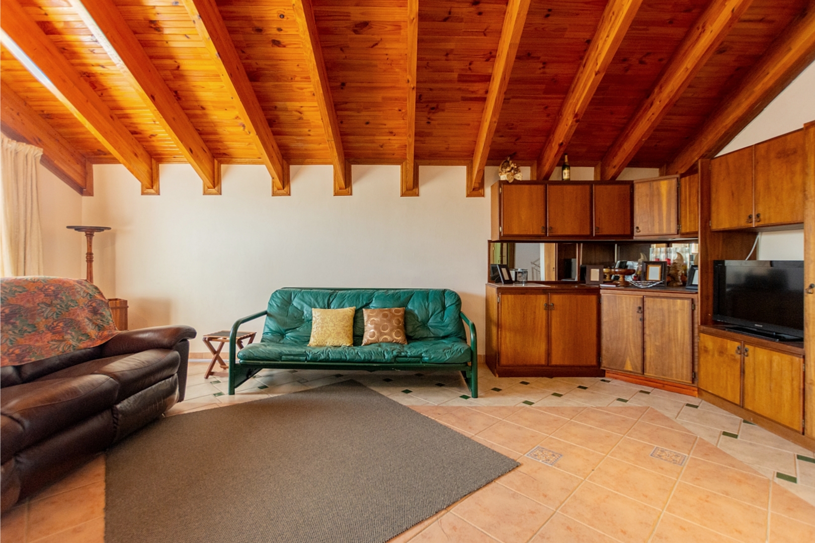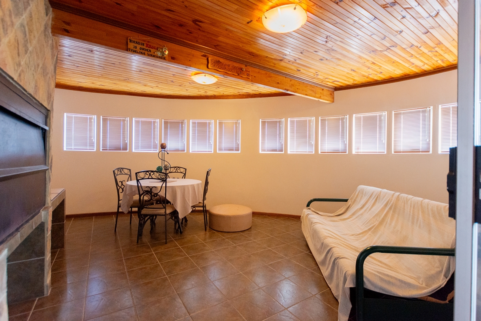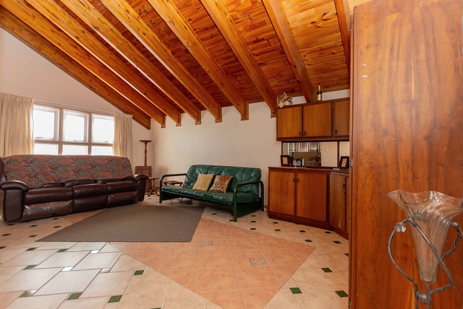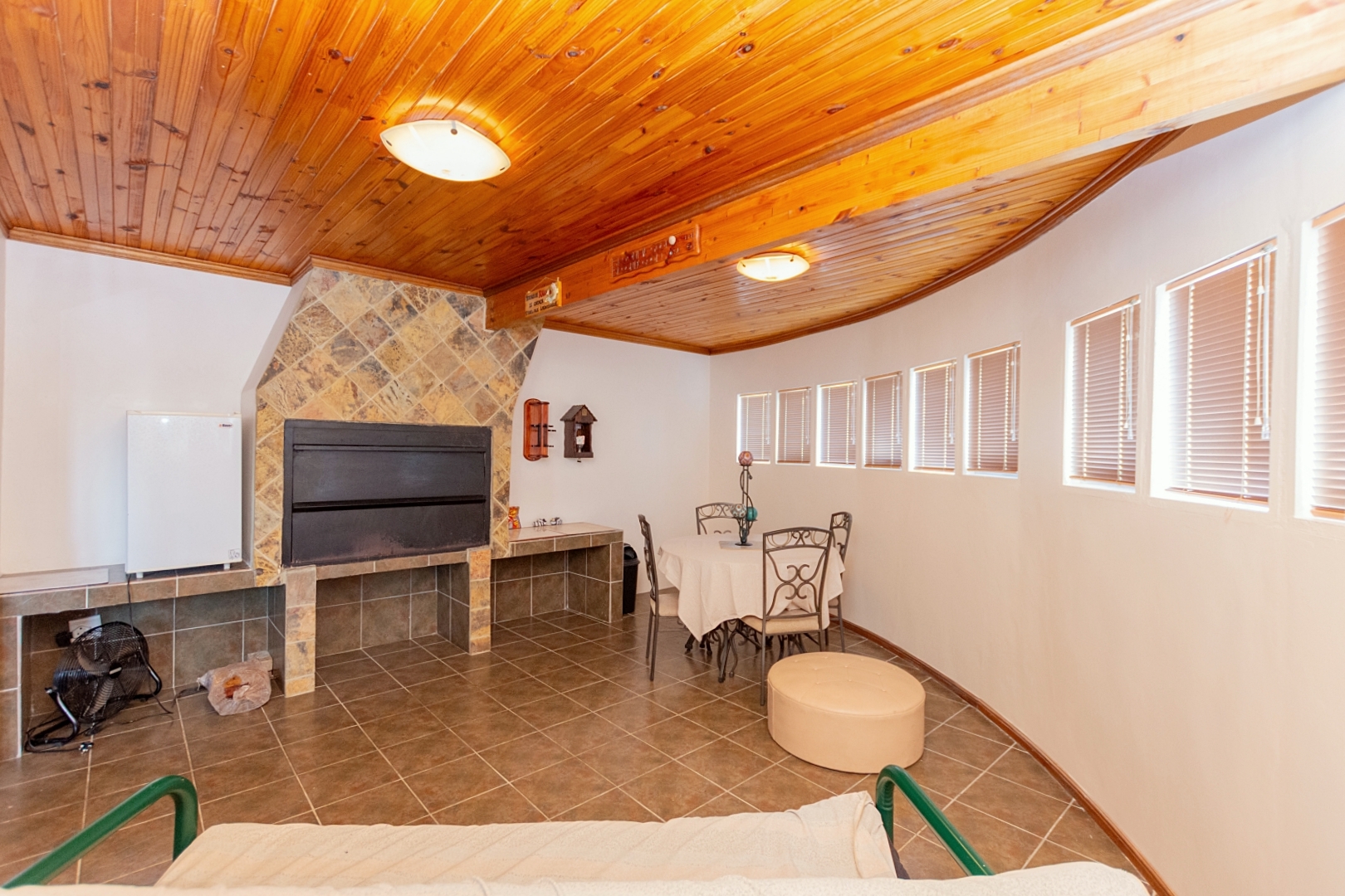 The second floor boasts a large entertainment area with an indoor braai (BBQ) space, a massive bedroom and lounge, and another full bathroom—ideal for hosting guests or relaxing in style.