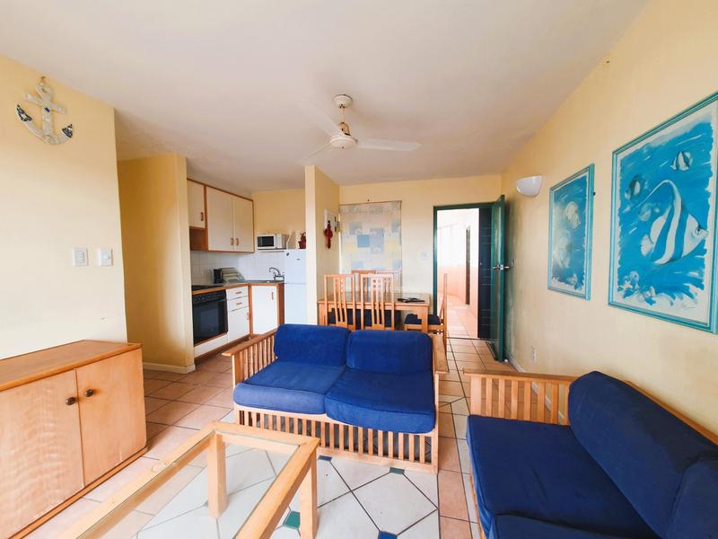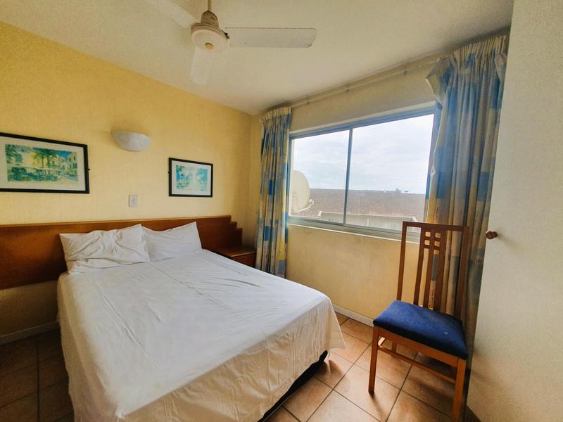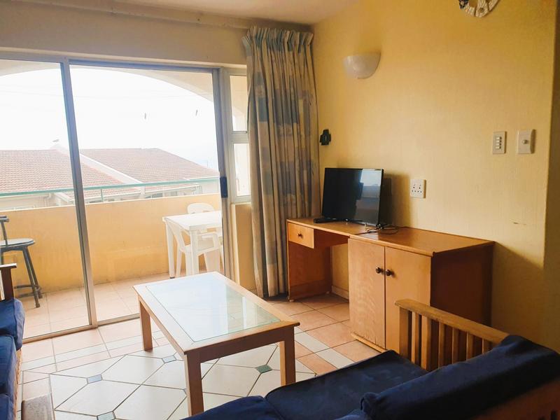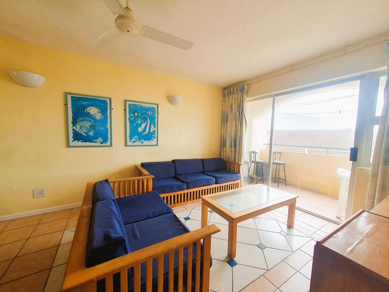 This fully furnished apartment is a fantastic opportunity for first time buyers to get into the property market as well as for seasoned investors. The corner unit offers you an open plan kitchen, dining room and lounge area which opens out onto a balcony with some views over the ocean and the pool area. 3 Bedrooms, 2 Bathrooms. With a bit of TLC, you can make this your own. Situated in a prime location on Port Shepstone Beach, with easy access to the CBD and a host of amenities on offer on the South Coast All floors are accessed by way of an elevator affording you easy access from the basement parking. A back-up generator for power and water storage tanks caters for electricity and water interruptions should they occur. Unparalleled communal areas include a sparkling pool, braai area, restaurant, bar facilities, conference rooms and, of course, the beautiful view of the Indian Ocean. There is 24-hour manned security and a boomed gate at the entrance to give you peace of mind.