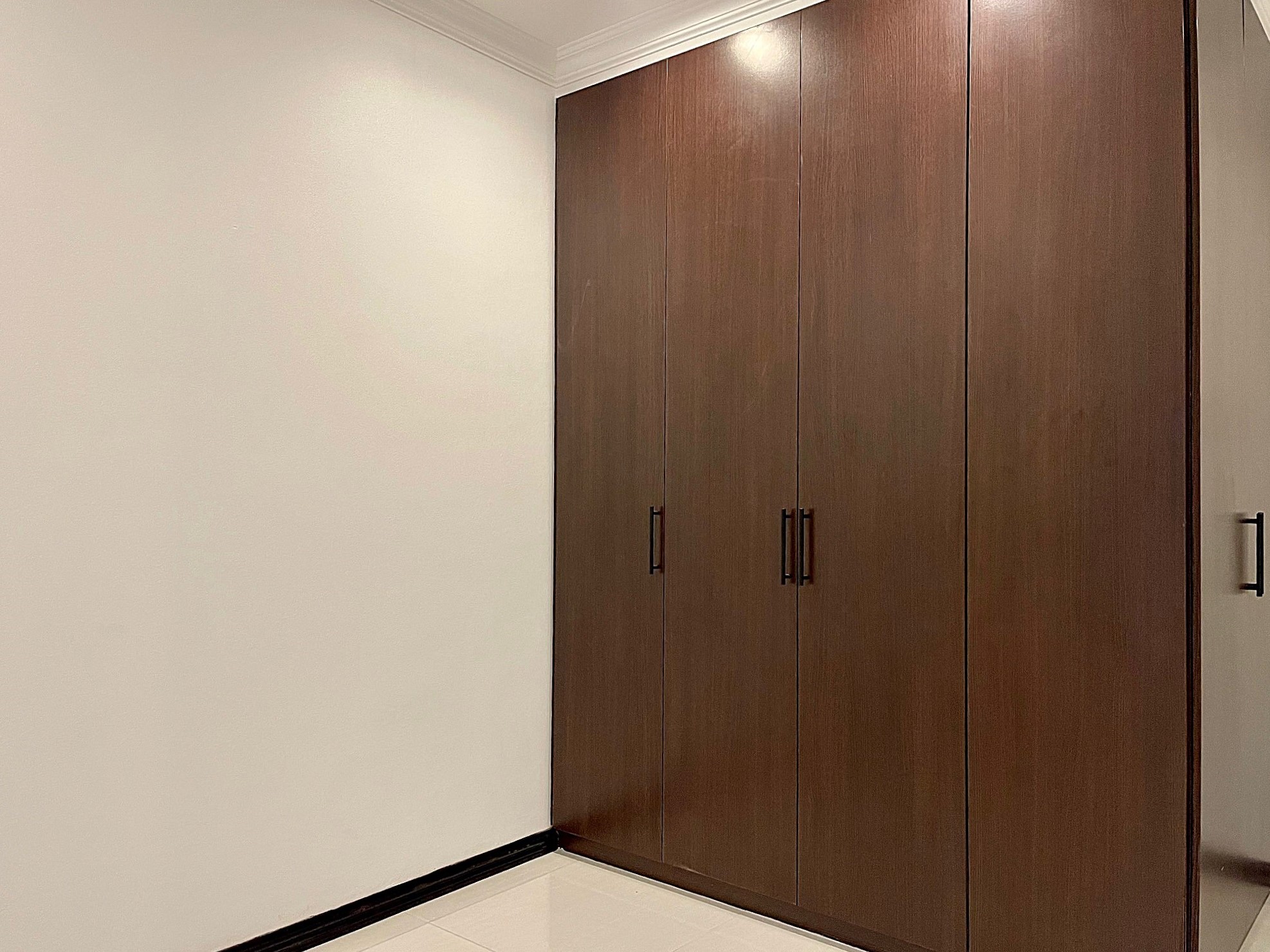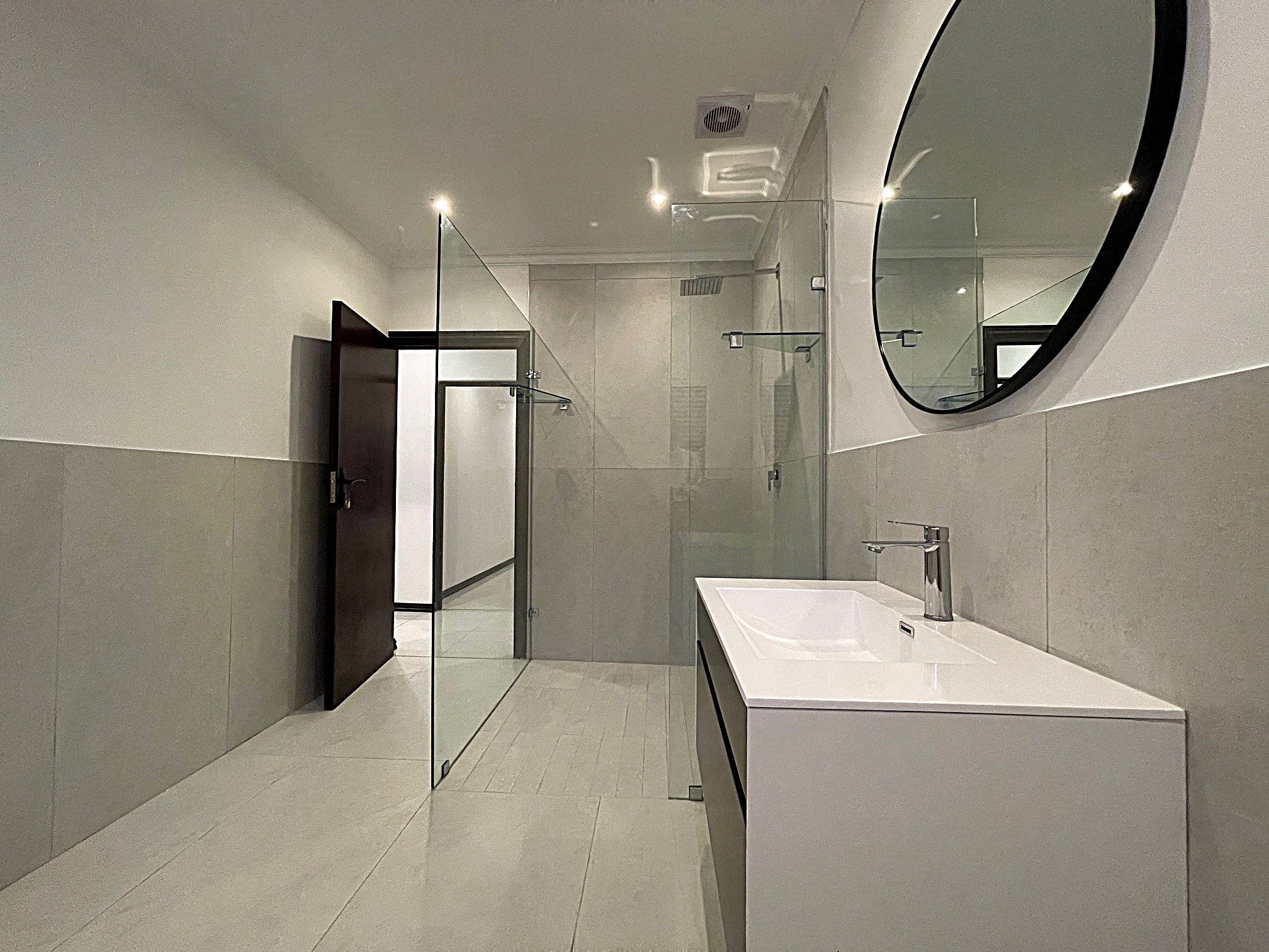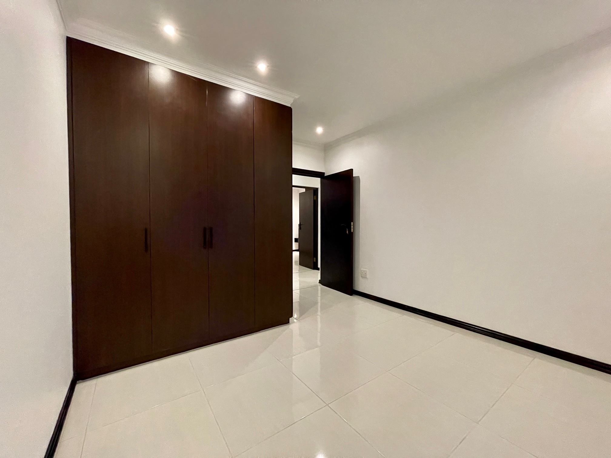 The open-plan living spaces are light-filled and inviting, with a seamless flow between the lounge, dining, and designer kitchen. High-quality finishes and a soothing neutral palette create a sense of calm sophistication, while large glass doors open to a covered patio overlooking the private garden, built in braai and sparkling pool — the ideal setting for elegant entertaining alfresco dinning and tranquil outdoor living.