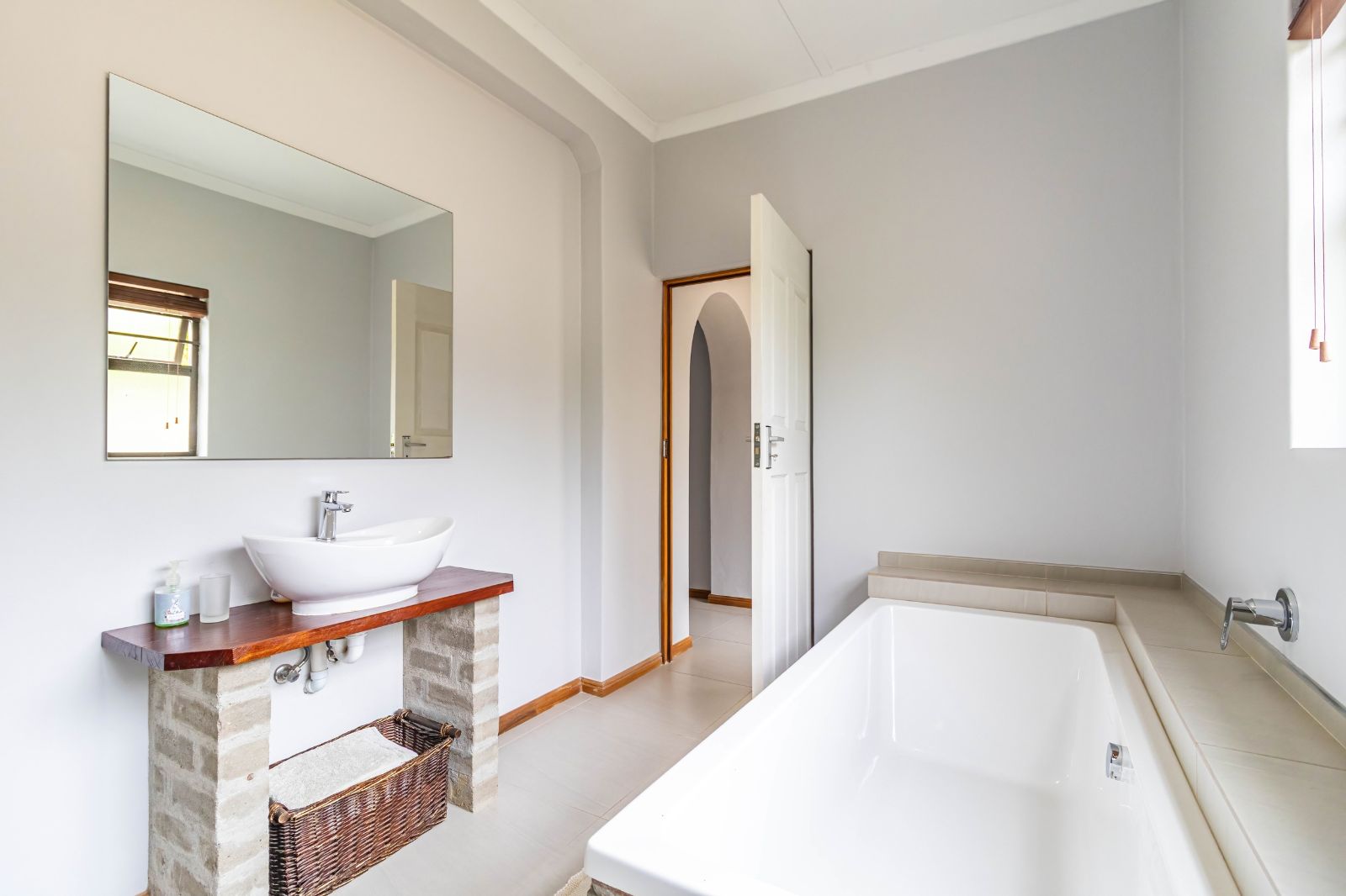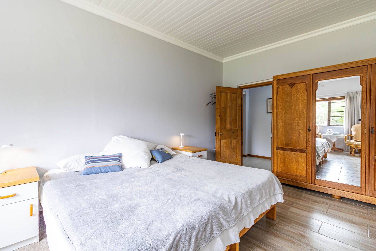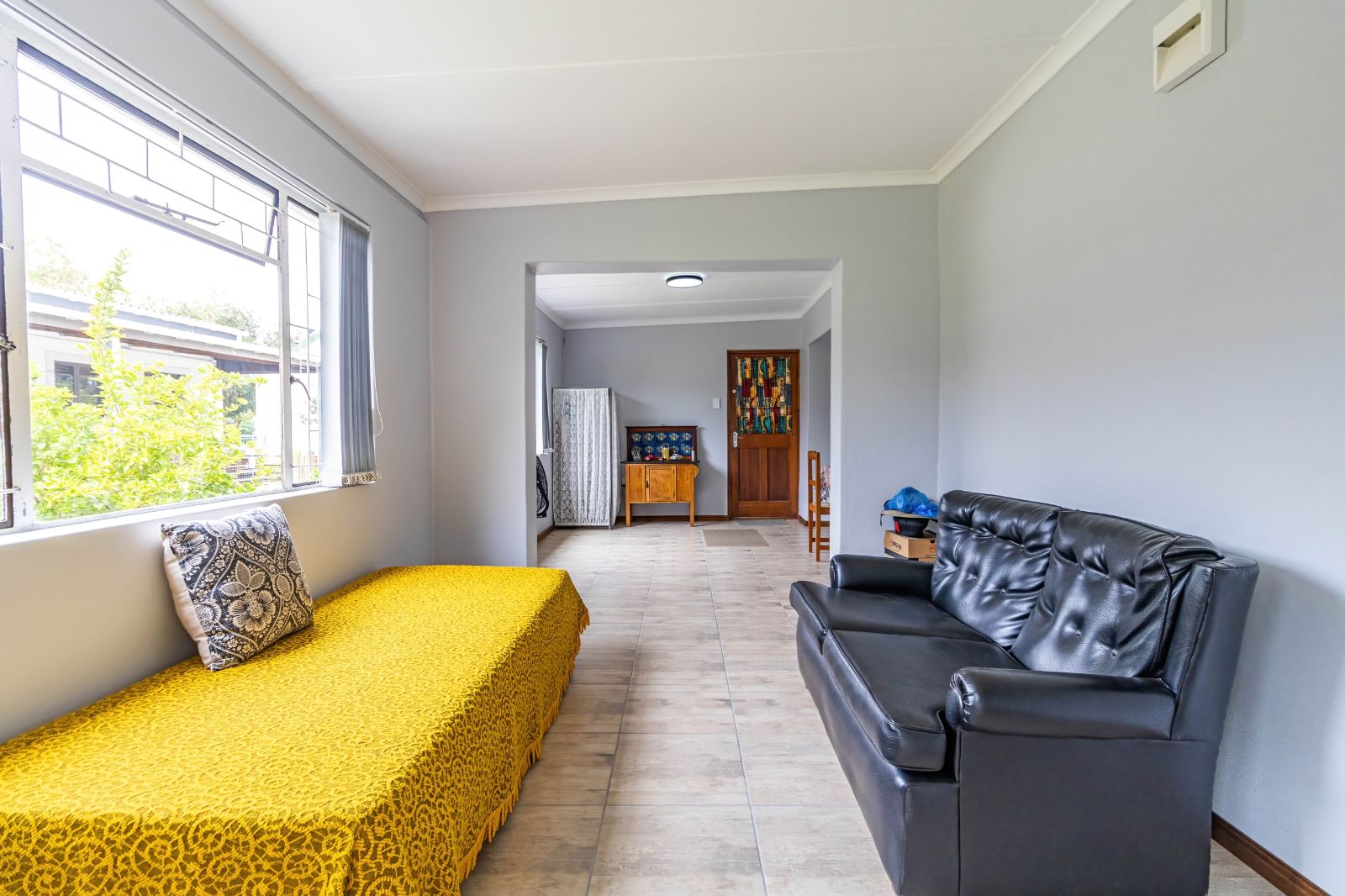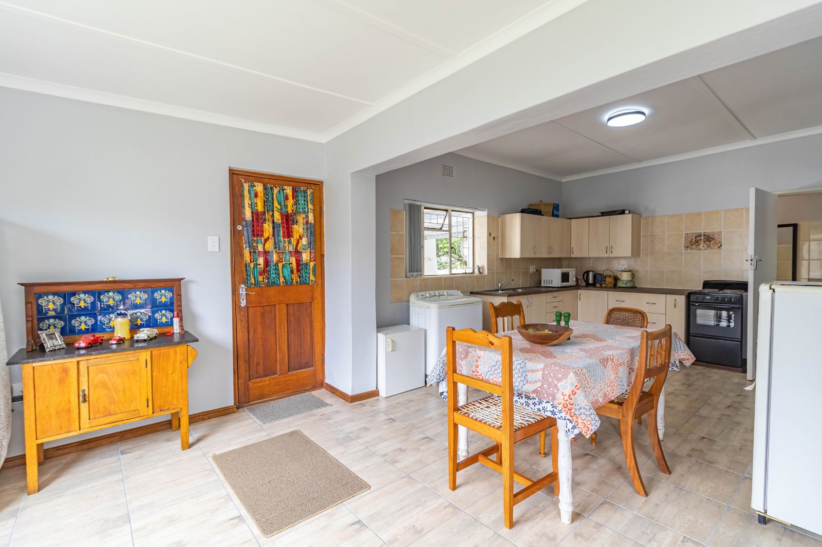 The lounge opens seamlessly onto a spectacular 76 m2 L-shaped patio (stoep) — a standout feature of the home. This expansive outdoor area is perfect for relaxed meals, morning coffee, or evening sundowners while taking in the panoramic views of the Olifants Mountains. It’s a space that truly captures the essence of Porterville living.