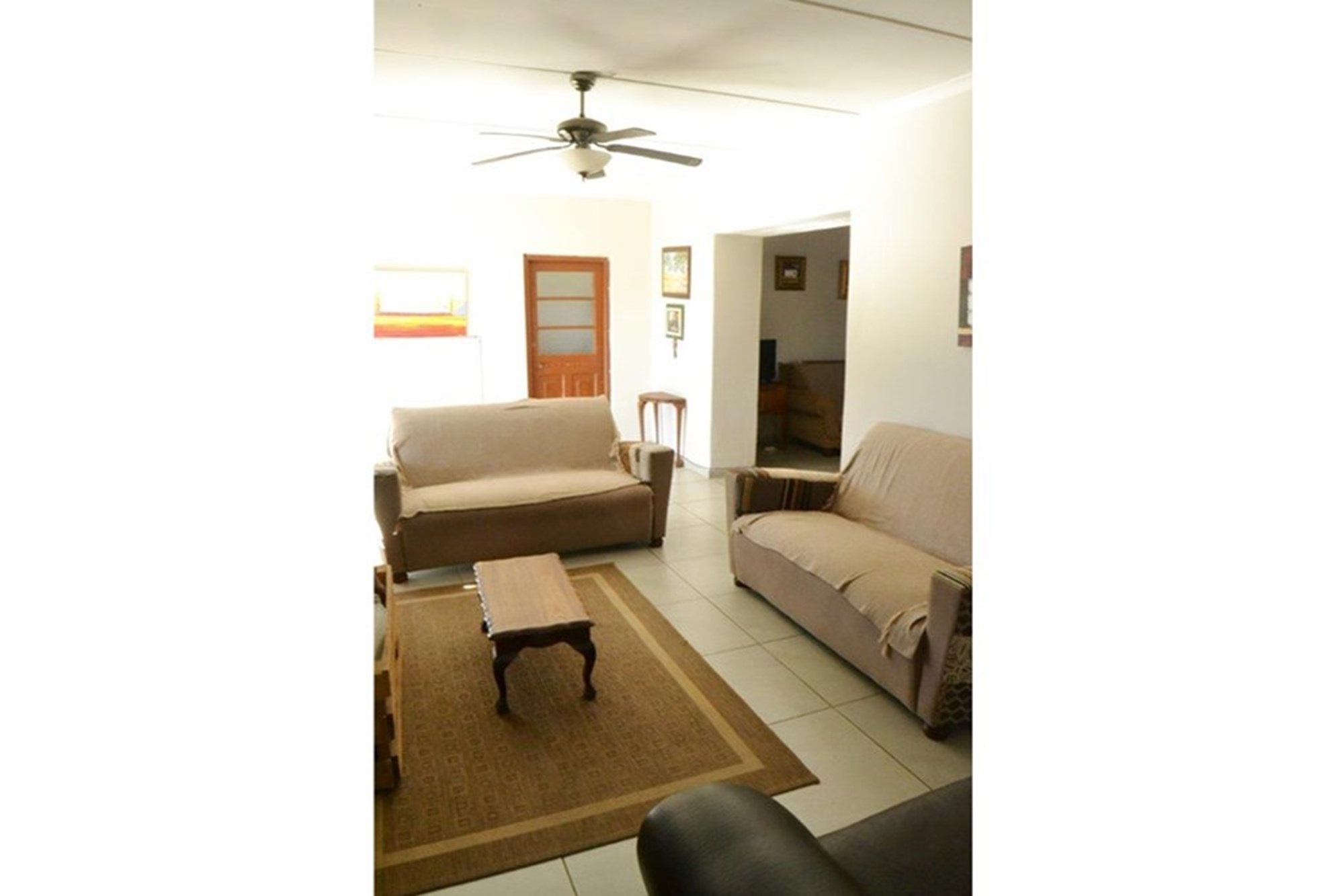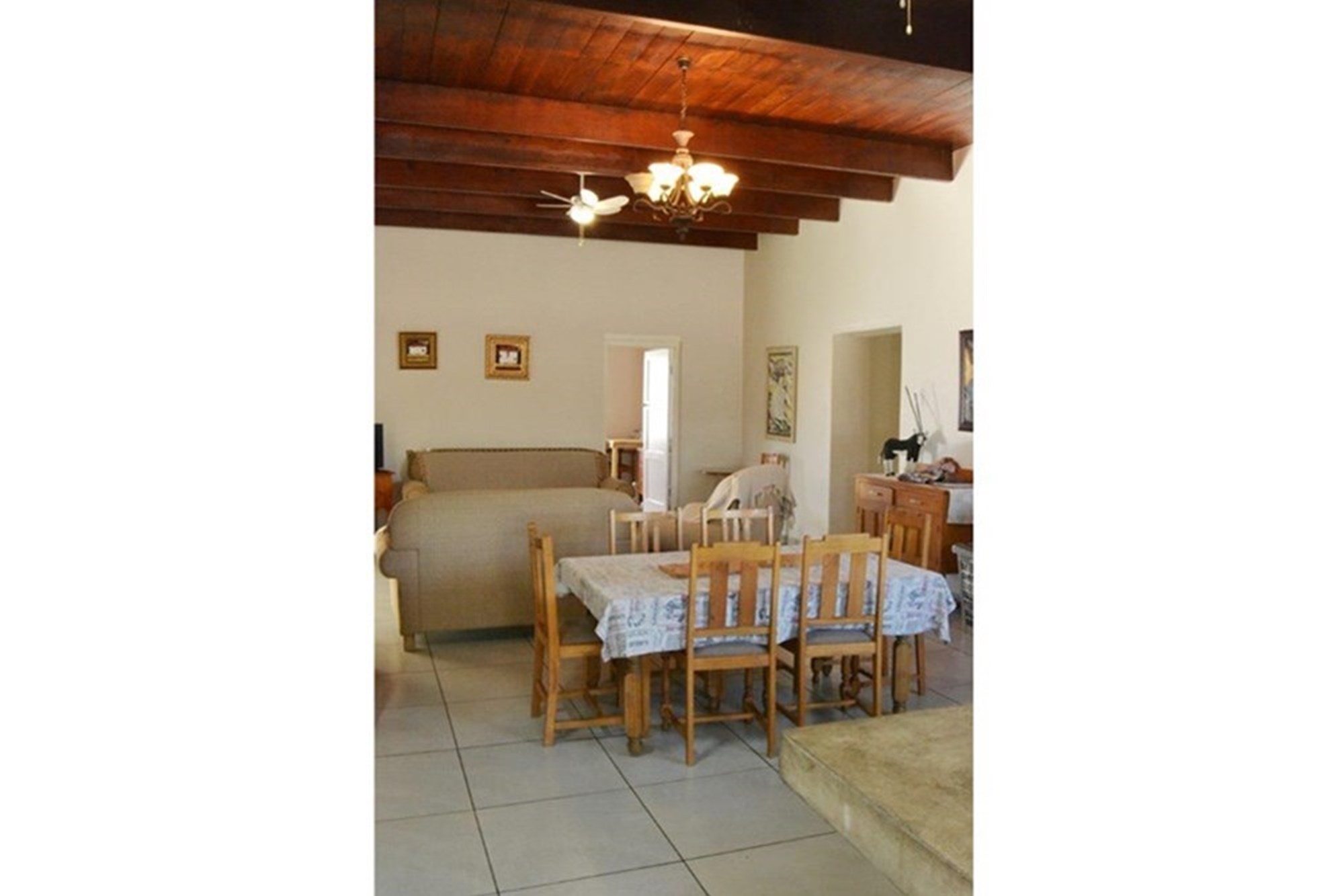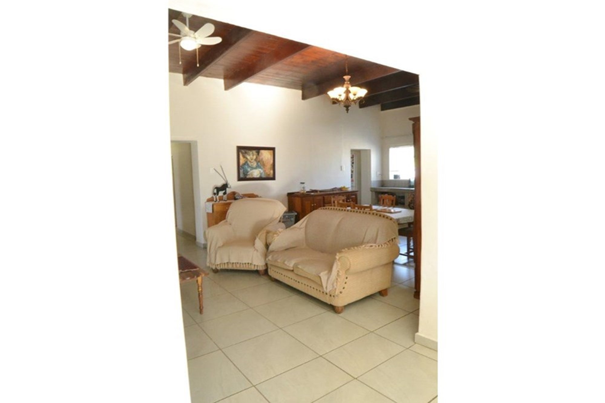 With 3 large bedrooms , 2 bathrooms a big living area and a under roof braai area with built-in braai with a single garage , a total of 240 sqm .