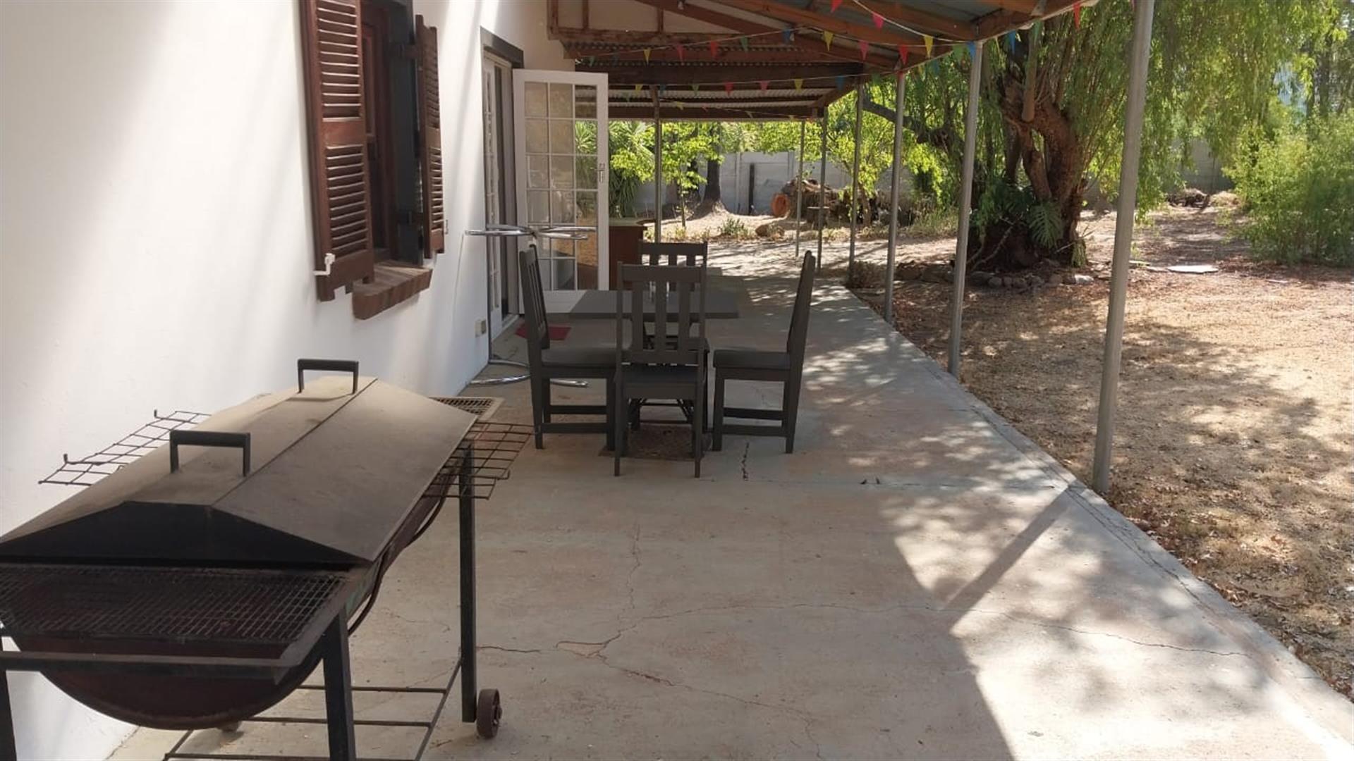 This property is situated in Porterville and it is a huge house with 5 bedrooms and spacious living areas that include a family room with built-in braai , a dining area and a separate lounge room with a Huge 3000 sqm erf .
