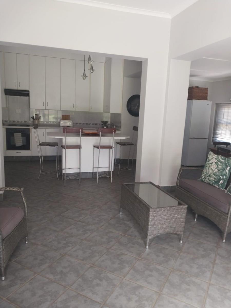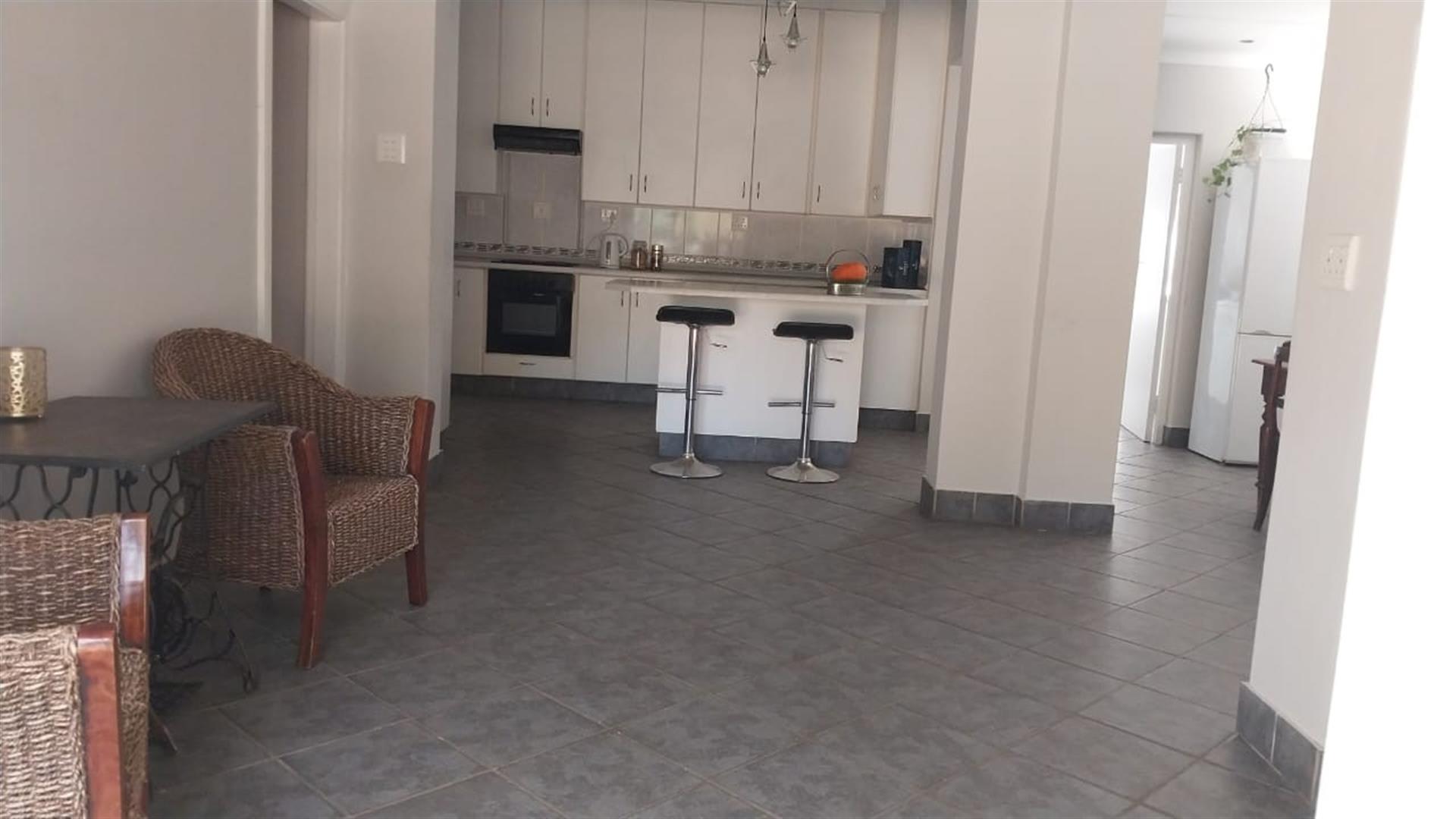 Entering the property you find a underroof large area , perfect for entertainment and entering the house there is a big area with a built-in braai , then there is a large dining room and a fully fitted kitchen .