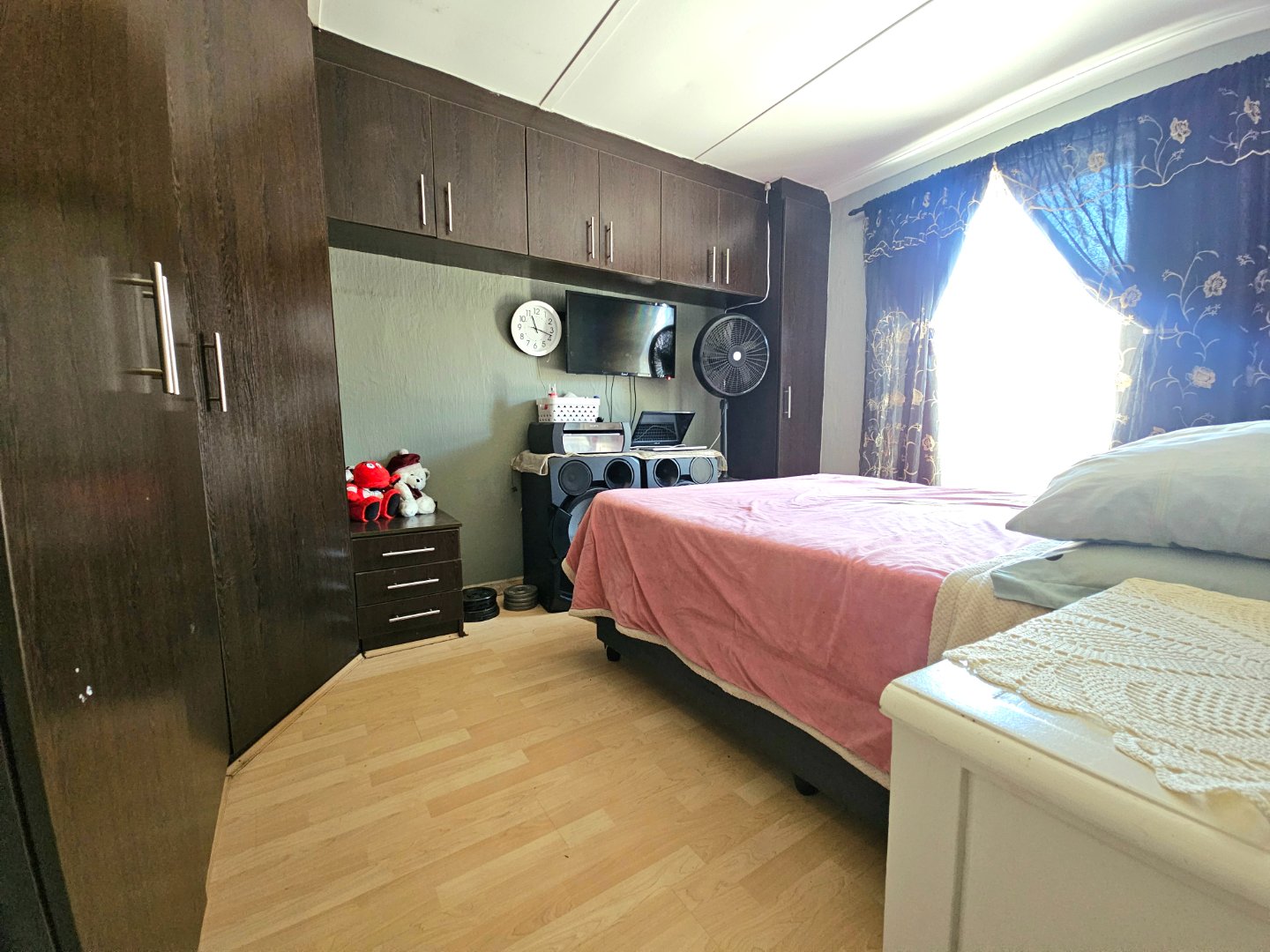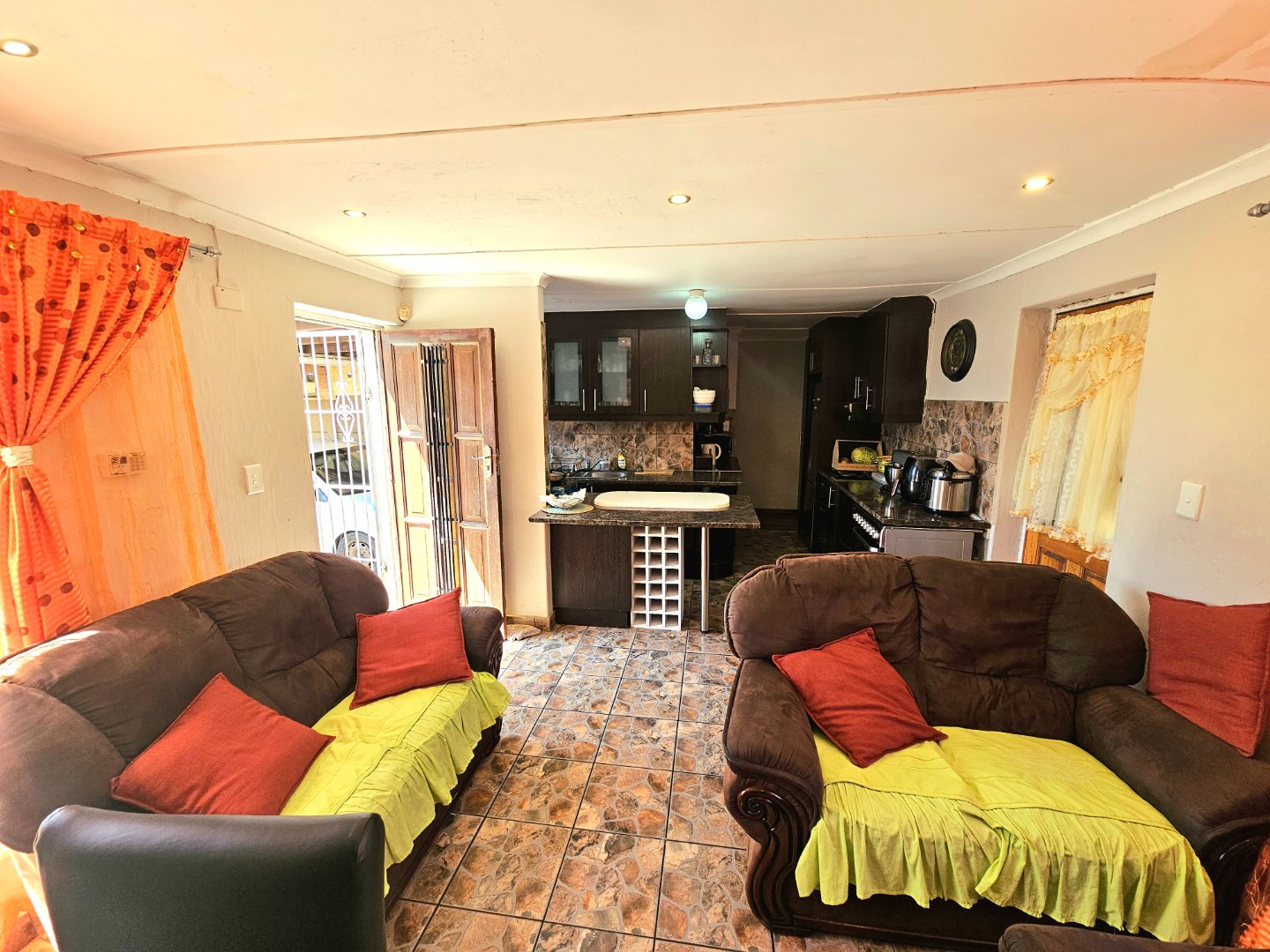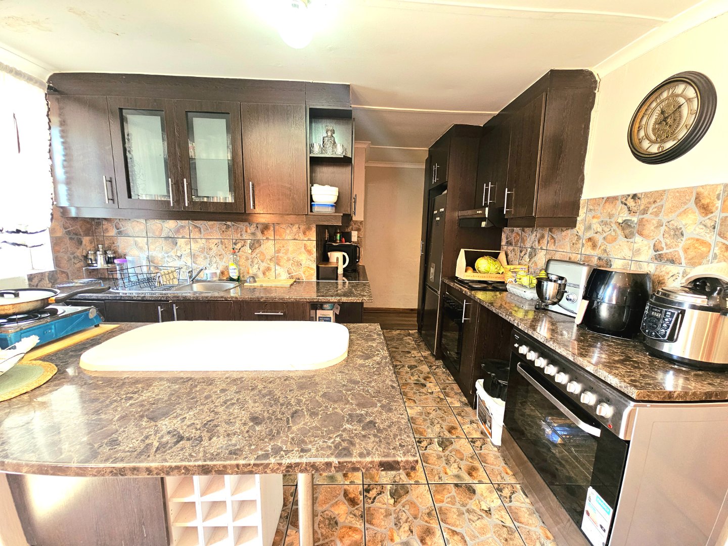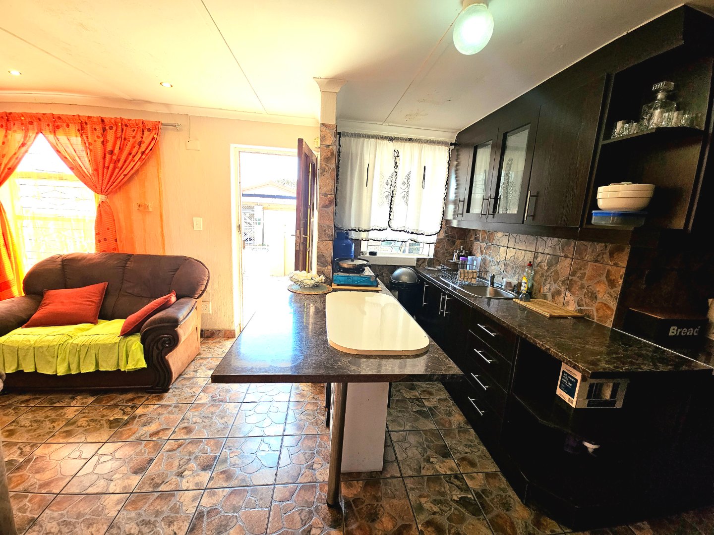 This lovely three bedroom home has presented itself to the market in Portlands. The property is enclosed behind a wall and can accommodate upto three cars. This house is situated on a 207 square metre plot. It boasts three sizeable bedrooms. Two of the bedrooms are fitted with built in cupboards. The family bathroom boasts a bath, overhead shower, handbasin and toilet. Step into a tiled open plan lounge and fully fitted kitchen. The kitchen has an electric hob and oven. The spacious yard is also enclosed with high walls and barb wire.