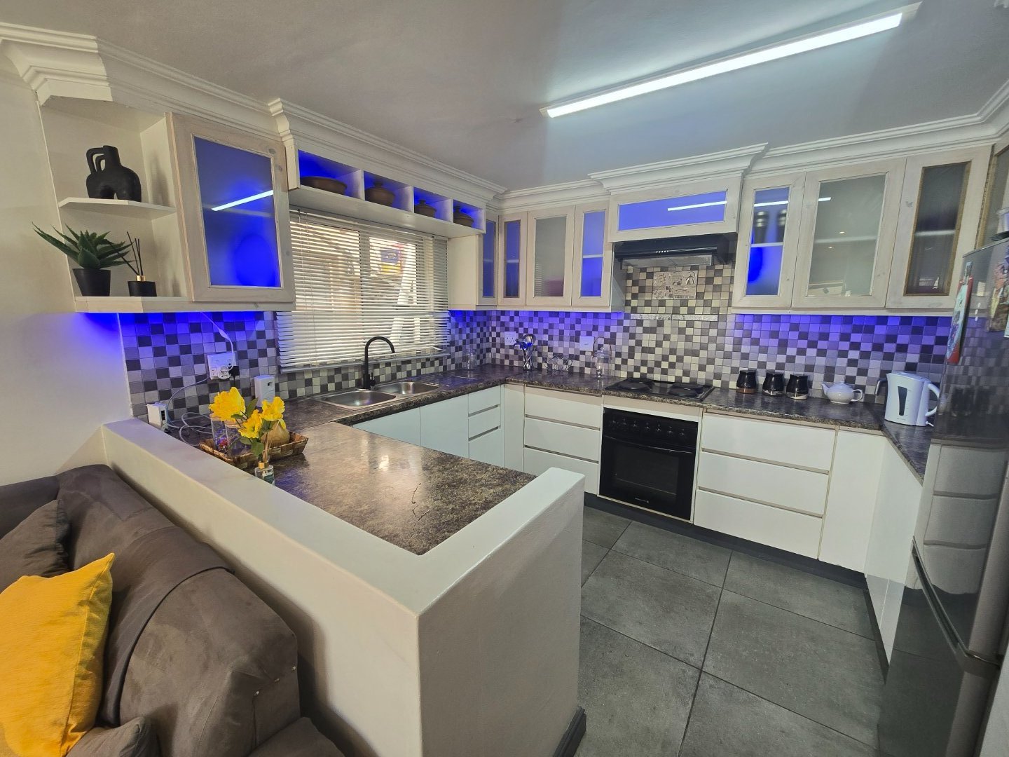 Stunning modern fully fitted kitchen with LED lighting