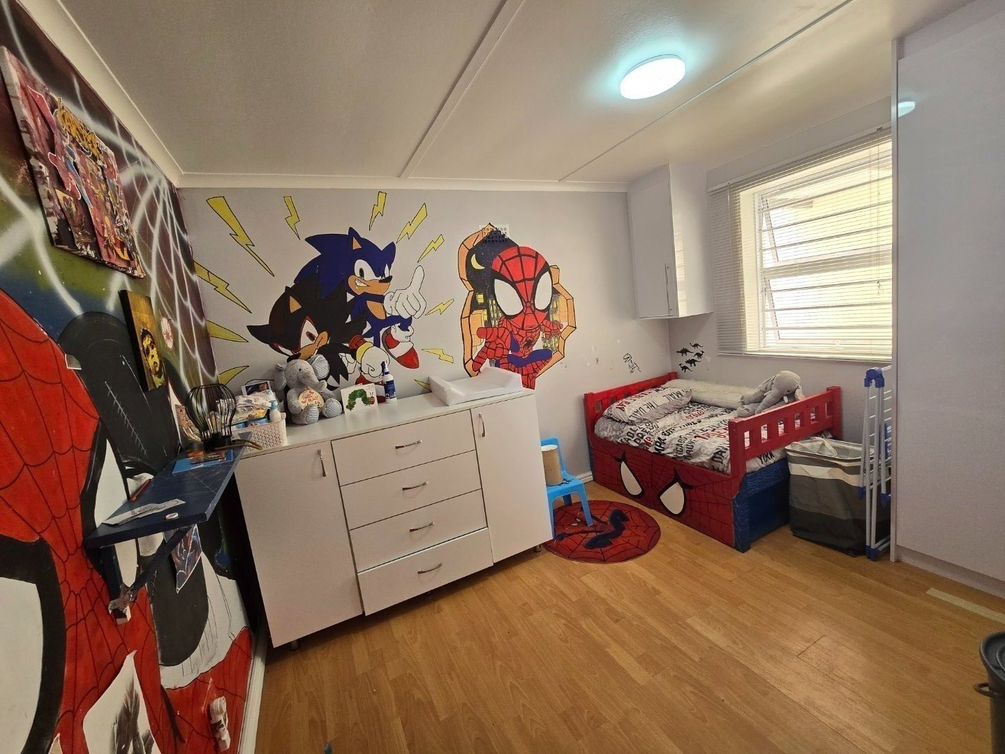 2 stylish bedrooms with built-in cupboards and laminated flooring