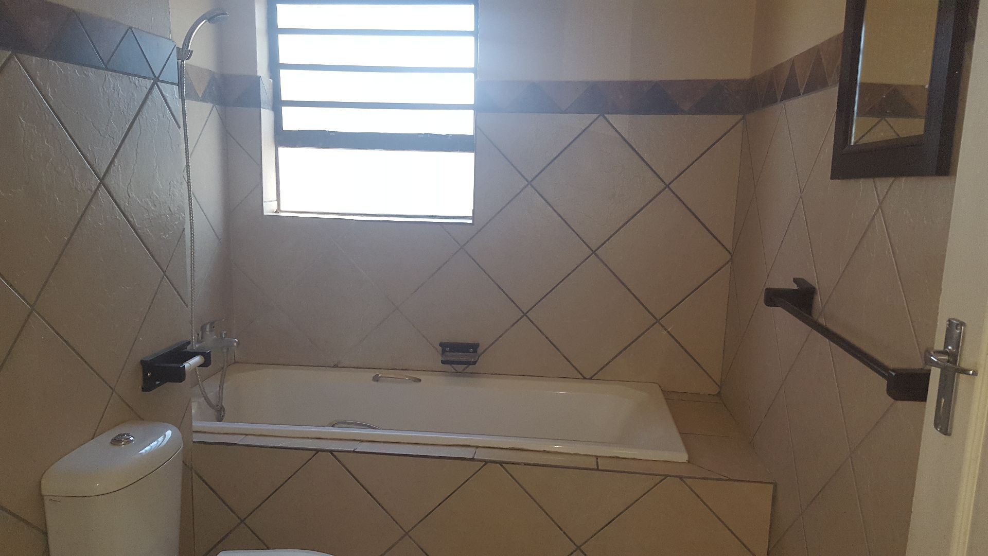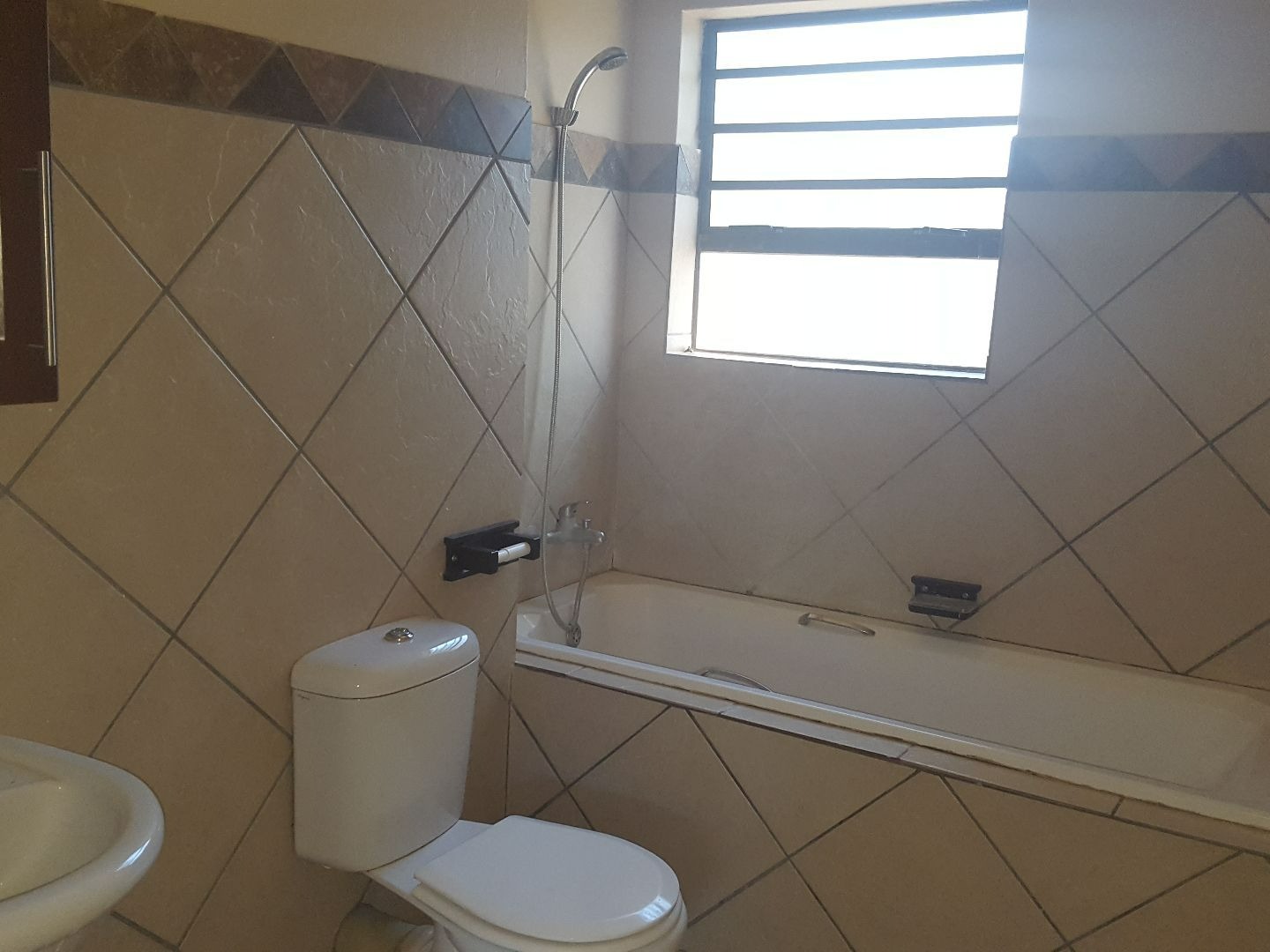 This modern two-bedroom apartment is in a secure complex. The kitchen is an open plan with the lounge. It has a single bathroom (bath, toilet and basin) open plan living area with a balcony and secure parking. This complex is in a good security area that includes an electric entrance gate, electric fencing, security doors and burglar bars. It has lots of open areas for outdoor living and is very well kept. It is situated in a quiet peacefully area.