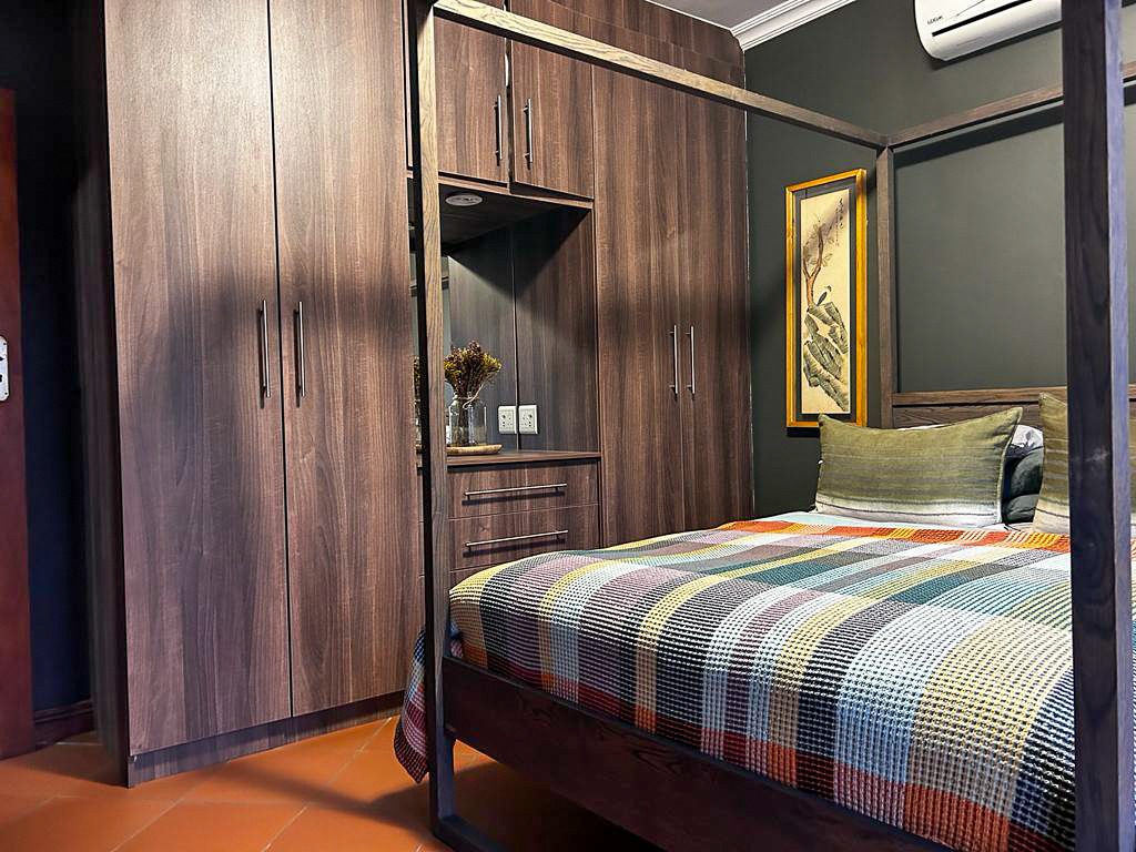 The main bedroom is a luxurious retreat, offering a modern en suite bathroom and a private stoep and balcony where you can relax and soak in the breathtaking views of the surrounding nature.