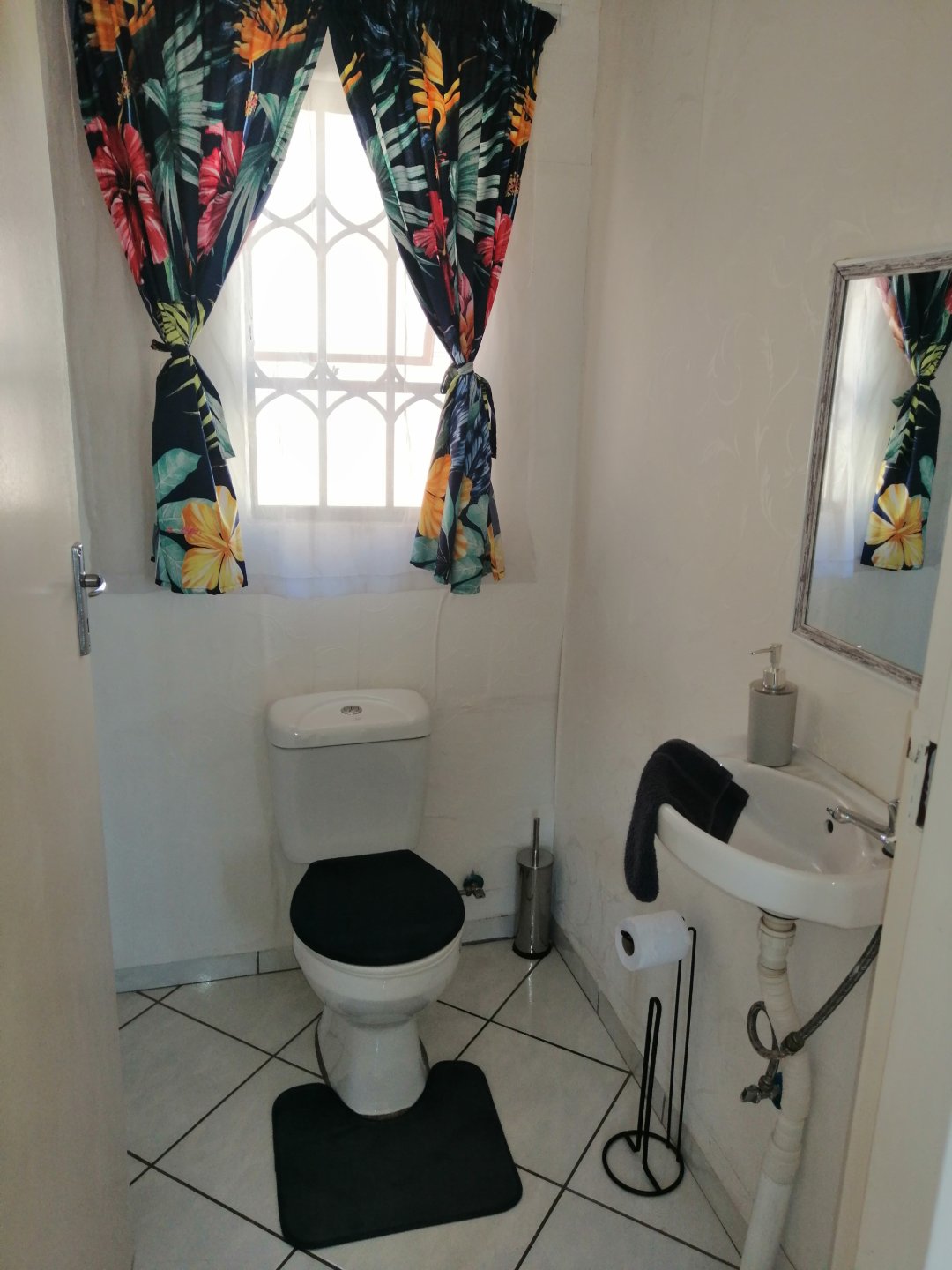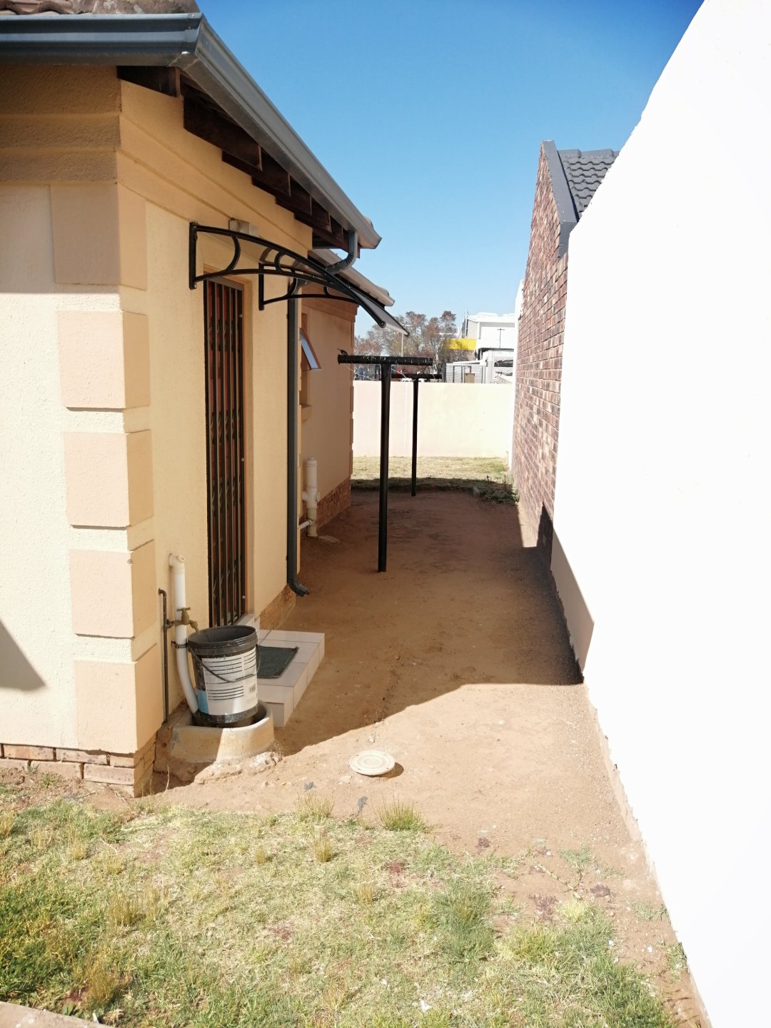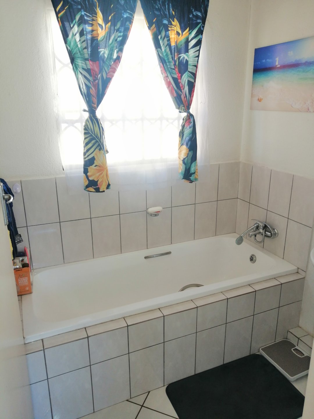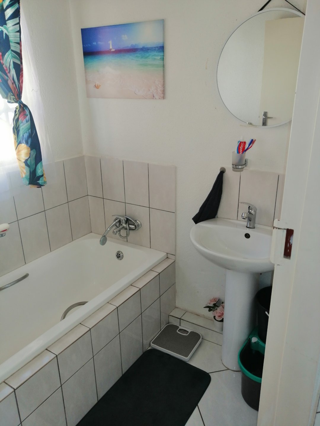 Neat 3 Bedroom, one with Build-in Cupboard. 1.5 Bathroom. Open Plan Kitchen with build-in Cupboards, Hob + Undercounter Oven. Open Plan Lounge. Garden with Cement Table & Chairs. Sliding Gate.