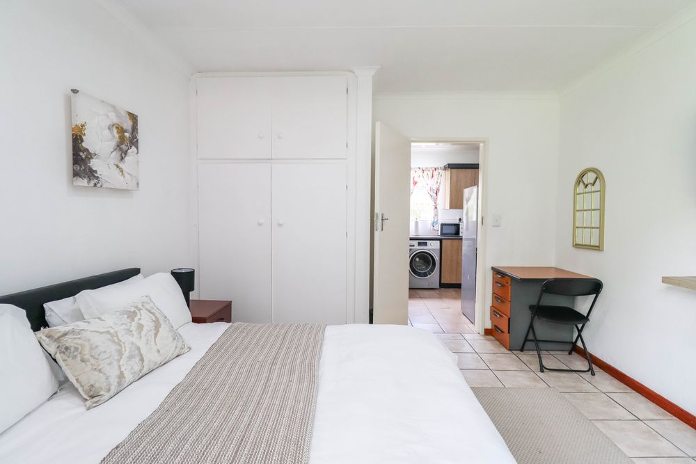Set in a secure garden with private entrance, this cottage is ideal for short or long terms stays. Fully furnished and equipped it is perfect for anybody travelling into Johannesburg for business on a regular basis or someone on contract needing a comfortable and supportive place to stay. It is close to EDUVOS university in Midrand and woud suit a student with own transport. It is ideal for a single professional.