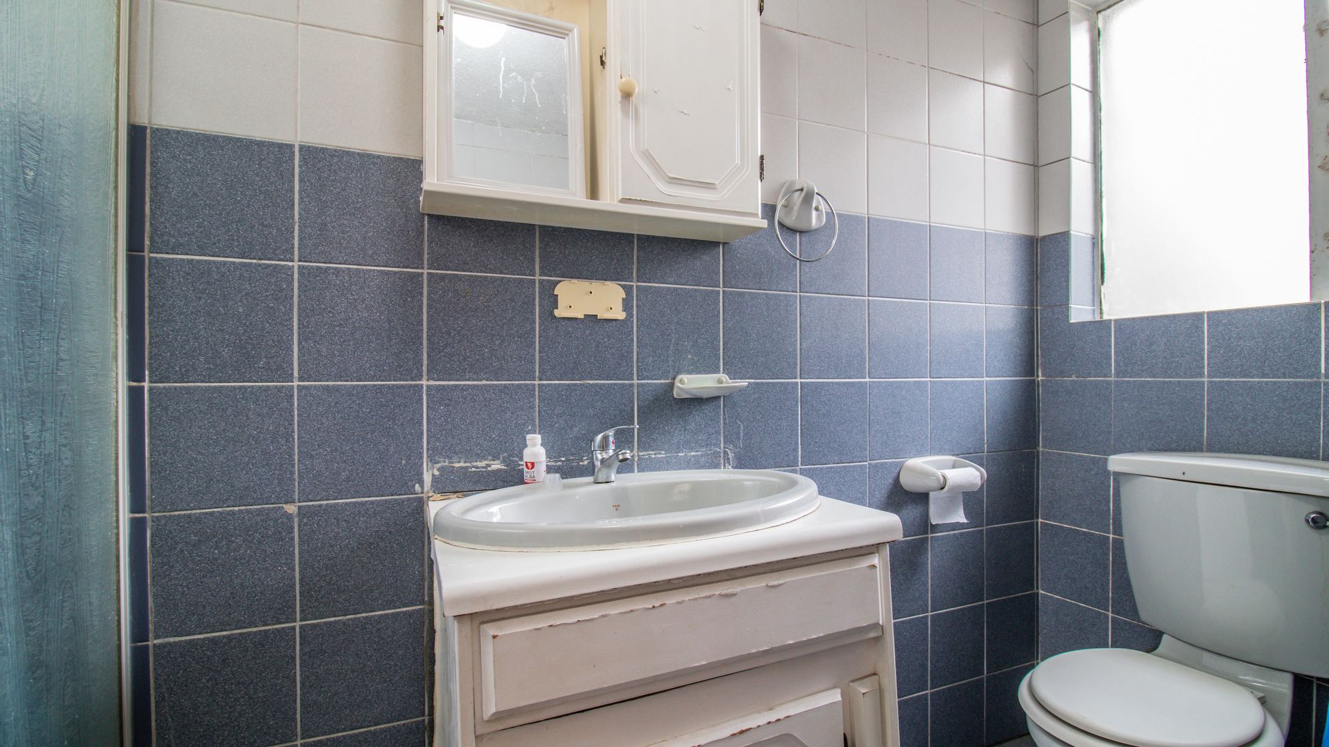 The kitchen is functional, though it does require some attention, offering a fantastic opportunity to customize it to your taste.