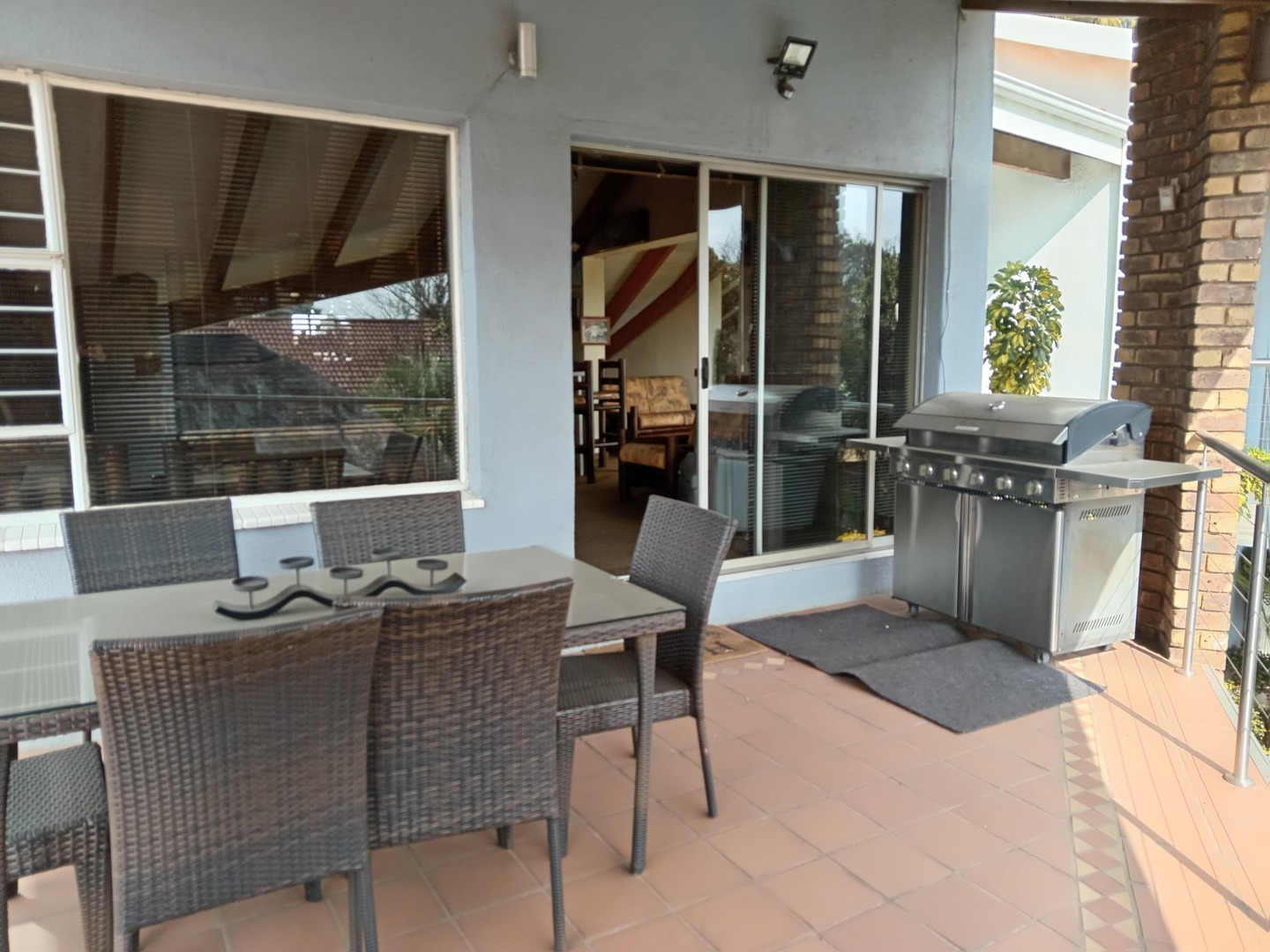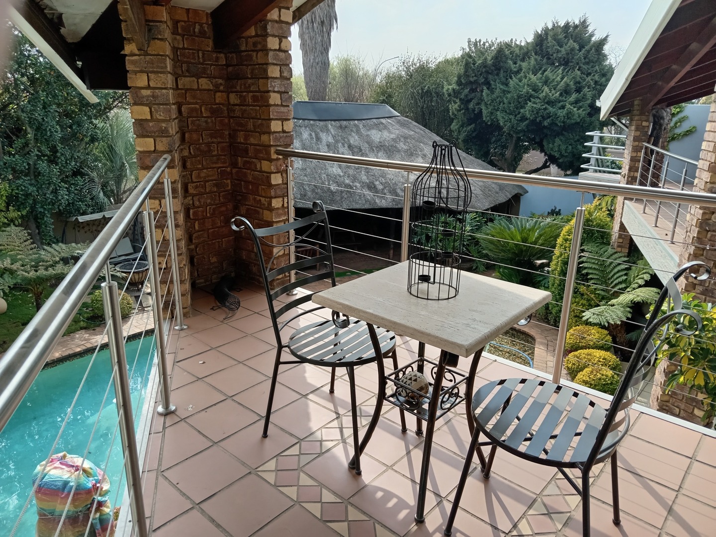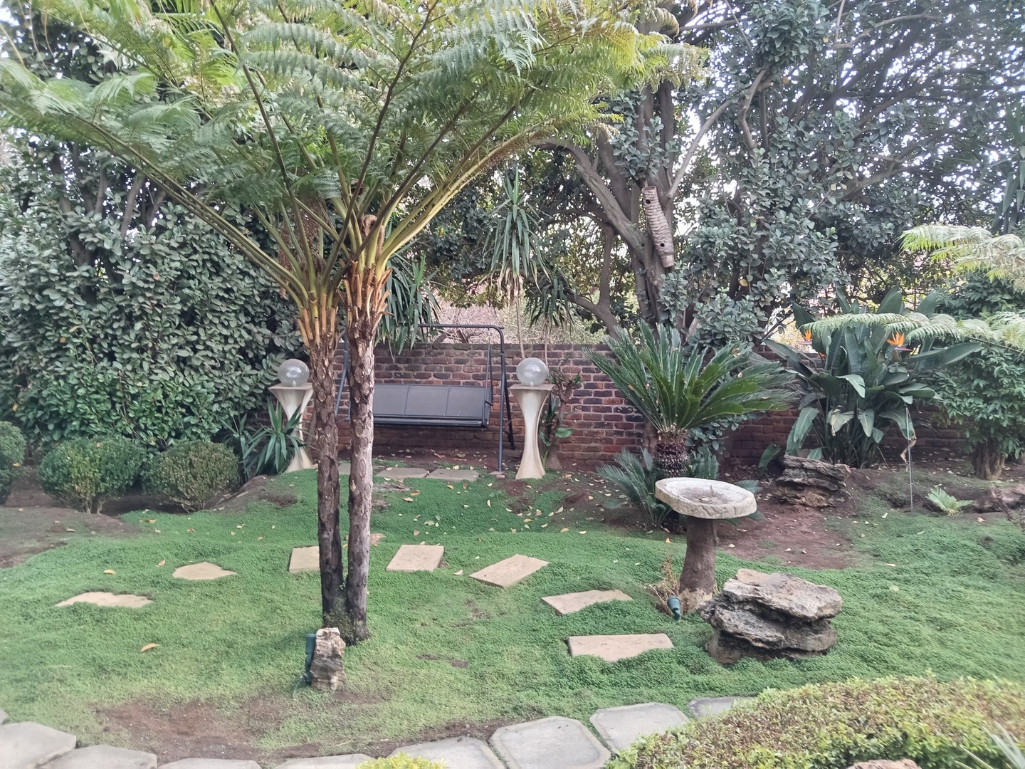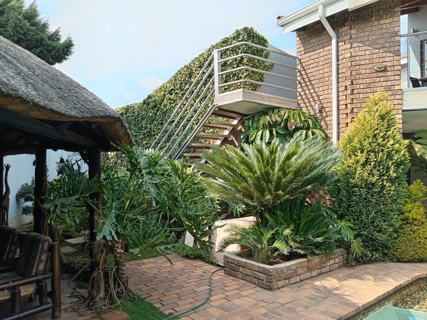Nestled behind a charming facade of warm face brick and tasteful paintwork, this exquisite home exudes an air of timeless elegance. Stepping through the front door, you're greeted by a spacious living area adorned with plush furnishings and adorned with tasteful artworks, creating an inviting atmoshere for both relaxation and entertainment. The kitchen is equipped with state-of-the-art appliances and sleek countertops, perfect for culinary enthusiasts and casual family meals. Outside, the landscape unfolds into a sanctuary of peace and beauty. A meticulously landscaped garden, resplendent with vibrant blooms and shaded by mature trees, wraps around a sparkling blue pool.