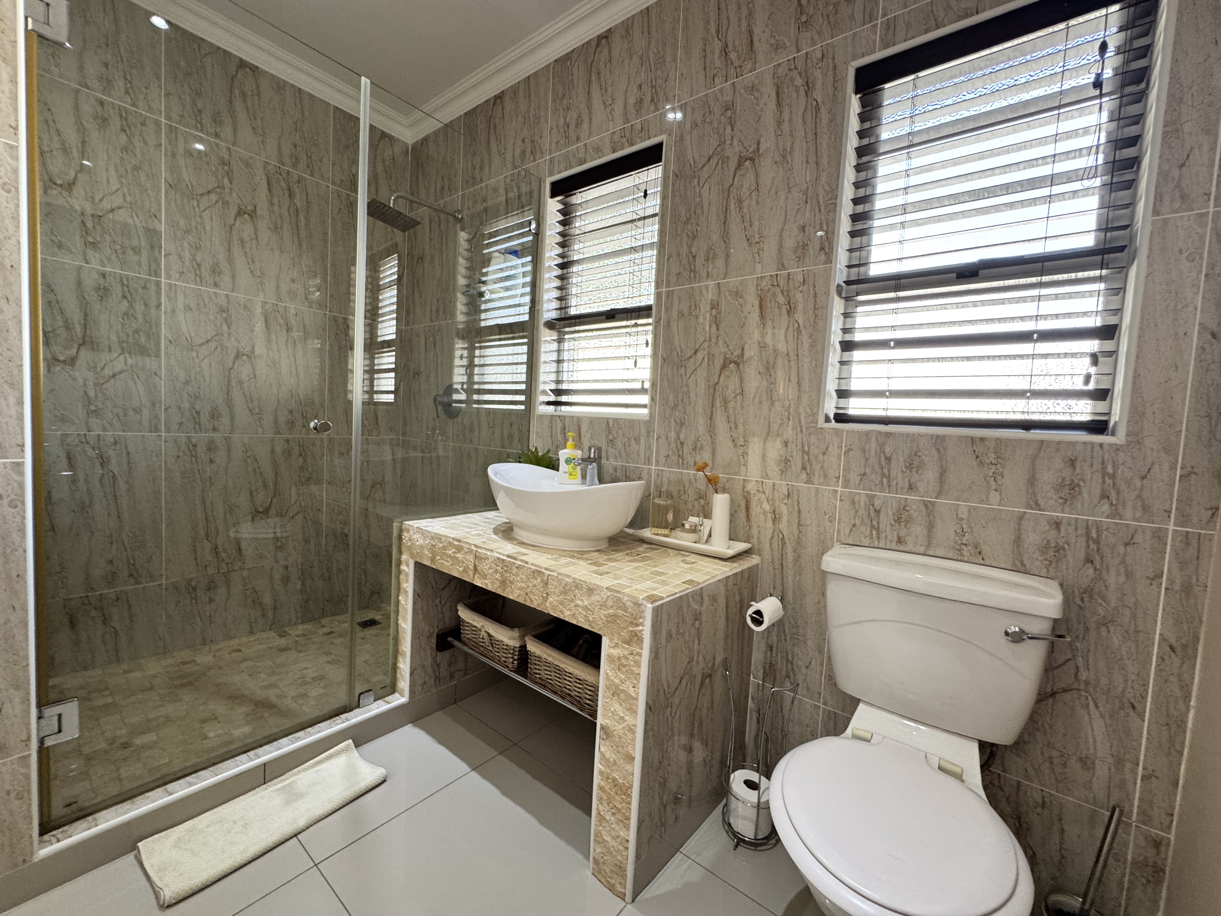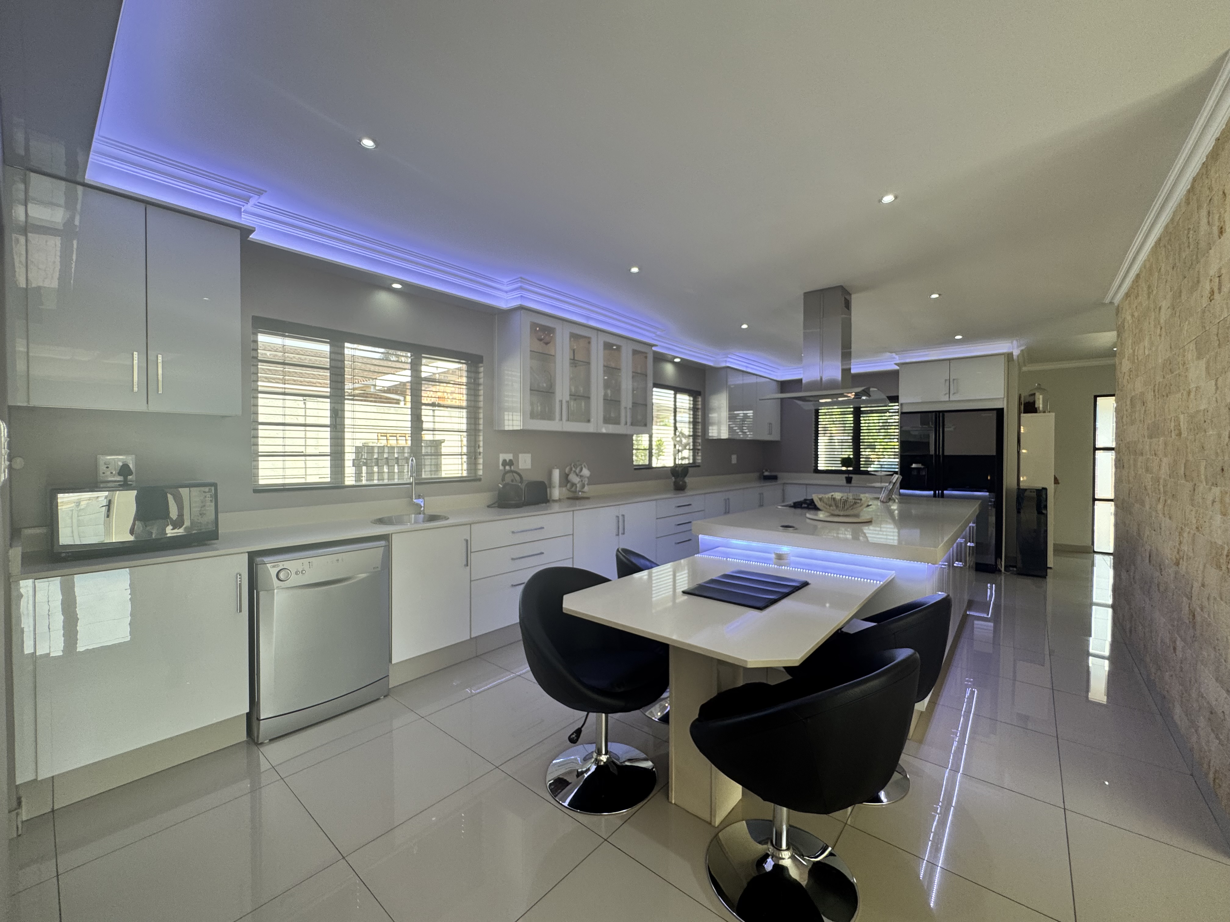 This incredible location on Wager Avenue offers you four-car garages with additional parking for five other cars. Enjoy both formal and informal lounges, plus fiber internet access! Dining room featuring a gourmet, modern kitchen modern with Caesar stone tops, gas over counter stove & under counter oven, soft close cupboards and kitted for dishwasher, washing machine and tumble dryer, The scullery area is enhanced by stunning lighting. This home includes four bedrooms, two of which have ensuite bathrooms. Authentic stone cladding adorns the lounge and dining room, complemented by an informal TV lounge with views of the pool. The main bedroom offers direct access to the pool area and features a walk-in closet. Just 50 meters from the Izinga entrance, the property includes ablution facilities for domestic staff, a Lapa with bar amenities, and a gas fireplace in the formal lounge.