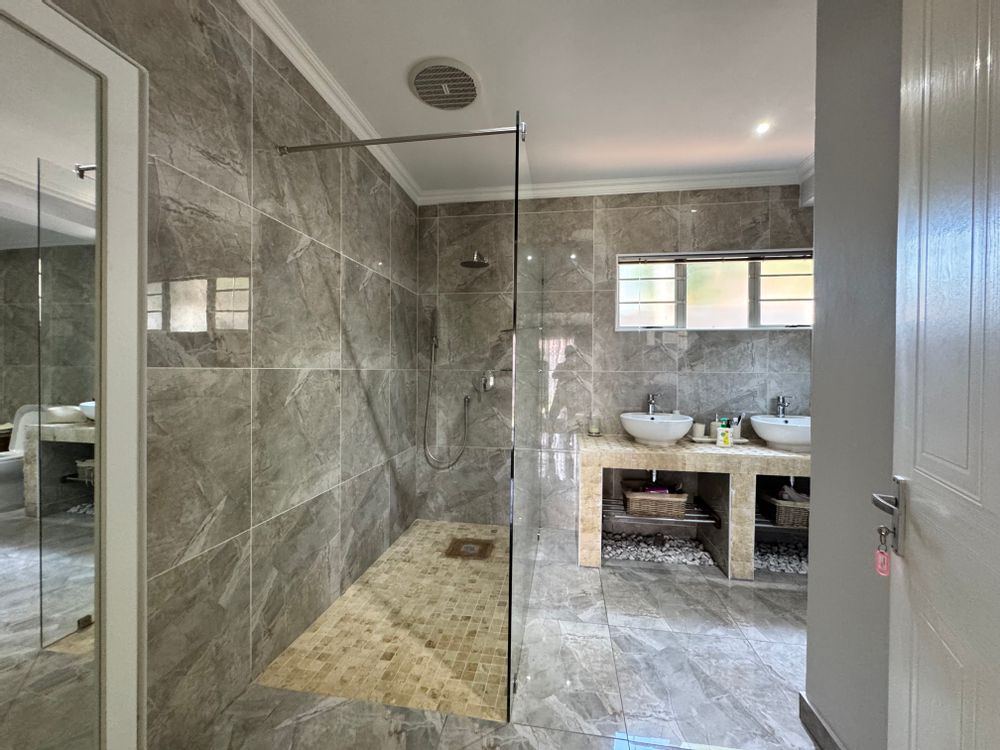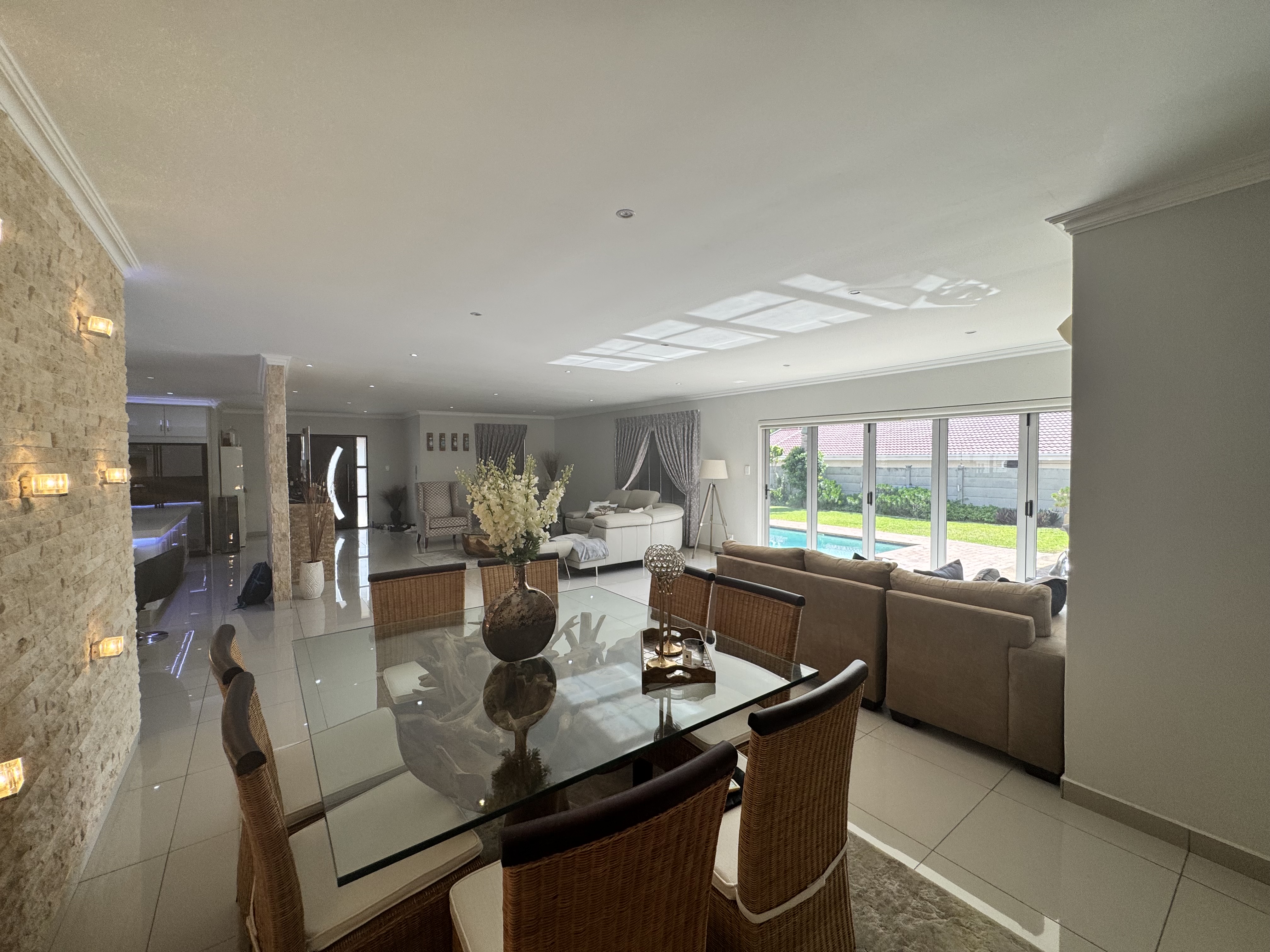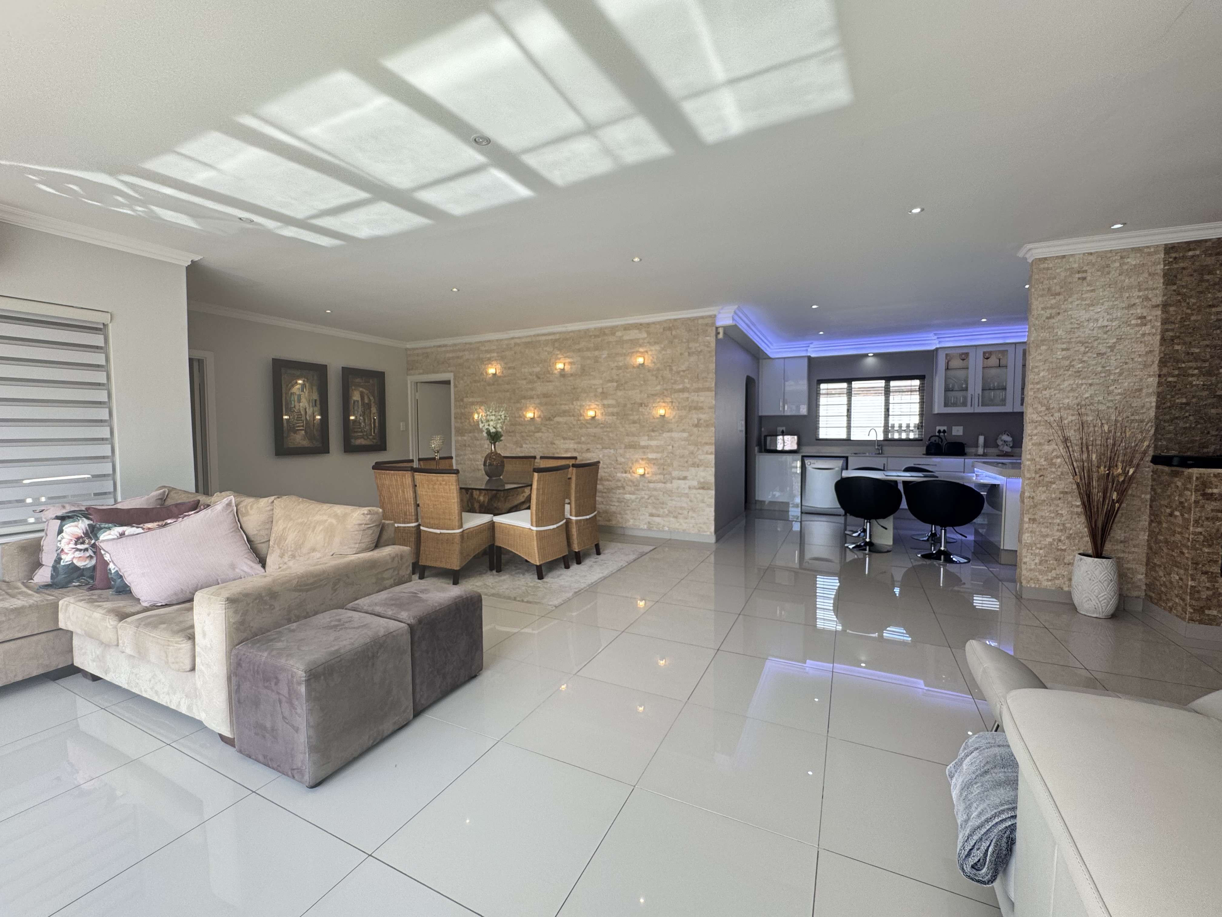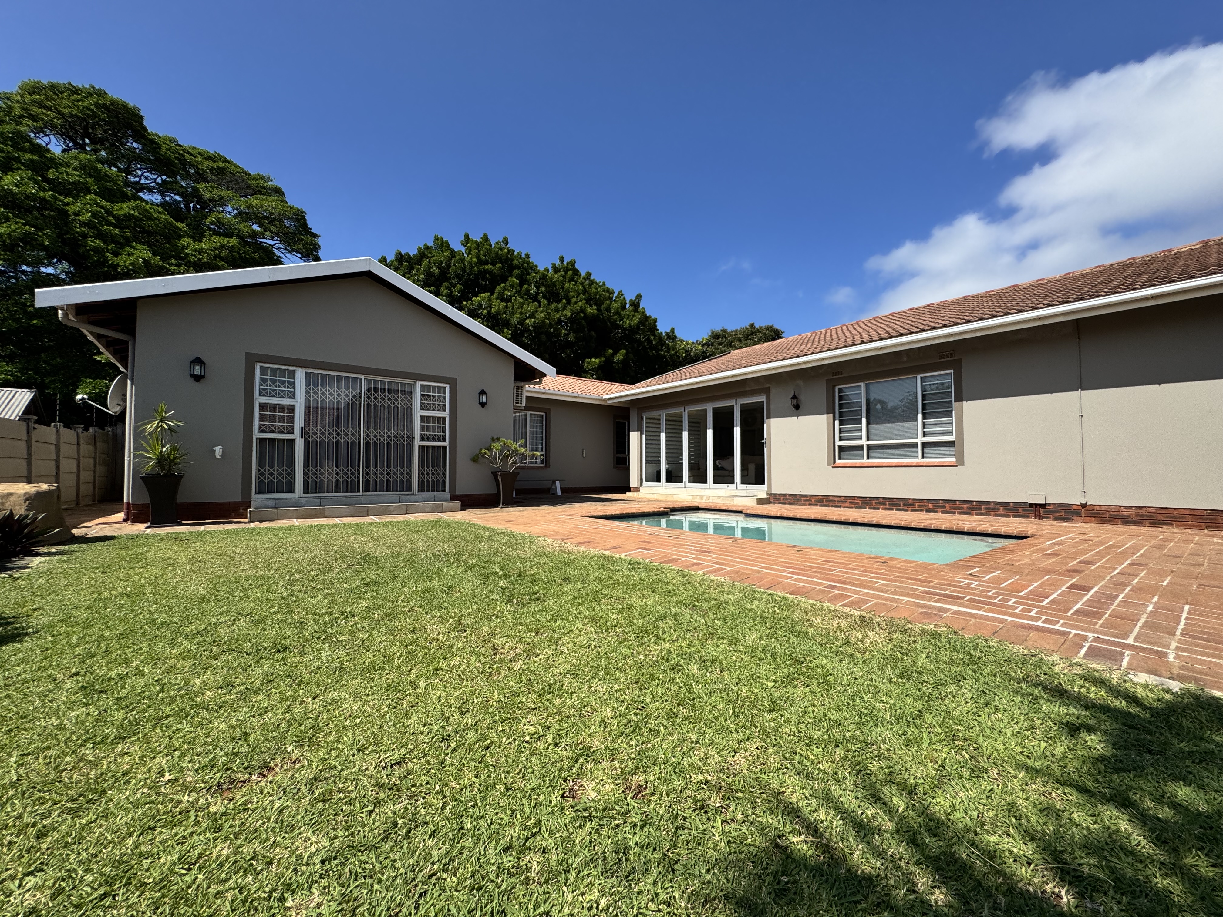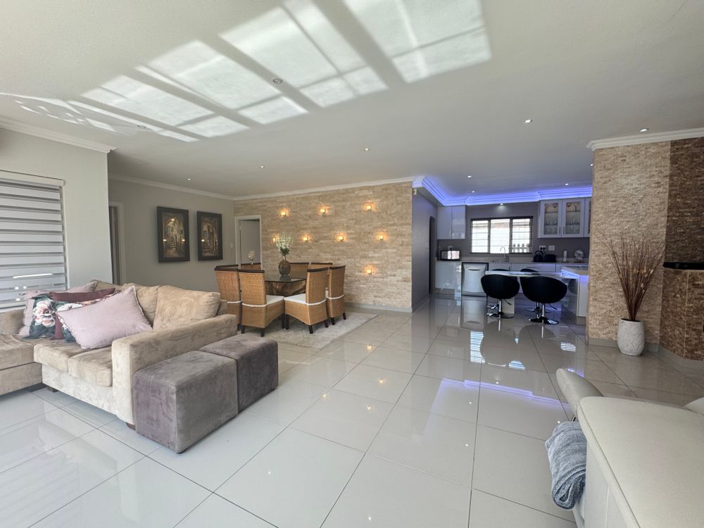 This incredible location on Wager Avenue offers you four-car garages with additional parking for five other cars. Enjoy both formal and informal lounges, plus fiber internet access! Dining room featuring a gourmet, modern kitchen modern with Caesar stone tops, gas over counter stove & under counter oven, soft close cupboards and kitted for dishwasher, washing machine and tumble dryer, The scullery area is enhanced by stunning lighting. This home includes four bedrooms, two of which have ensuite bathrooms. Authentic stone cladding adorns the lounge and dining room, complemented by an informal TV lounge with views of the pool. The main bedroom offers direct access to the pool area and features a walk-in closet. Just 50 meters from the Izinga entrance, the property includes ablution facilities for domestic staff, a Lapa with bar amenities, and a gas fireplace in the formal lounge.
